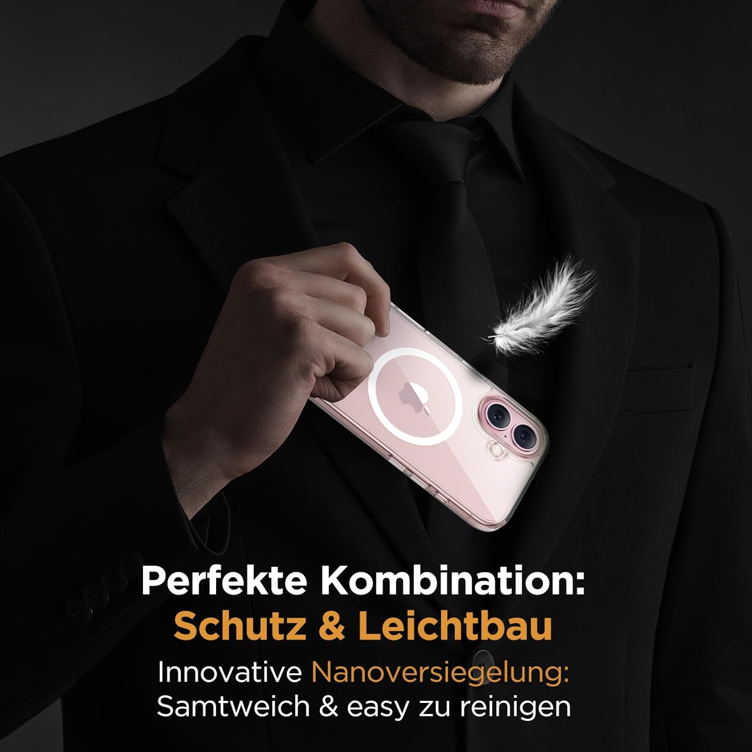 • Тънък дизайн и първокласно усещане: Този калъф за iPhone 17 съчетава тънкост и оптимална защита благодарение на удароустойчивата технология и ергономичния дизайн. Иновативното нанопокритие осигурява дълготрайна защита от надраскване и ефективно отблъсква пръстови отпечатъци – мекият предпазител осигурява копринено мек захват.