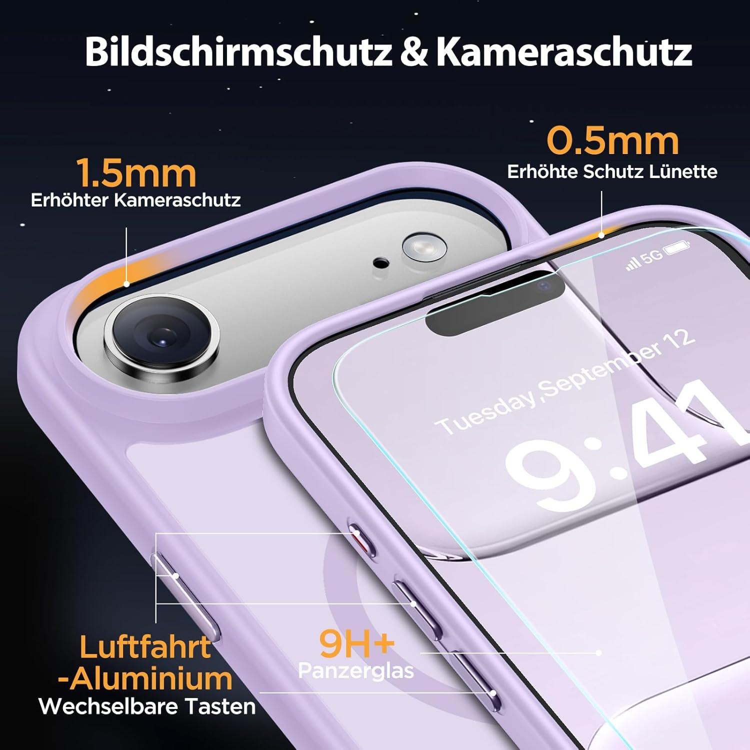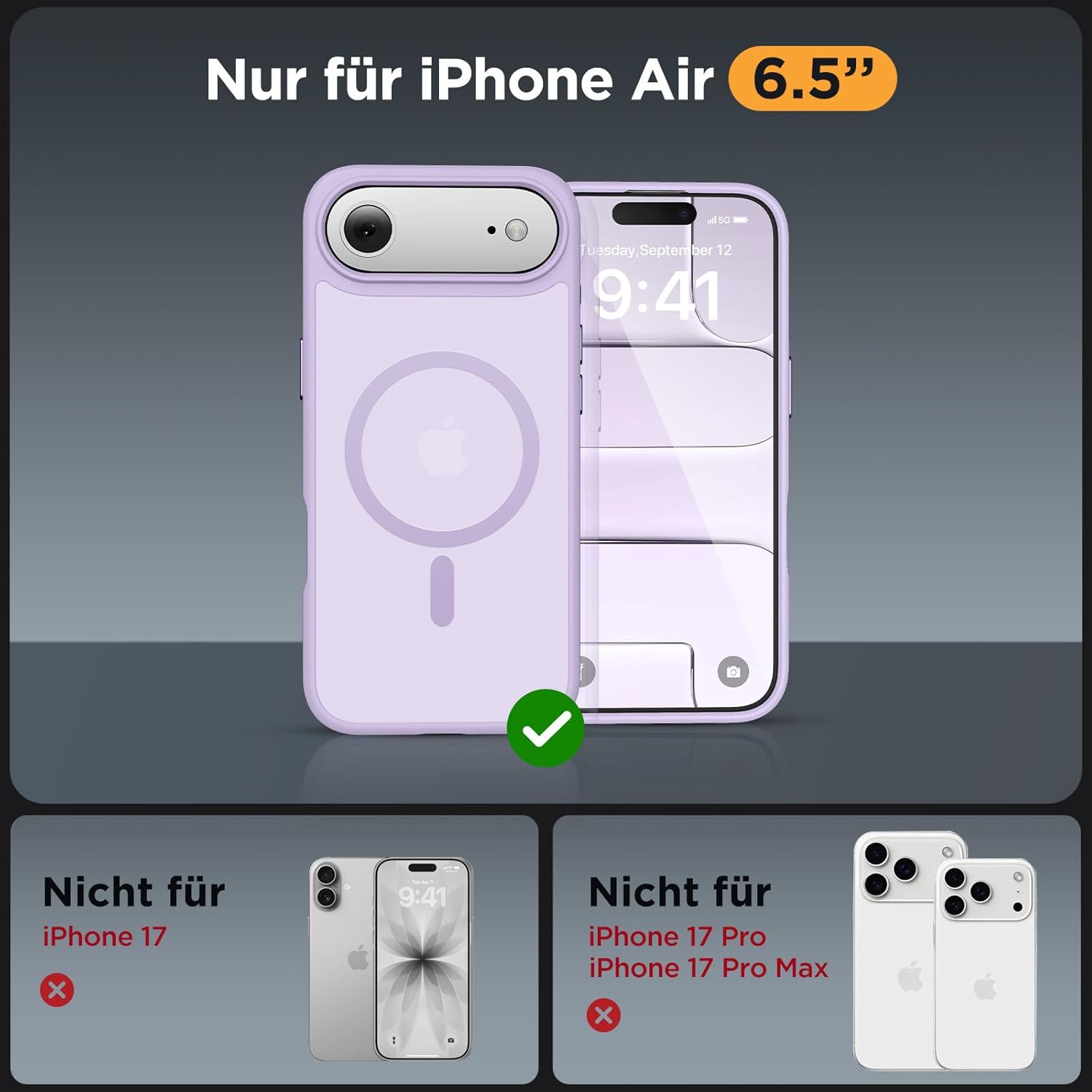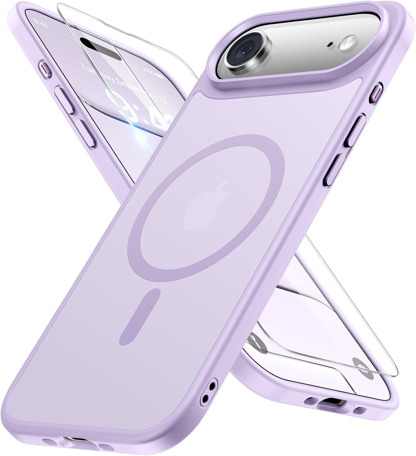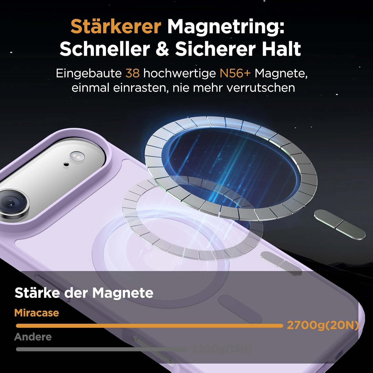 Кейс Miracase за iPhone Air с Magsafe [със закалено стъкло] [Най-добра военна защита и магнитна сила] Удароустойчив, устойчив на надраскване, с кадифено усещане, тънък калъф за мобилен телефон за iPhone 17 Air