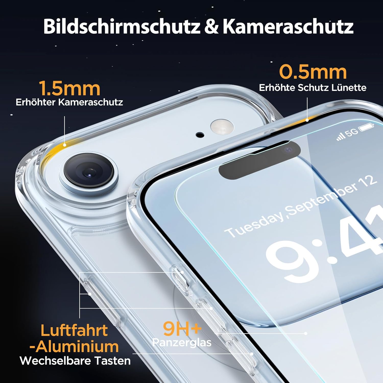 • Цялостна защита и първокласна функционалност: Този калъф за iPhone 17 предпазва от надраскване с 9H+ стъклено фолио, а повдигнатата 1,5 мм рамка на камерата предпазва от удари и сблъсъци с обектива, осигурявайки непроменено качество на изображението. Свалящите се странични бутони от самолетен алуминий осигуряват първокласно тактилно усещане.