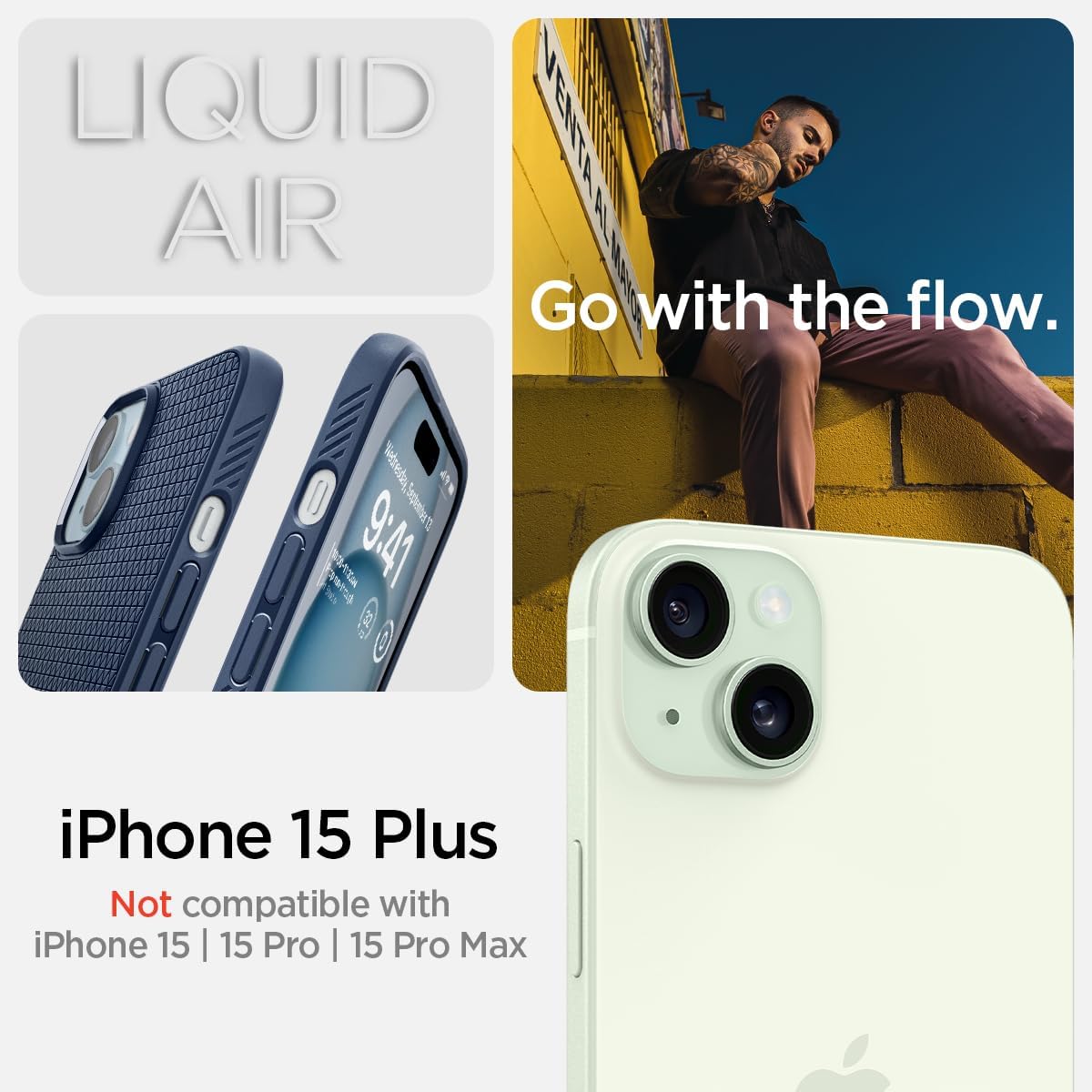 Кейс Spigen за iPhone 15 Plus, Liquid Air Case, защитен калъф за мобилен телефон, тънък, тъмносин
