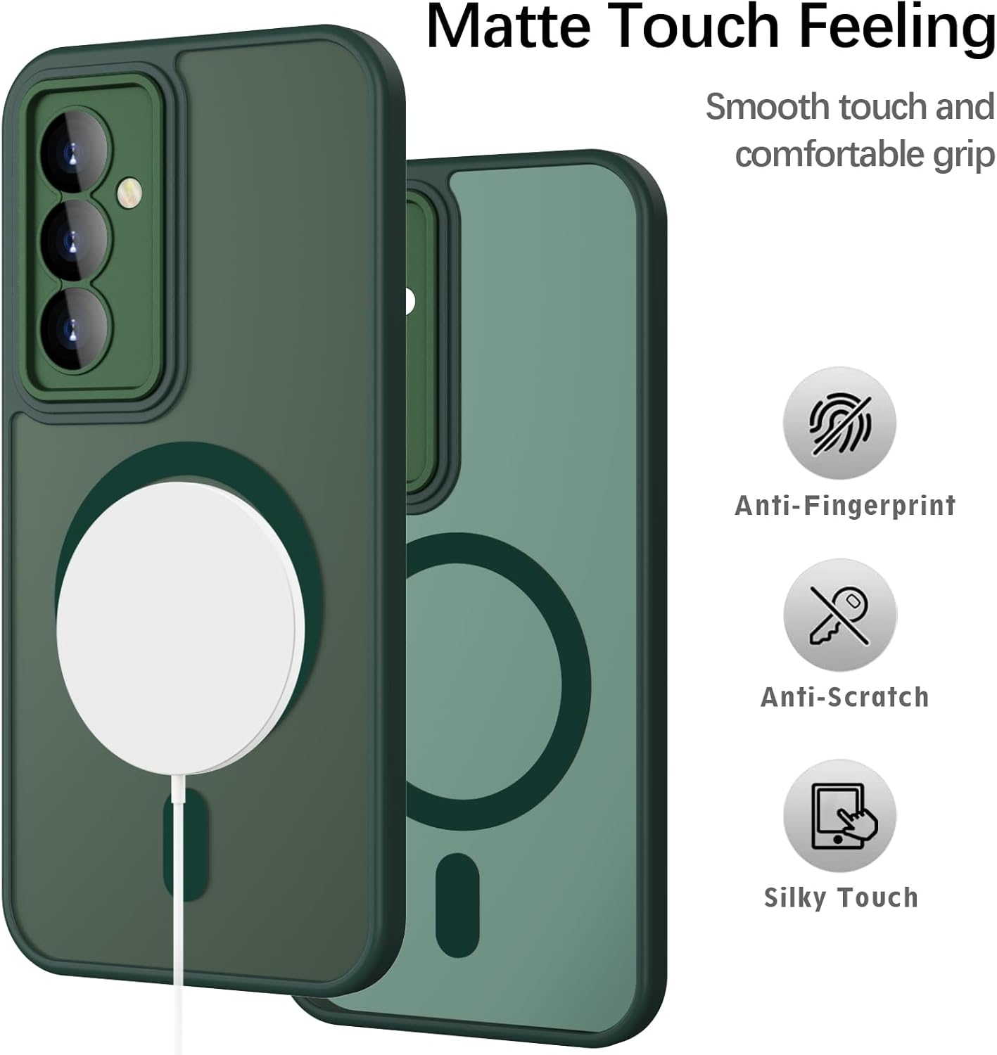 • YUANDMI Тънък магнитен калъф за телефон за Samsung Galaxy S24, не е съвместим с други версии. Поддържа безжично зареждане: