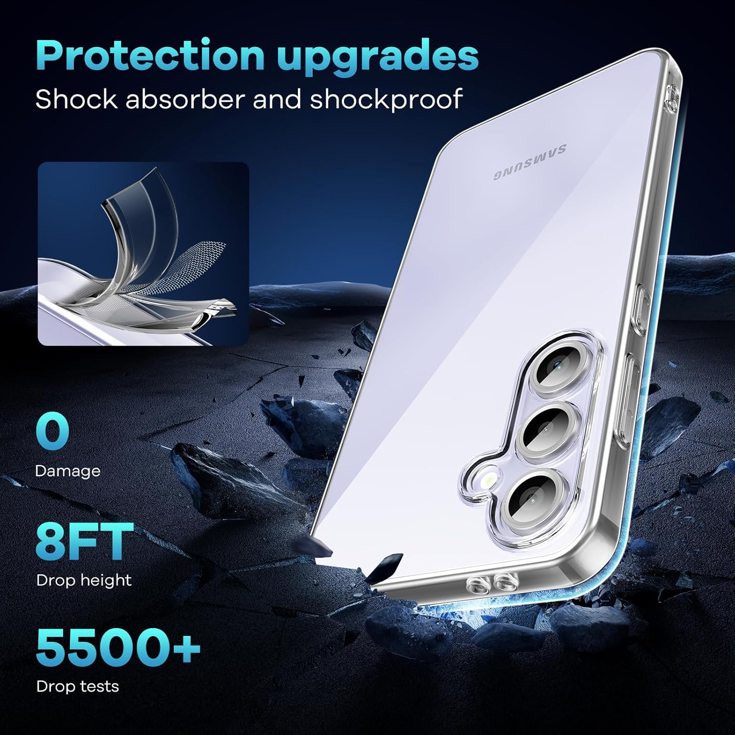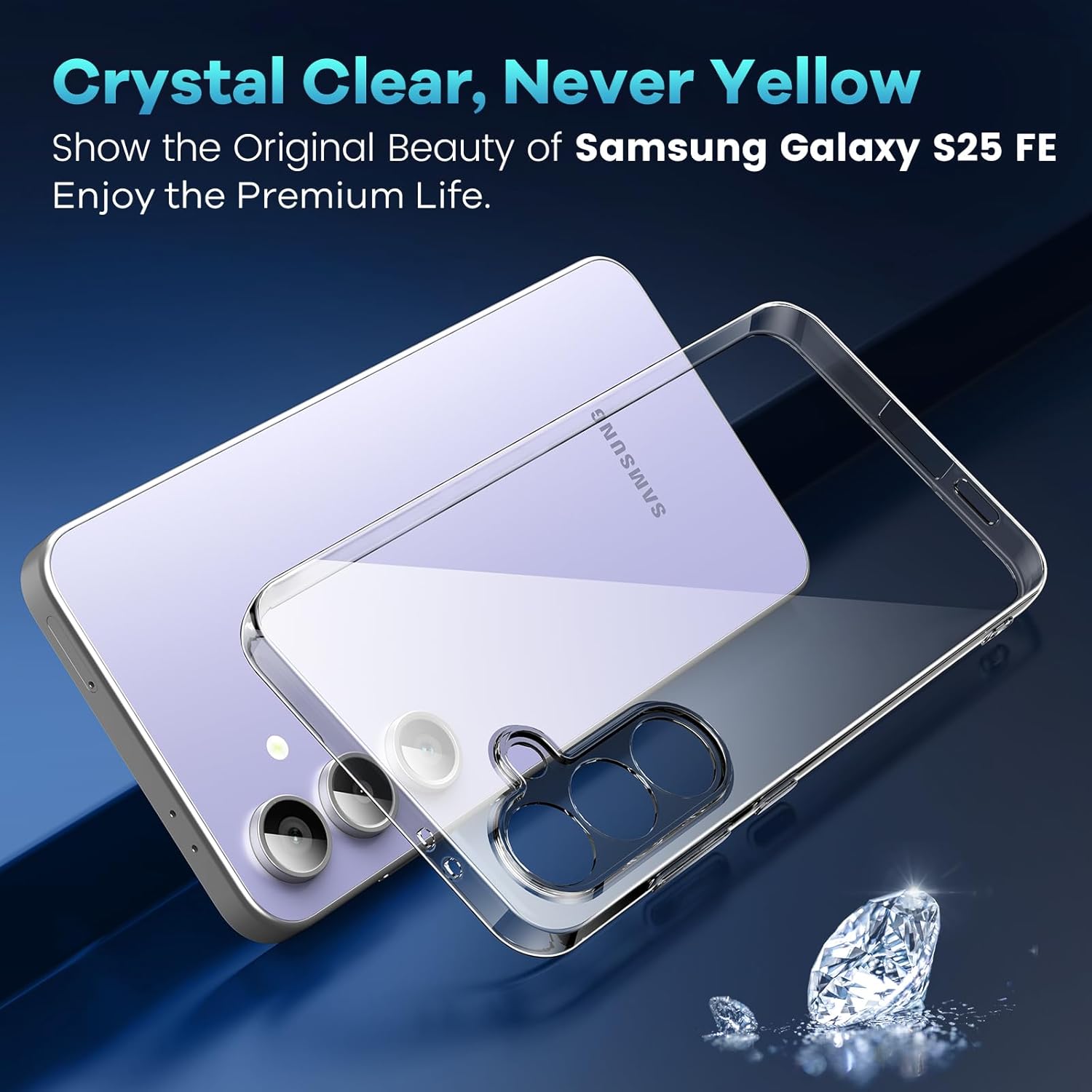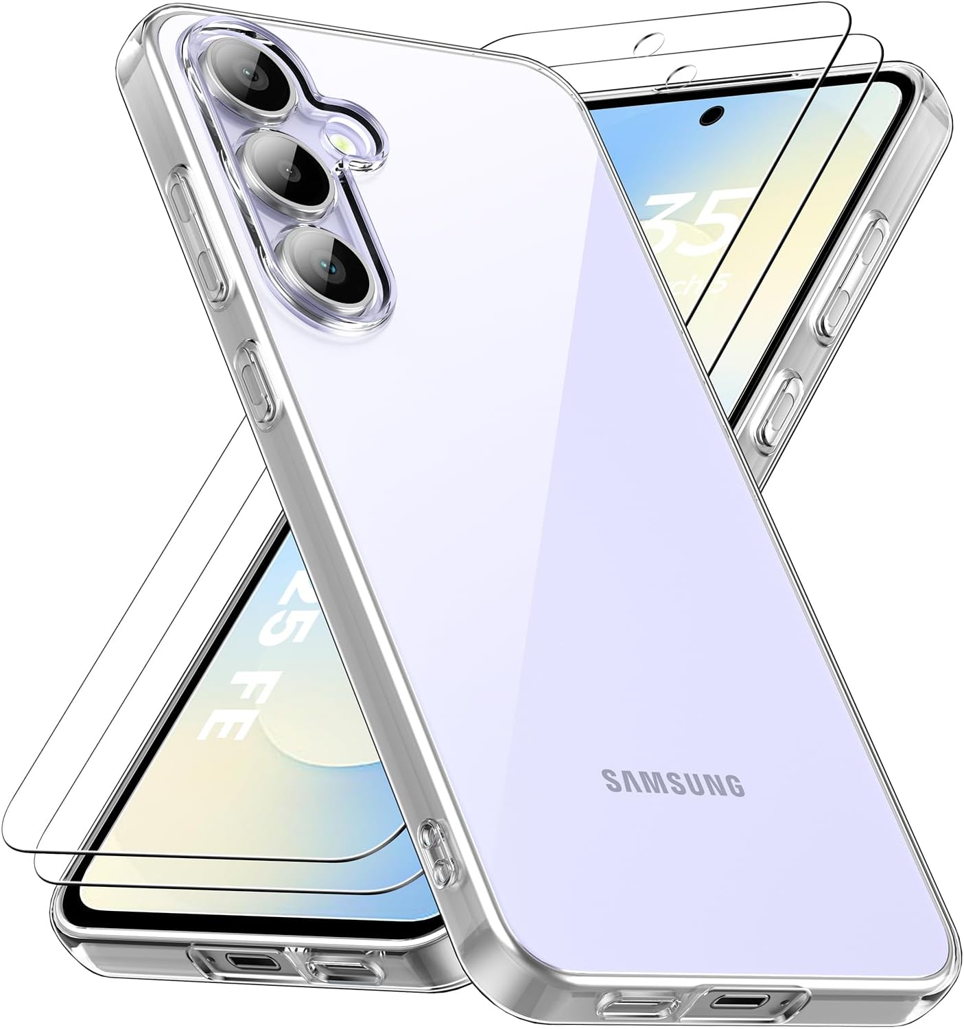 Кейс, съвместим с Samsung Galaxy S25 FE 5G, 1 калъф за мобилен телефон с 2 закалени стъкла, мек TPU прозрачен удароустойчив защитен калъф, прозрачен, устойчив на надраскване, калъф за мобилен телефон