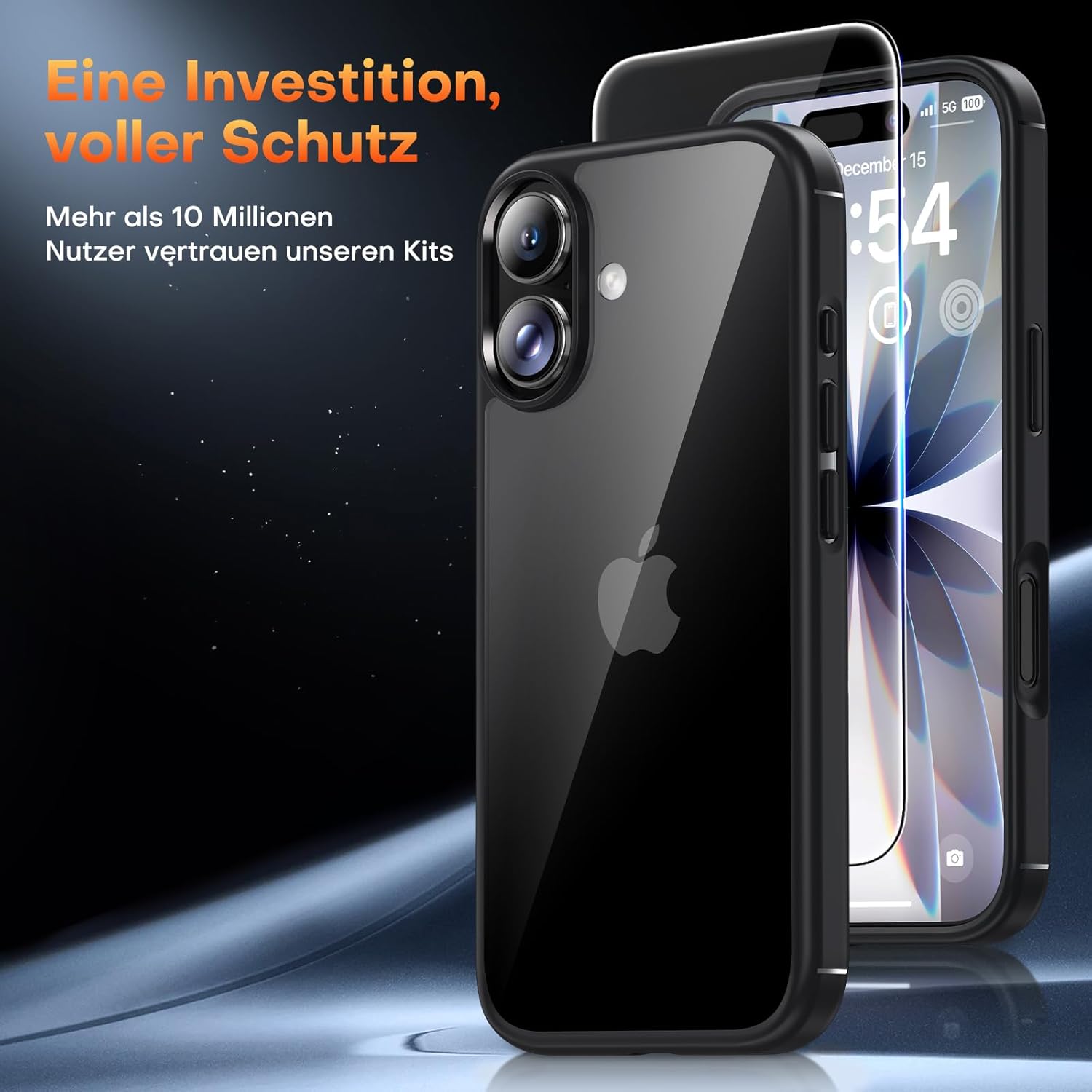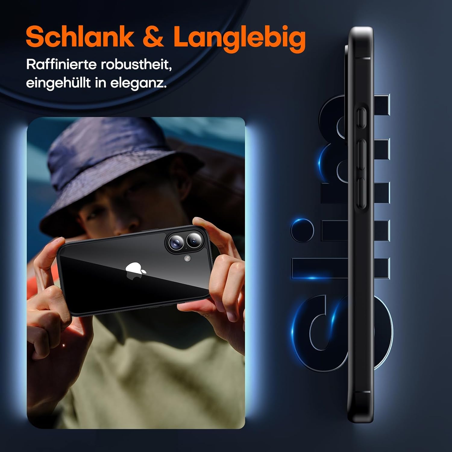 • 2 в 1, 360° цялостна защита: Този удароустойчив комплект за iPhone 17 Pro, включващ висококачествено закалено стъкло 9H, предпазва екрана на телефона ви от надрасквания и счупване, като същевременно остава ултратънък и предлага приятно и чувствително усещане при допир, сякаш няма защита.