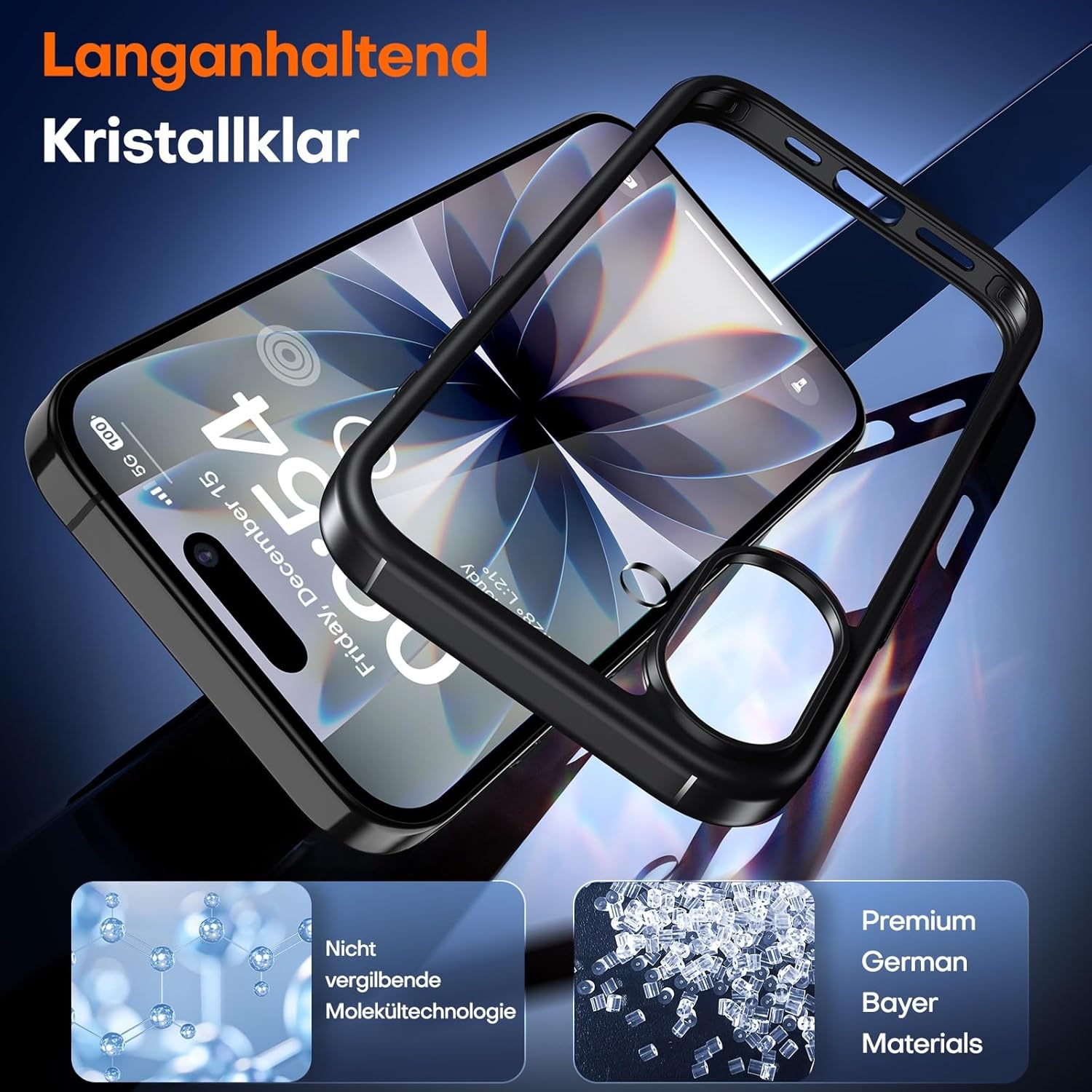 • Премиум защита и елегантност: TAURI калъф за iPhone 17 Pro: Кристално прозрачен PC гръб с дълготрайно покритие против пожълтяване, прецизна защита на камерата и ударопоглъщаща TPU рамка, оптимална защита с вечен дизайн.