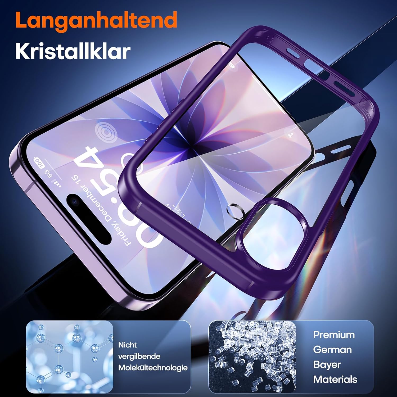 • Премиум защита и елегантност: TAURI калъф за iPhone 17 Pro: Кристално прозрачен PC гръб с дълготрайно покритие против пожълтяване, прецизна защита на камерата и ударопоглъщаща TPU рамка, оптимална защита с вечен дизайн.