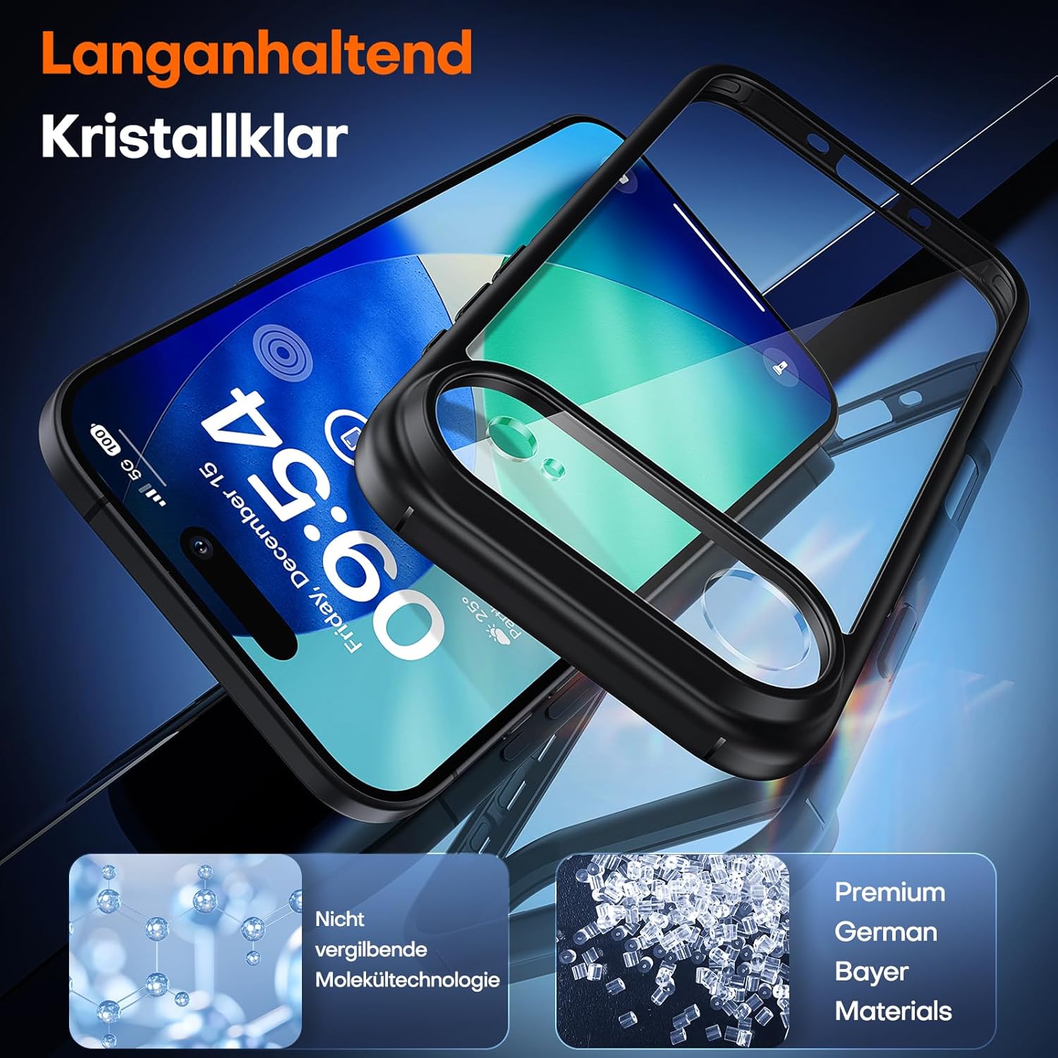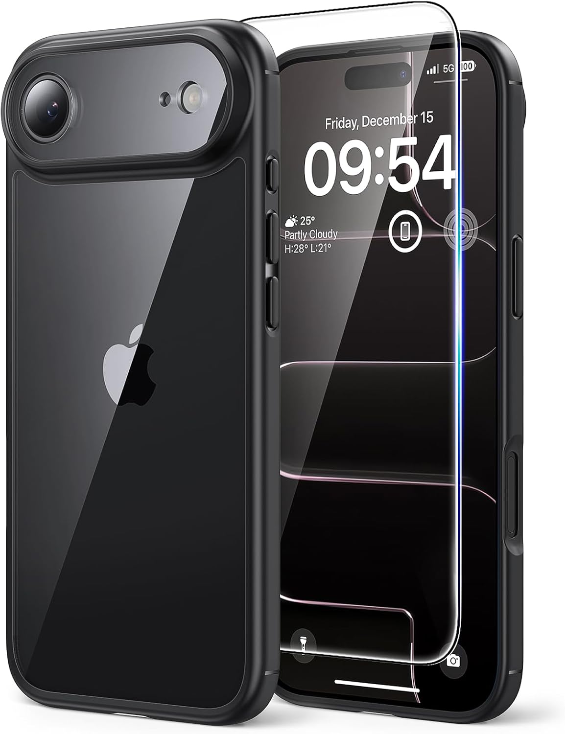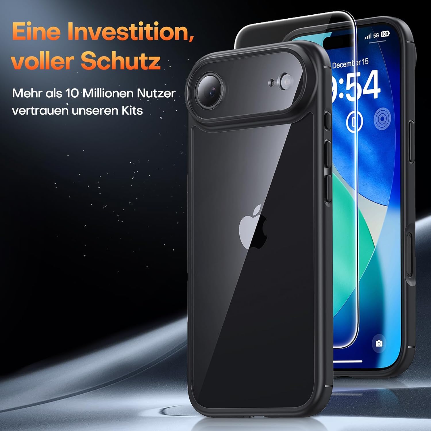 • 2 в 1, 360° цялостна защита: Този удароустойчив комплект за iPhone 17 Pro, включващ висококачествено закалено стъкло 9H, предпазва екрана на телефона ви от надрасквания и счупване, като същевременно остава ултратънък и предлага приятно и чувствително усещане при допир, сякаш няма защита.