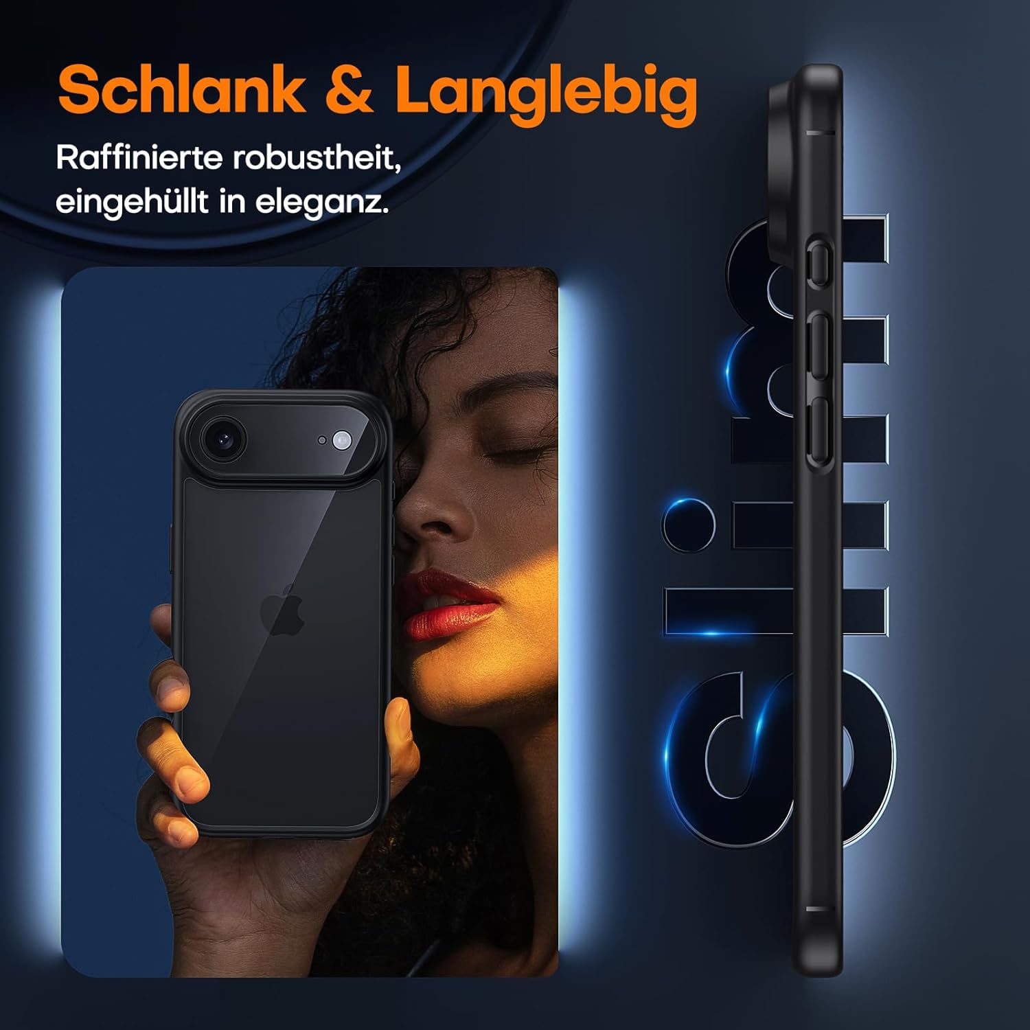 • Премиум защита и елегантност: TAURI калъф за iPhone 17 Pro: Кристално прозрачен PC гръб с дълготрайно покритие против пожълтяване, прецизна защита на камерата и ударопоглъщаща TPU рамка, оптимална защита с вечен дизайн.