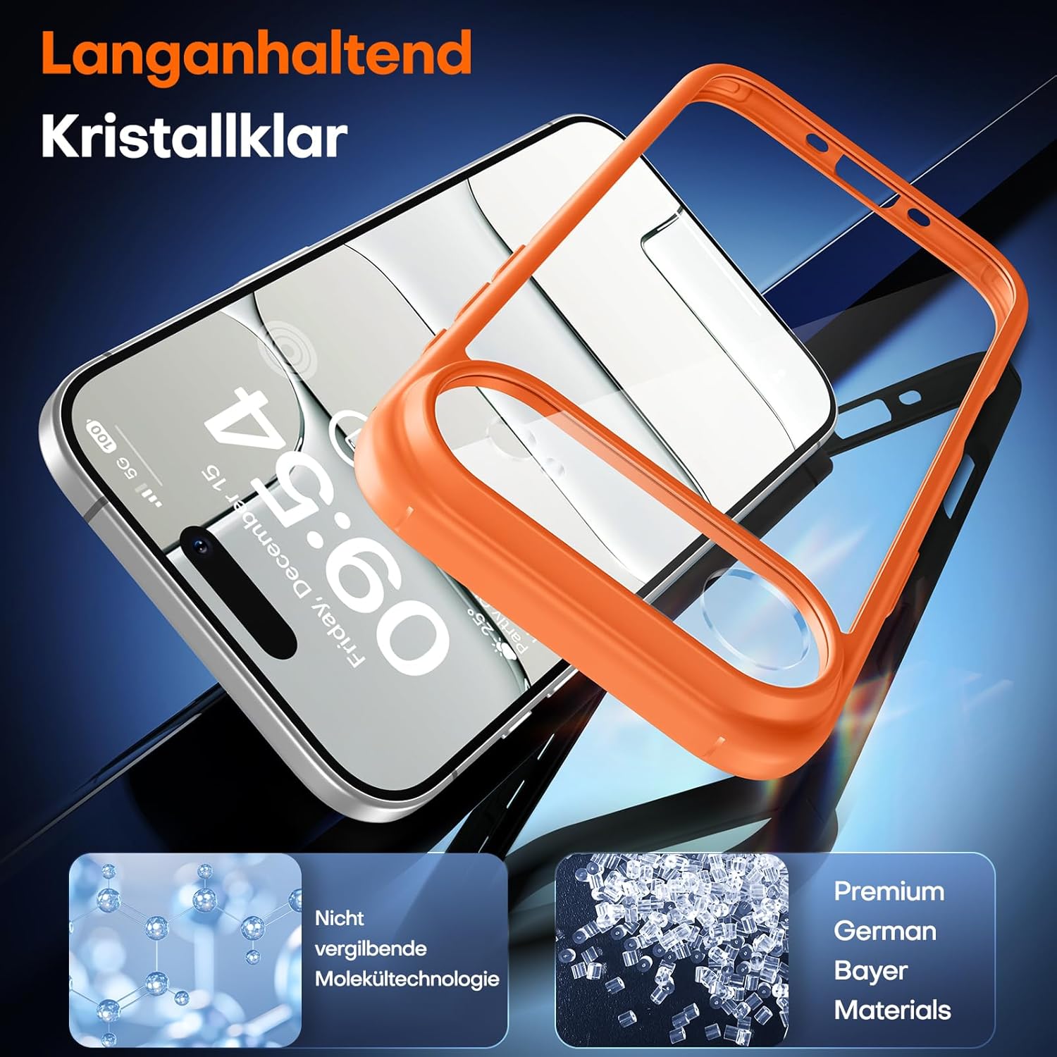 • 2 в 1, 360° цялостна защита: Този удароустойчив комплект за iPhone 17 Pro, включващ висококачествено закалено стъкло 9H, предпазва екрана на телефона ви от надрасквания и счупване, като същевременно остава ултратънък и предлага приятно и чувствително усещане при допир, сякаш няма защита.