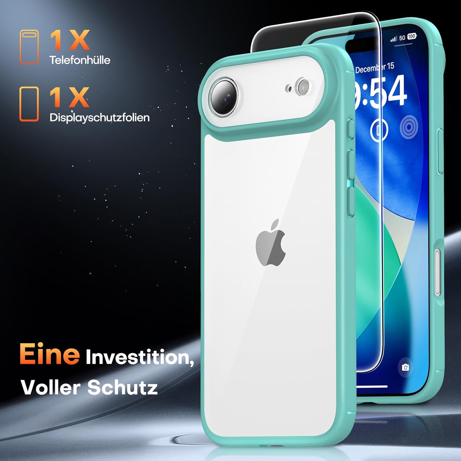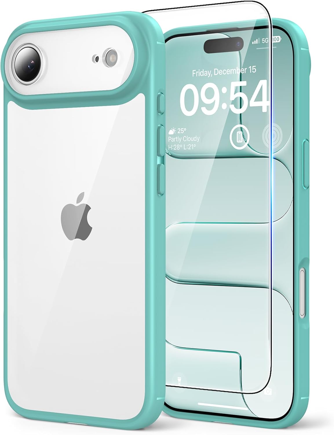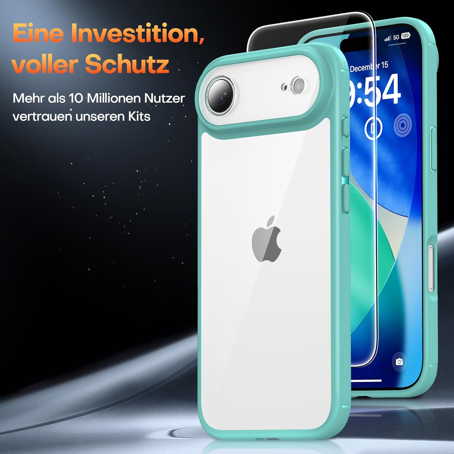• 2 в 1, 360° цялостна защита: Този удароустойчив комплект за iPhone 17 Pro, включващ висококачествено закалено стъкло 9H, предпазва екрана на телефона ви от надрасквания и счупване, като същевременно остава ултратънък и предлага приятно и чувствително усещане при допир, сякаш няма защита.