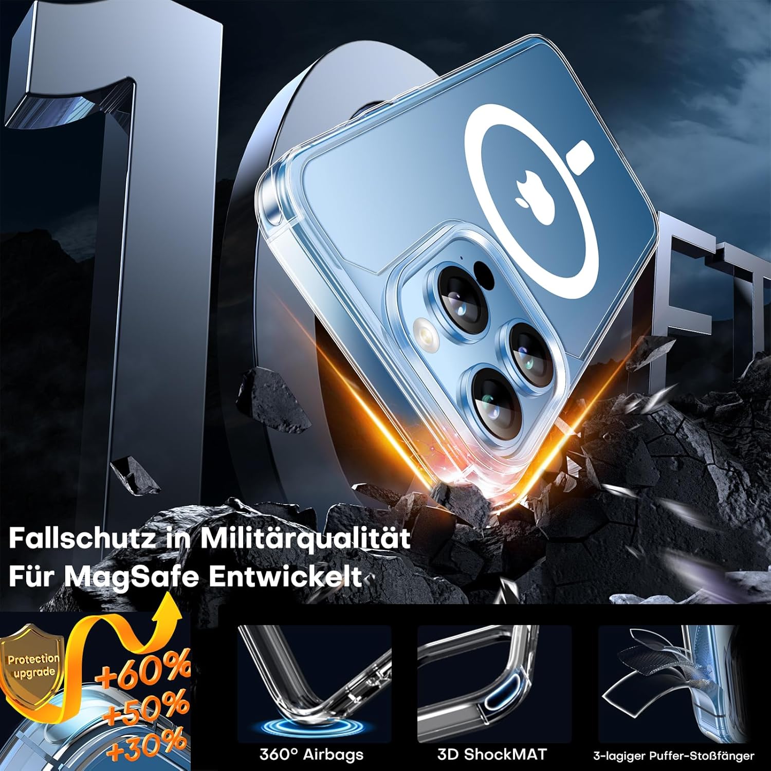 • Надграждане: Многослойна защита от падане от 4,5 метра: Нашият калъф за iPhone 17 Pro има мека TPU рамка и твърд PC заден панел. Благодарение на иновативната вградена клетъчна структура за абсорбиране на удари, той осигурява многослойна защита от удар и намалява щетите дори при падане от височина до 4,5 метра.