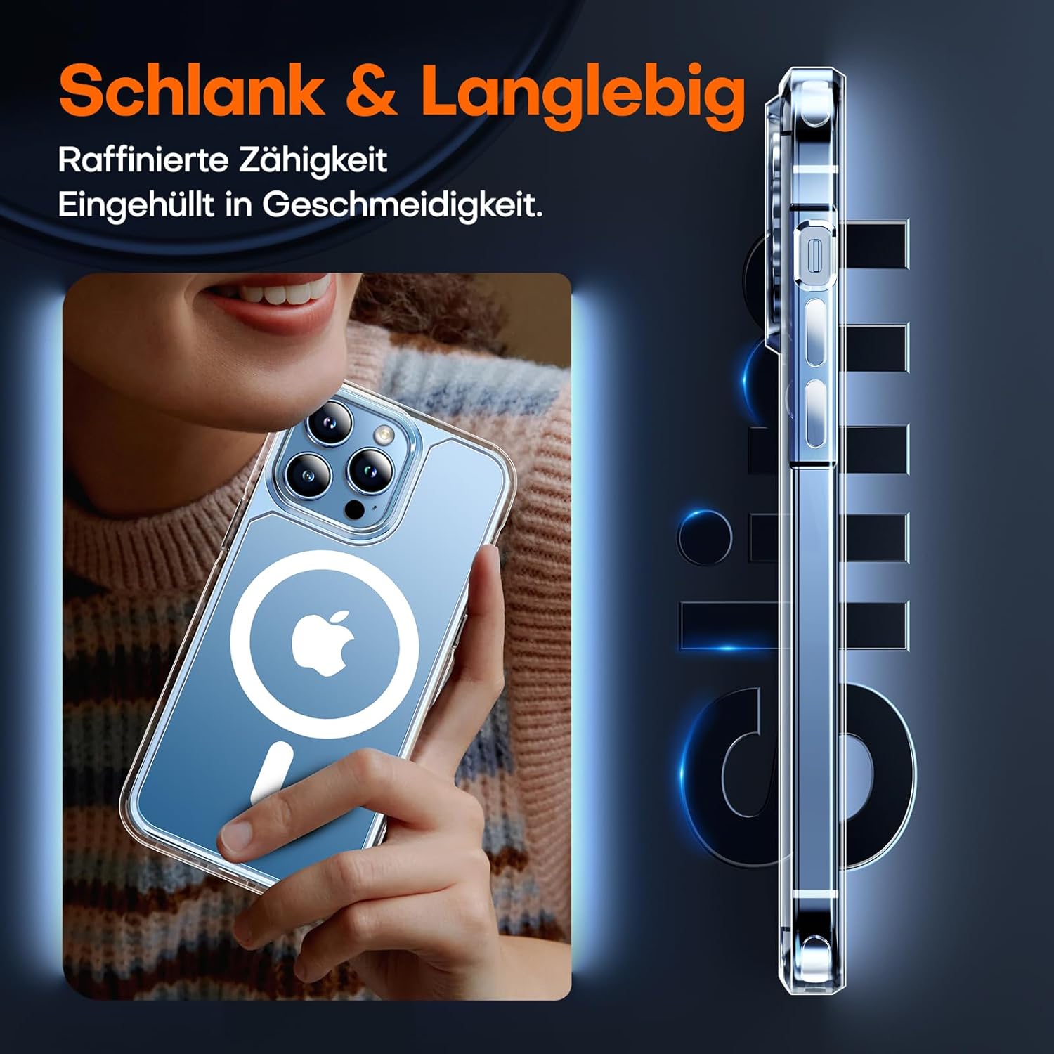 • Премиум защита и елегантност: TAURI калъф за iPhone 17 Pro: Кристално прозрачен PC гръб с дълготрайно покритие против пожълтяване, прецизна защита на камерата и ударопоглъщаща TPU рамка, оптимална защита с вечен дизайн.