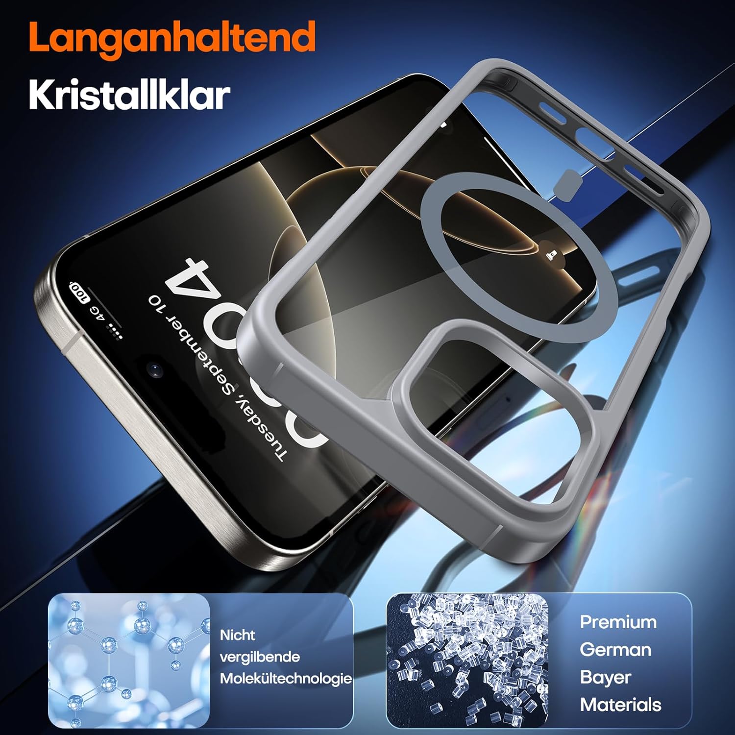 • Премиум защита и елегантност: TAURI калъф за iPhone 17 Pro: Кристално прозрачен PC гръб с дълготрайно покритие против пожълтяване, прецизна защита на камерата и ударопоглъщаща TPU рамка, оптимална защита с вечен дизайн.