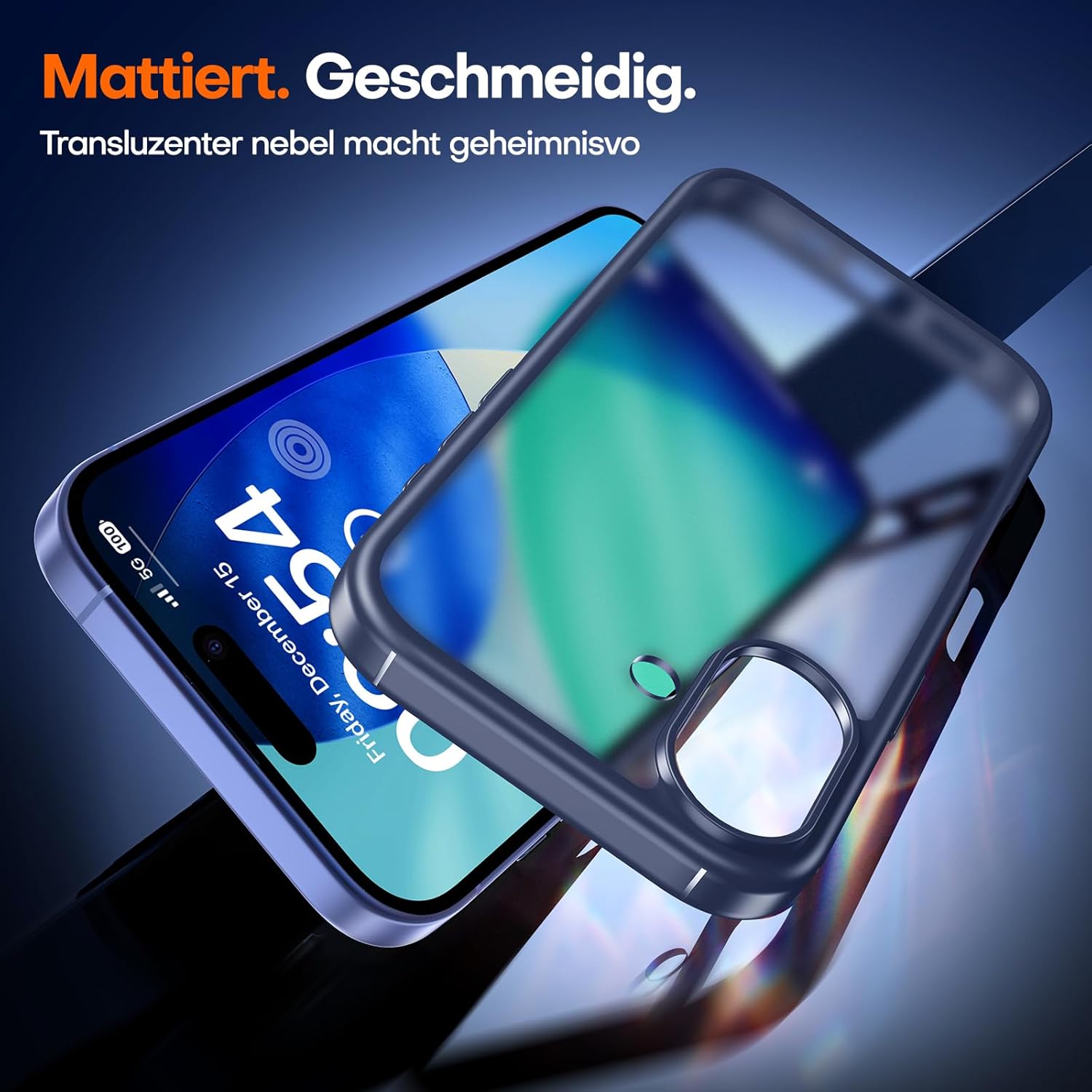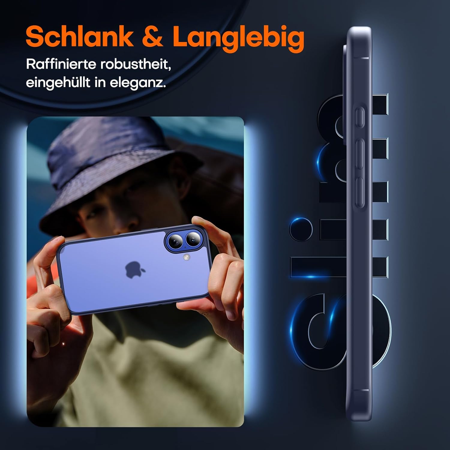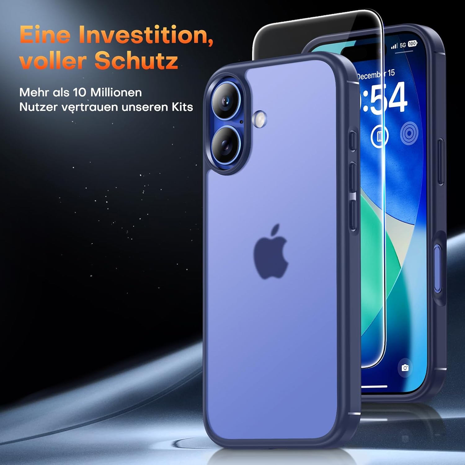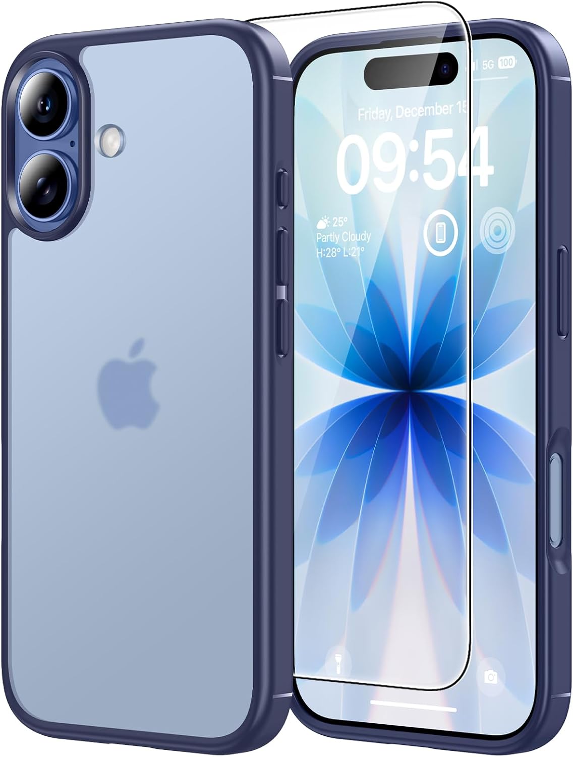 Кейс TAURI за iPhone 17 6.3 инча със закалено стъклено фолио, военна стандартна защита, [против пожълтяване] удароустойчив прозрачен калъф за мобилен телефон по военен стандарт - матово тъмносиньо