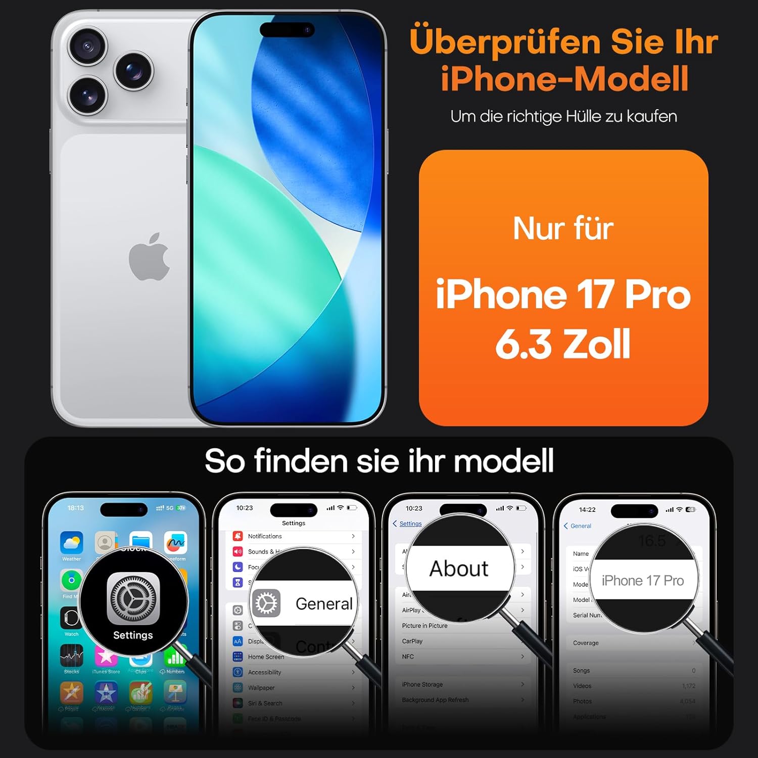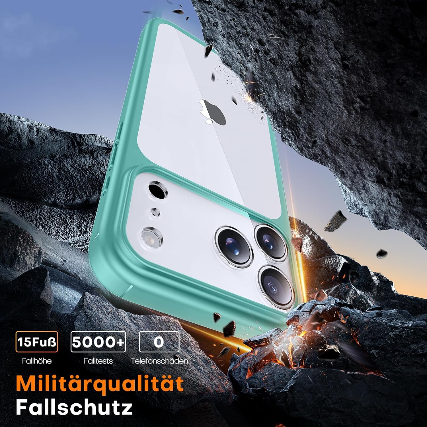 • Надграждане: Многослойна защита от падане от 4,5 метра: Нашият калъф за iPhone 17 Pro има мека TPU рамка и твърд PC заден панел. Благодарение на иновативната вградена клетъчна структура за абсорбиране на удари, той осигурява многослойна защита от удар и намалява щетите дори при падане от височина до 4,5 метра.
