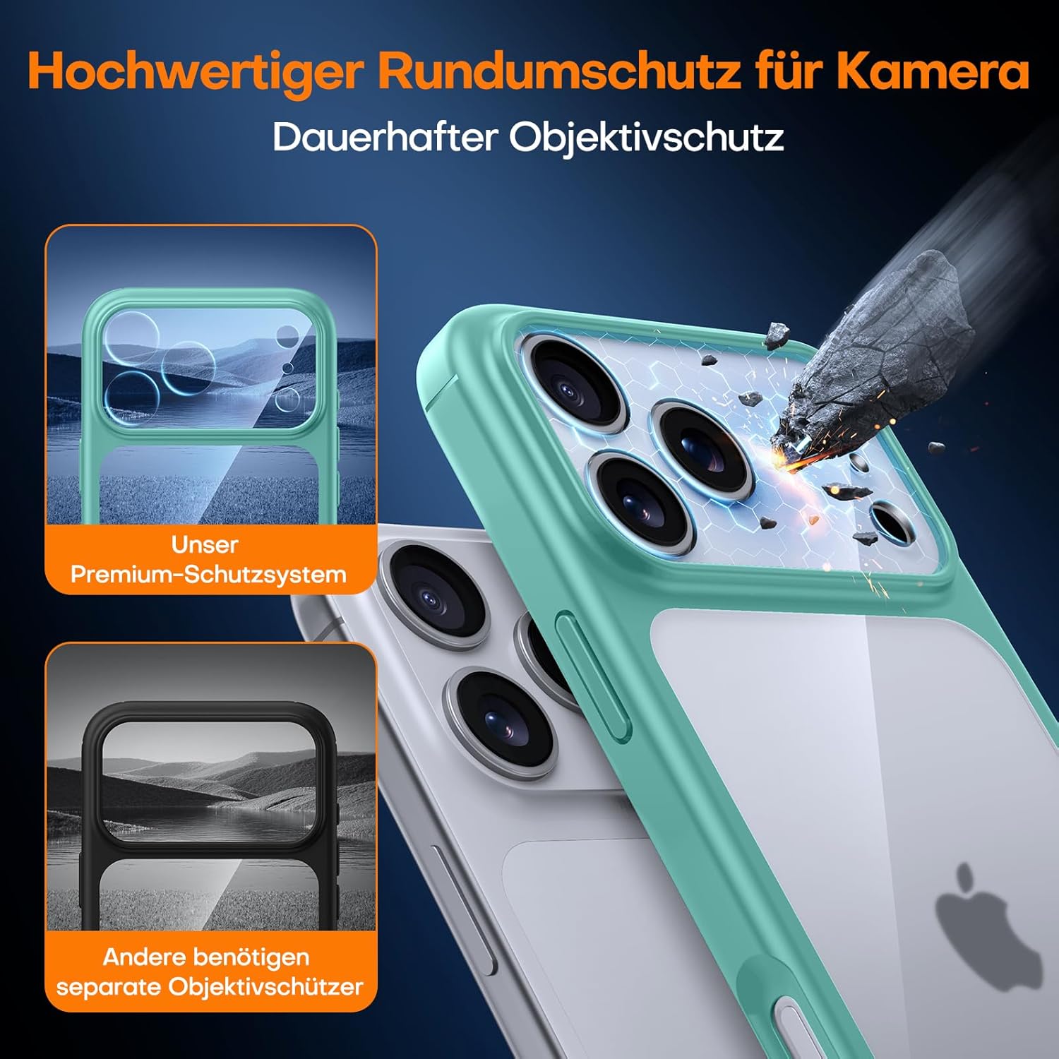 • Премиум защита и елегантност: TAURI калъф за iPhone 17 Pro: Кристално прозрачен PC гръб с дълготрайно покритие против пожълтяване, прецизна защита на камерата и ударопоглъщаща TPU рамка, оптимална защита с вечен дизайн.