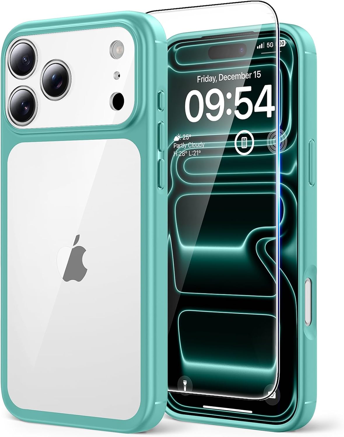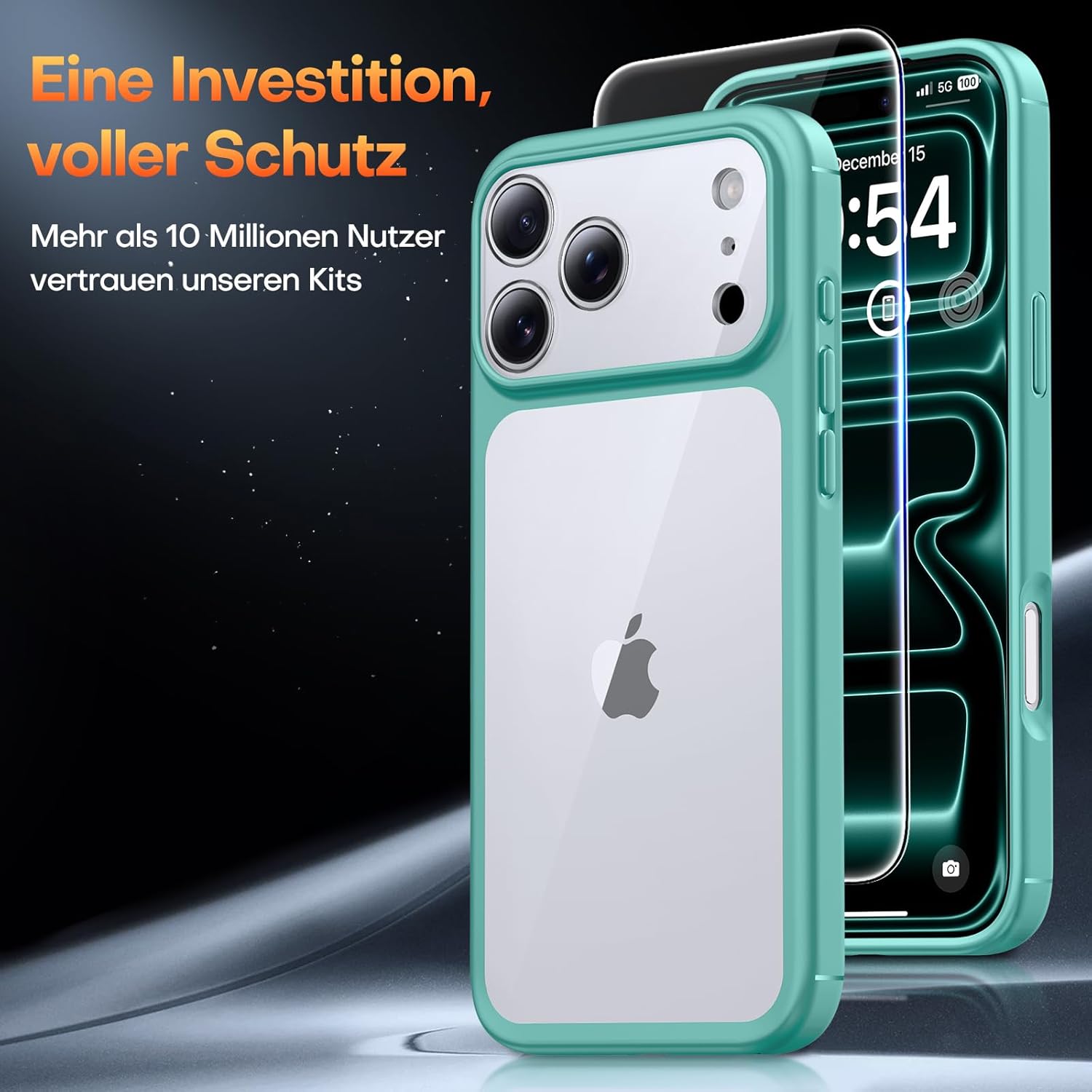 • 2 в 1, 360° цялостна защита: Този удароустойчив комплект за iPhone 17 Pro, включващ висококачествено закалено стъкло 9H, предпазва екрана на телефона ви от надрасквания и счупване, като същевременно остава ултратънък и предлага приятно и чувствително усещане при допир, сякаш няма защита.