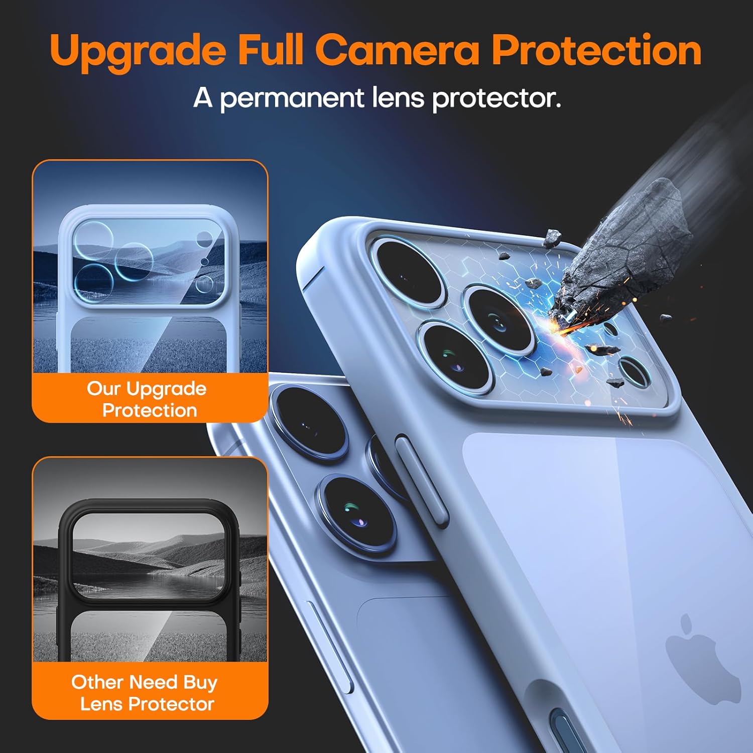• Надграждане: Многослойна защита от падане от 4,5 метра: Нашият калъф за iPhone 17 Pro има мека TPU рамка и твърд PC заден панел. Благодарение на иновативната вградена клетъчна структура за абсорбиране на удари, той осигурява многослойна защита от удар и намалява щетите дори при падане от височина до 4,5 метра.