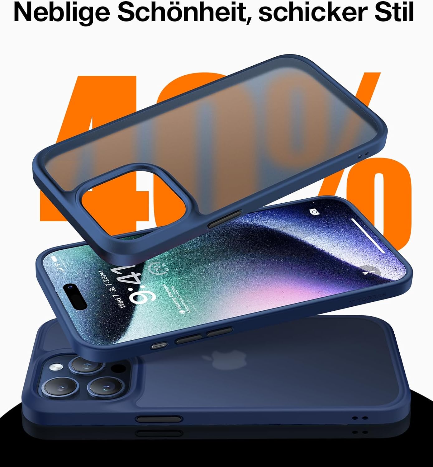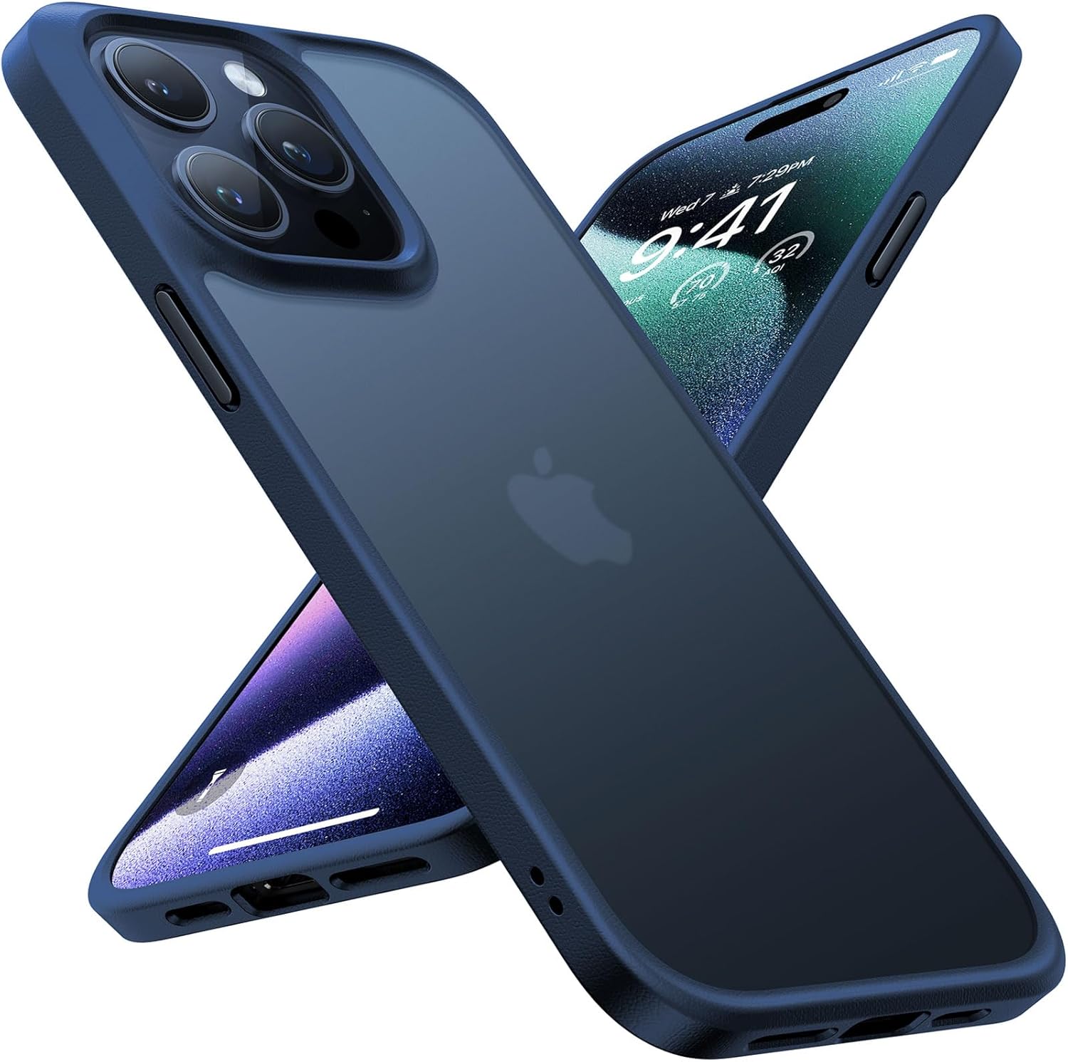 Кейс TORRAS Guardian за iPhone 15 Pro, подобрена сертифицирана военна защита, кадифено меко покритие, удароустойчив, матов, със свалящи се копчета, защитен калъф, титаниево син