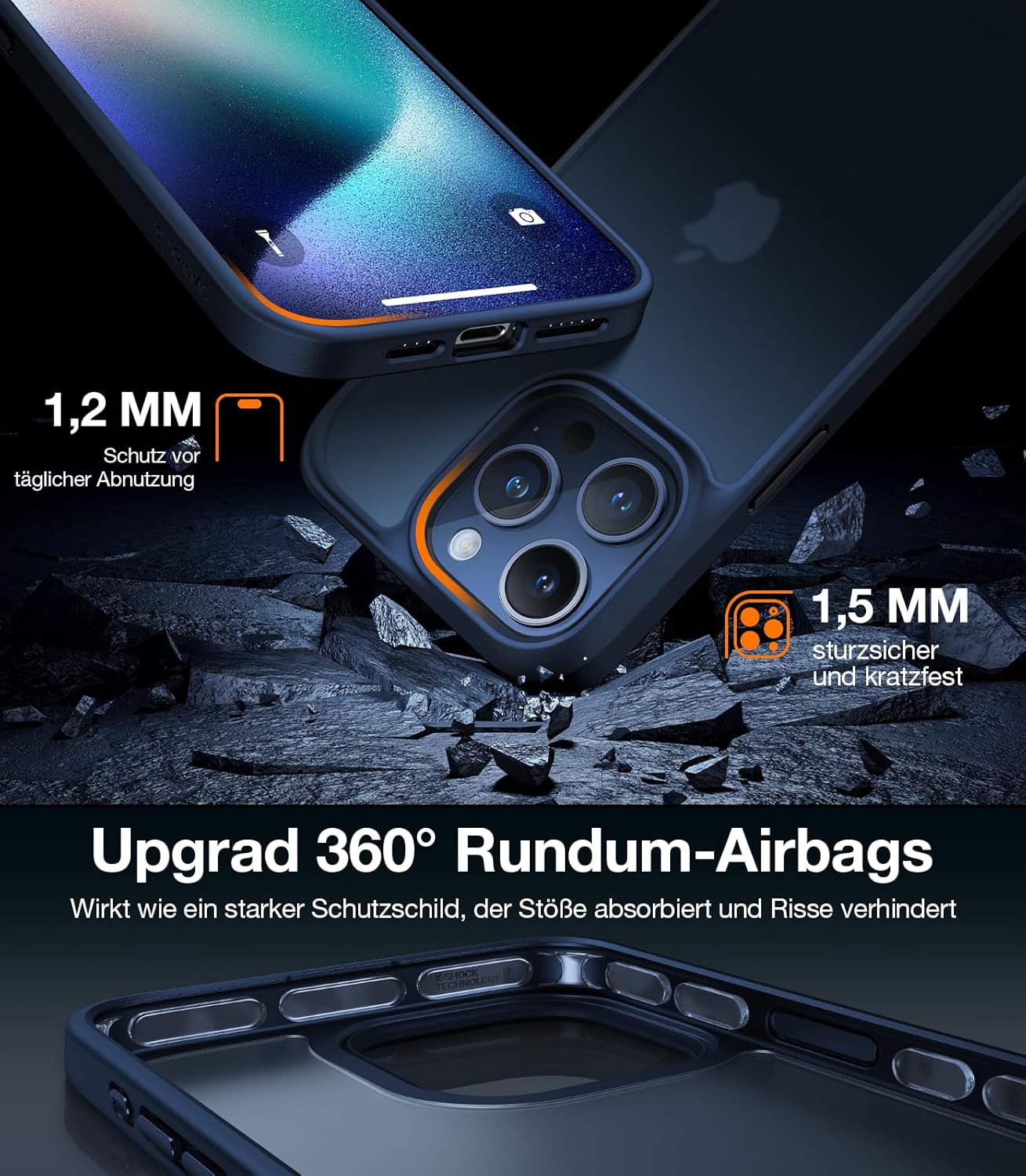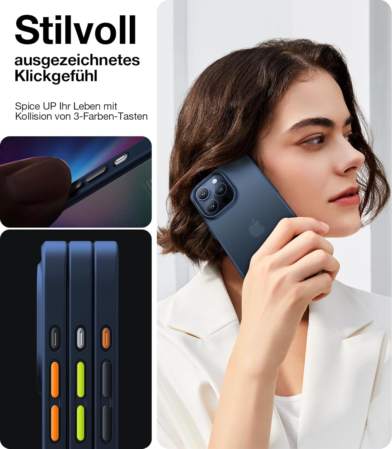 • Защитава всеки детайл, дисплей и камера: Калъфът за мобилен телефон iPhone 17 Pro има повдигнат ръб от 1,2 мм около екрана и повдигнат ръб от 1,5 мм над камерата, които осигуряват изключително ефективна защита срещу надраскване за най-скъпите и крехки части на вашия мобилен телефон. Всеки ръб, ъгъл и повърхност са подсилени, за да създадат непревземаема защита за вашия iPhone. Така можете да останете спокойни след всеки инцидент.