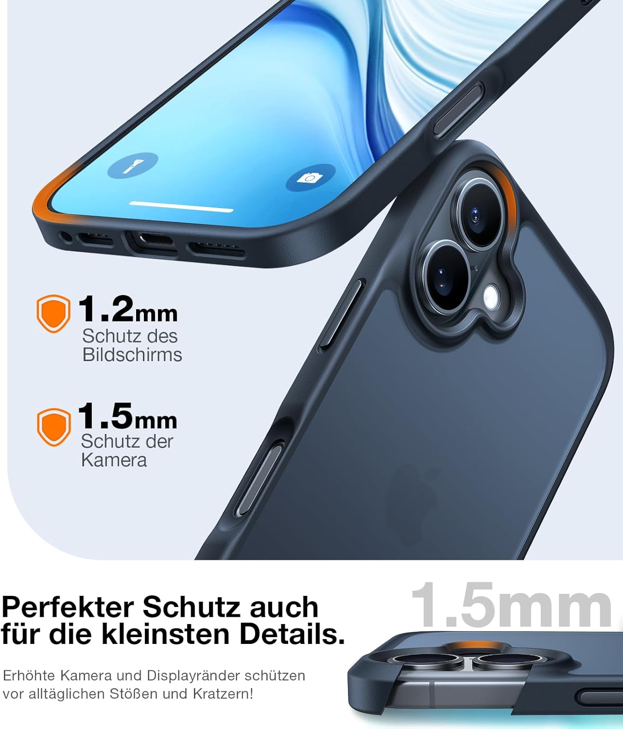• Защитава всеки детайл, дисплей и камера: Калъфът за мобилен телефон iPhone 17 Pro има повдигнат ръб от 1,2 мм около екрана и повдигнат ръб от 1,5 мм над камерата, които осигуряват изключително ефективна защита срещу надраскване за най-скъпите и крехки части на вашия мобилен телефон. Всеки ръб, ъгъл и повърхност са подсилени, за да създадат непревземаема защита за вашия iPhone. Така можете да останете спокойни след всеки инцидент.
