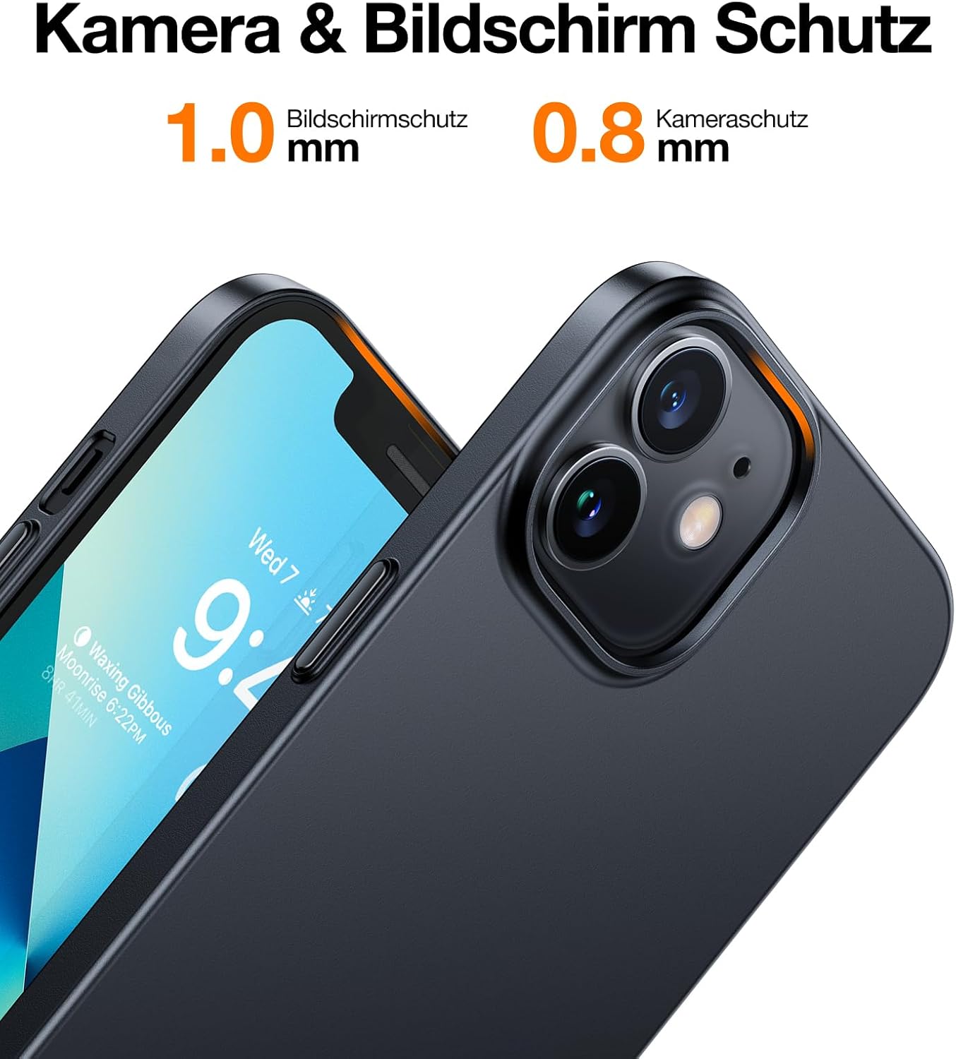 Кейс Torras, съвместим с iPhone 12 mini, ултра тънък матов калъф за мобилен телефон с 2 протектора за екран.