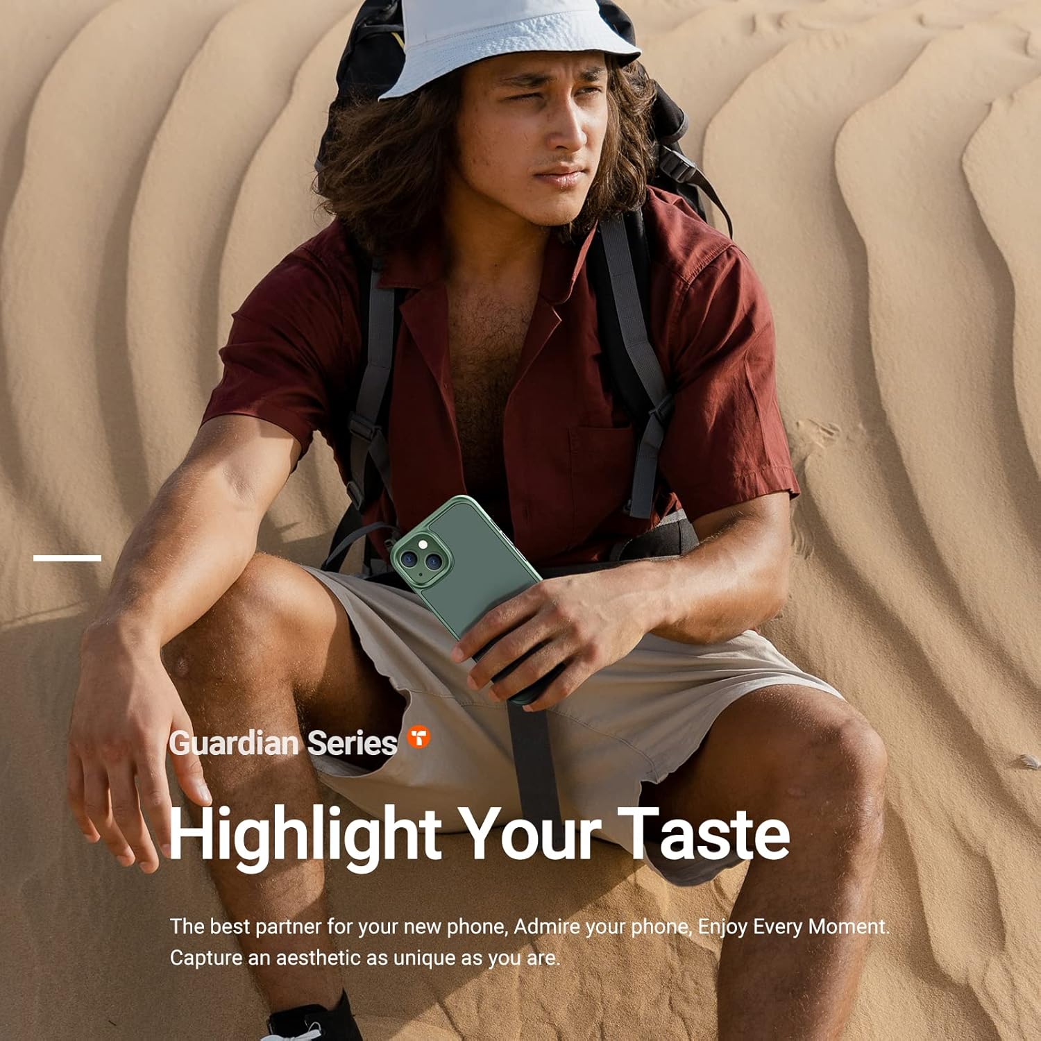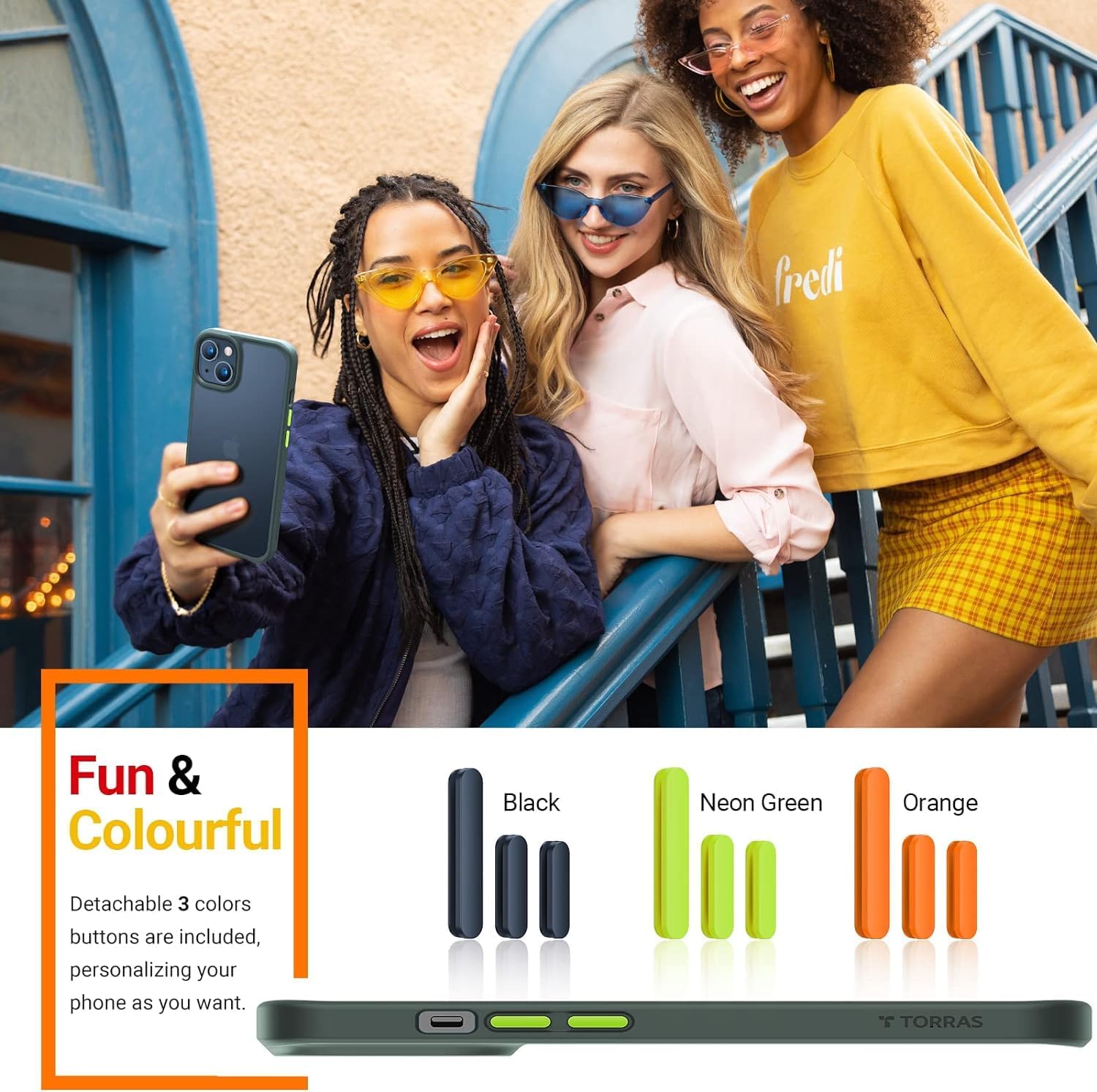 Кейс Torras за iPhone 13, истински сертифициран военен защитен кейс за iPhone 13, удароустойчив и устойчив на надраскване защитен кейс с цветни копчета, страхотно усещане и визия, серия Guardian, матово зелен