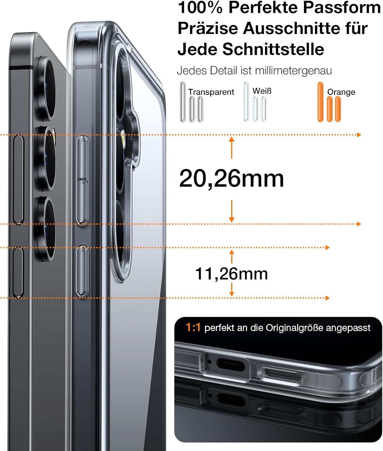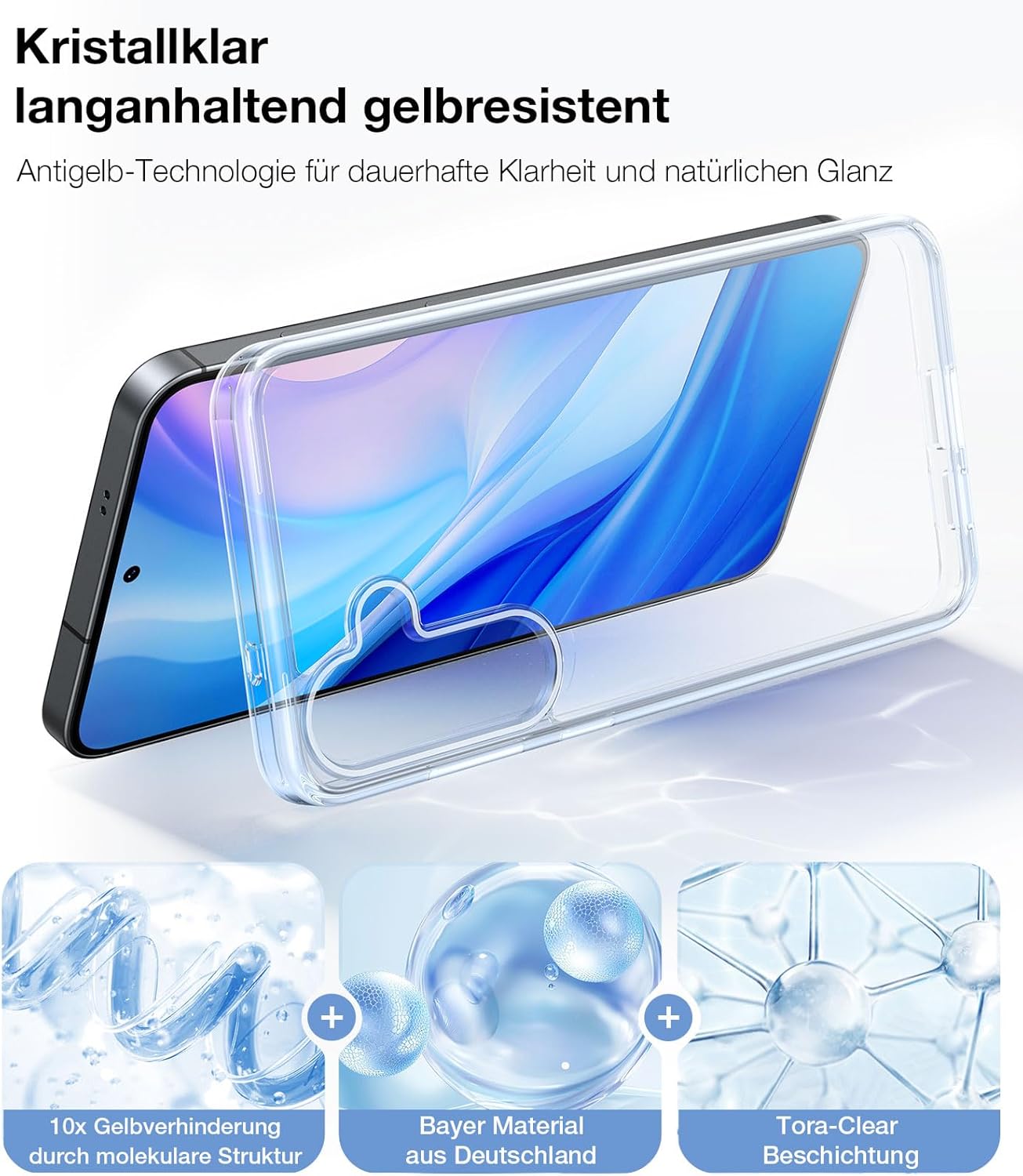 Кейс TORRAS за Samsung Galaxy S25, 100% против пожълтяване [Най-висока военна защита и луксозно усещане при допир] с 360° въздушни възглавници, удароустойчив, устойчив на надраскване калъф за мобилен телефон, калъф за Samsung S25,