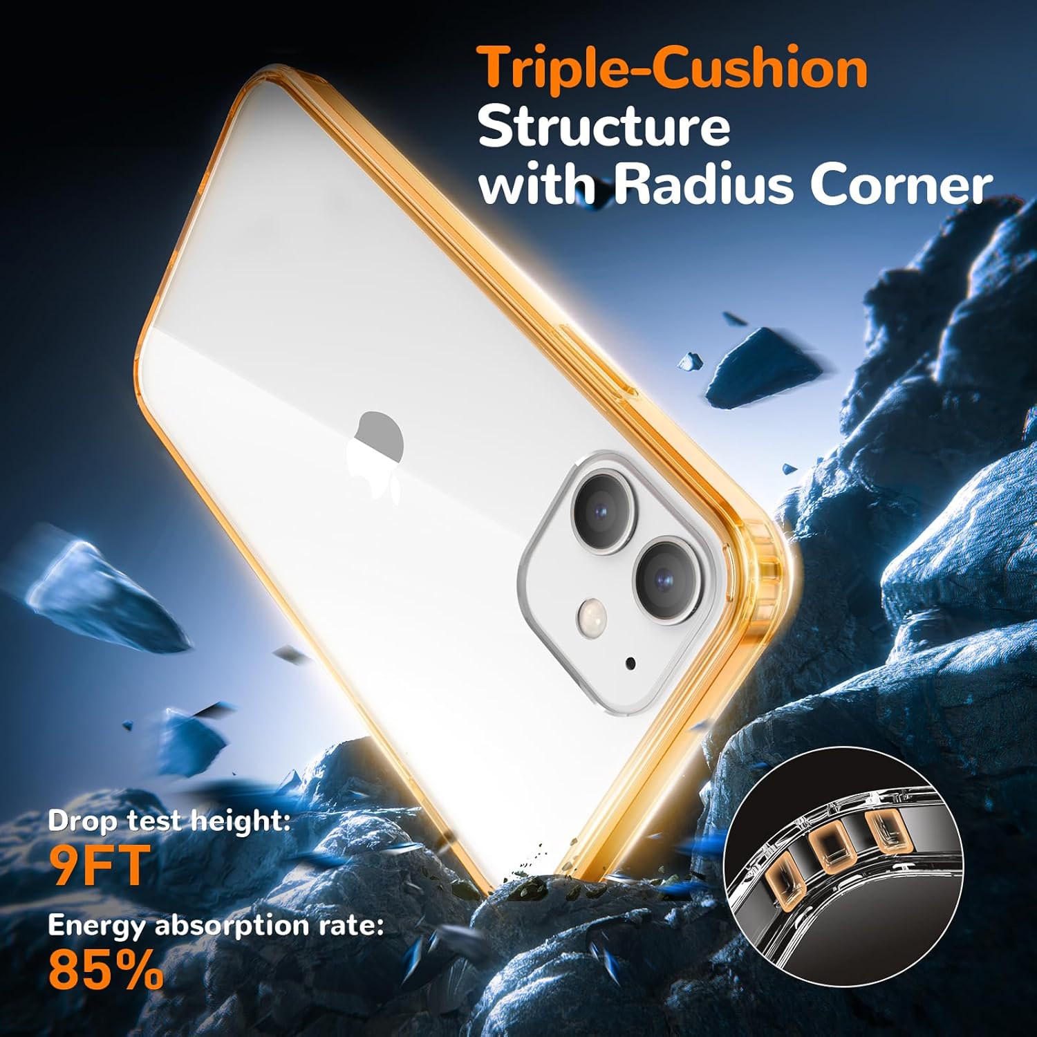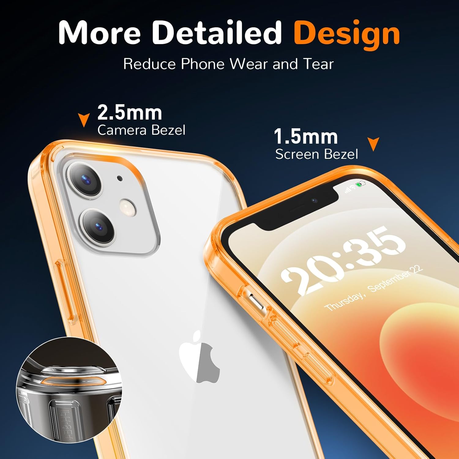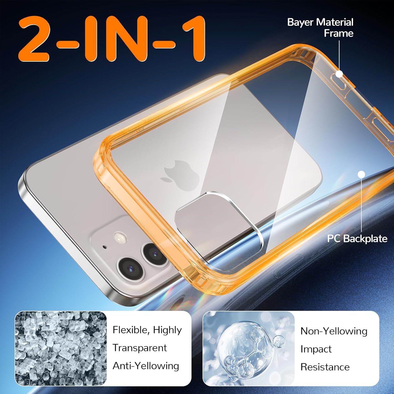 Кейс за iPhone 12/12 Pro, Прозрачен калъф за мобилен телефон с анти-пожълтяване, Удароустойчив защитен калъф, Висококачествен калъф, устойчив на надраскване, за iPhone 12/12 Pro - Оранжев
