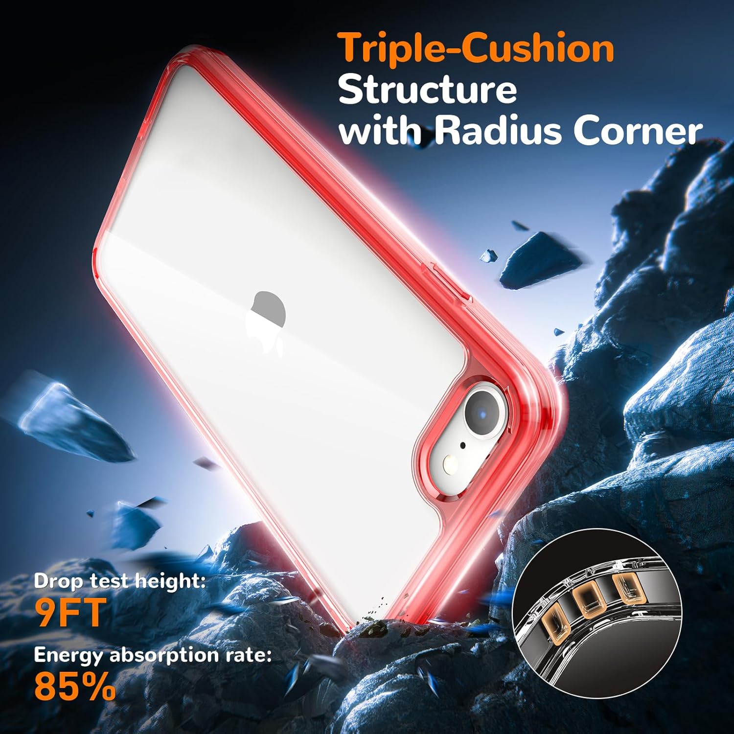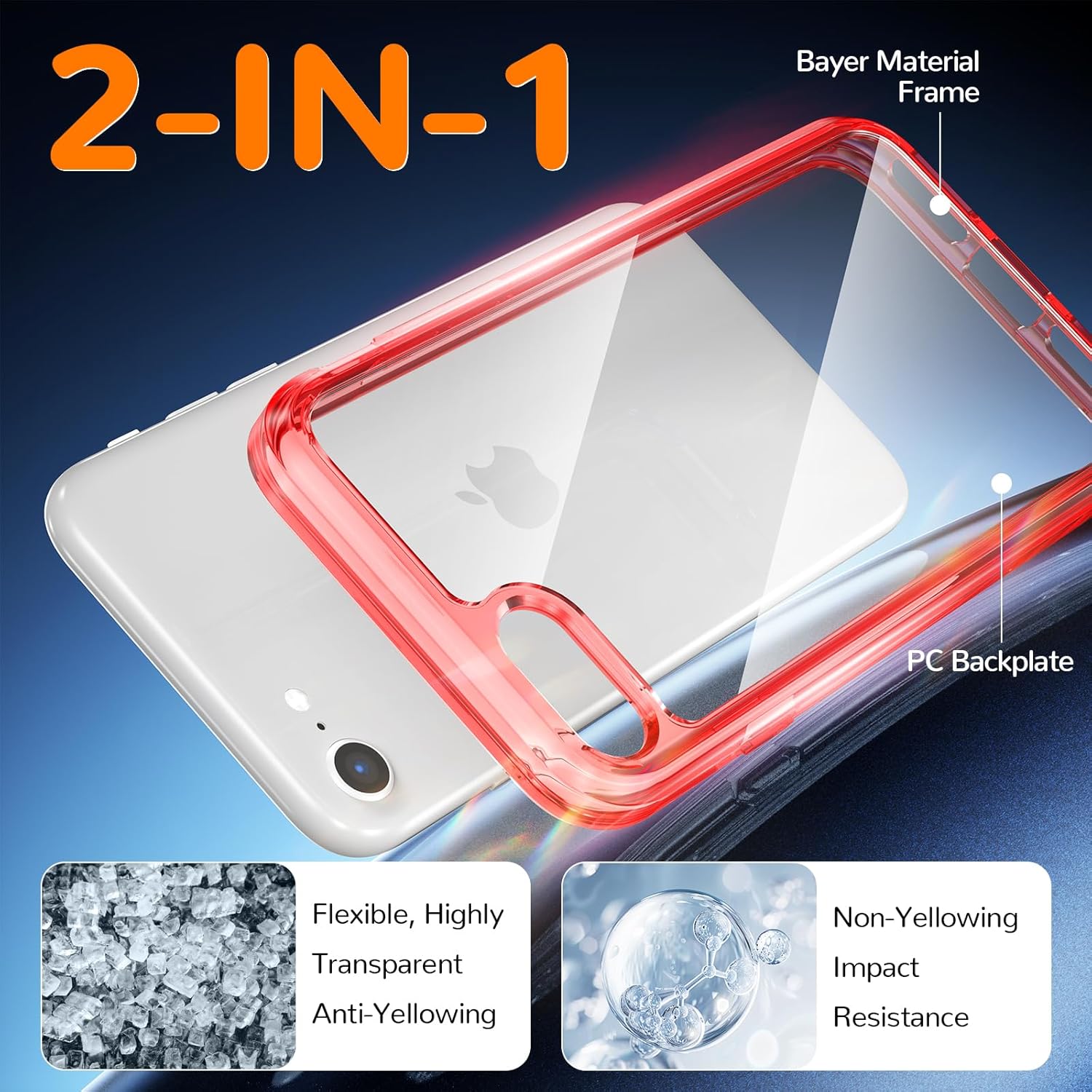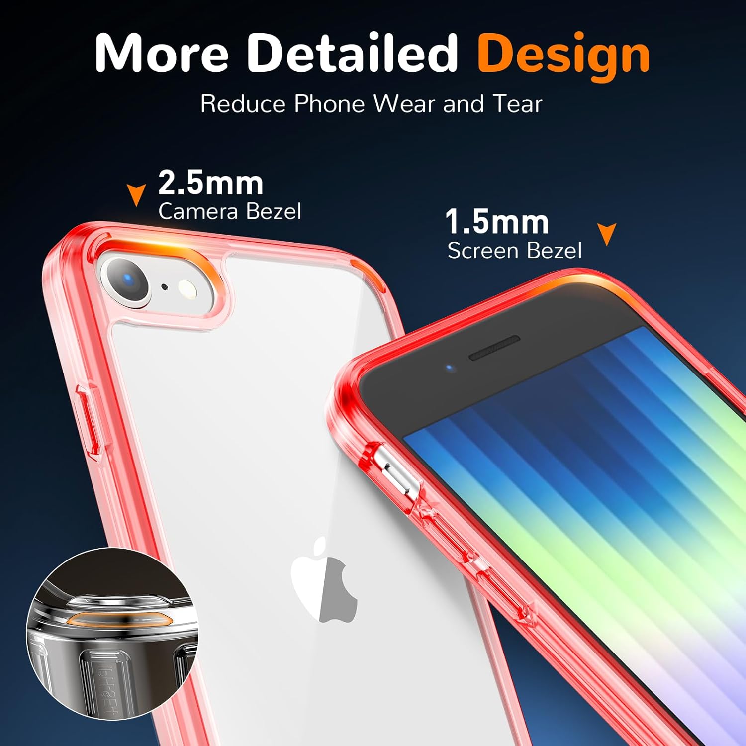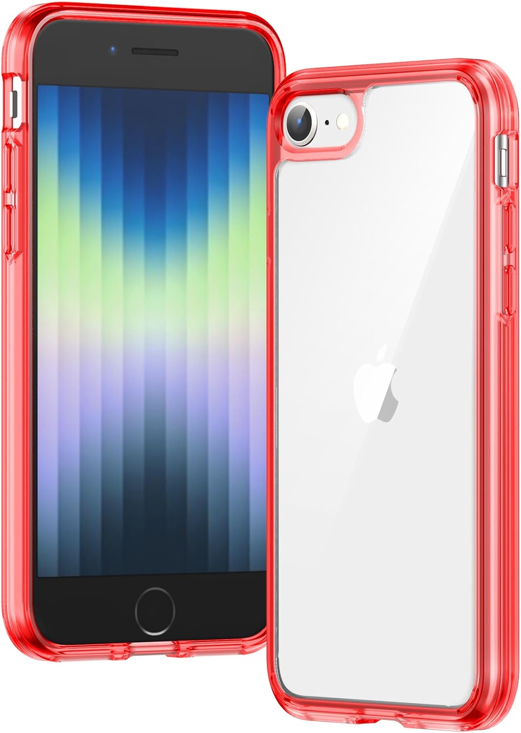Кейс за iPhone SE 2020/2022 iPhone 7/8, Премиум прозрачен калъф за мобилен телефон, Мек TPU прозрачен, устойчив на надраскване, удароустойчив защитен калъф (червен)