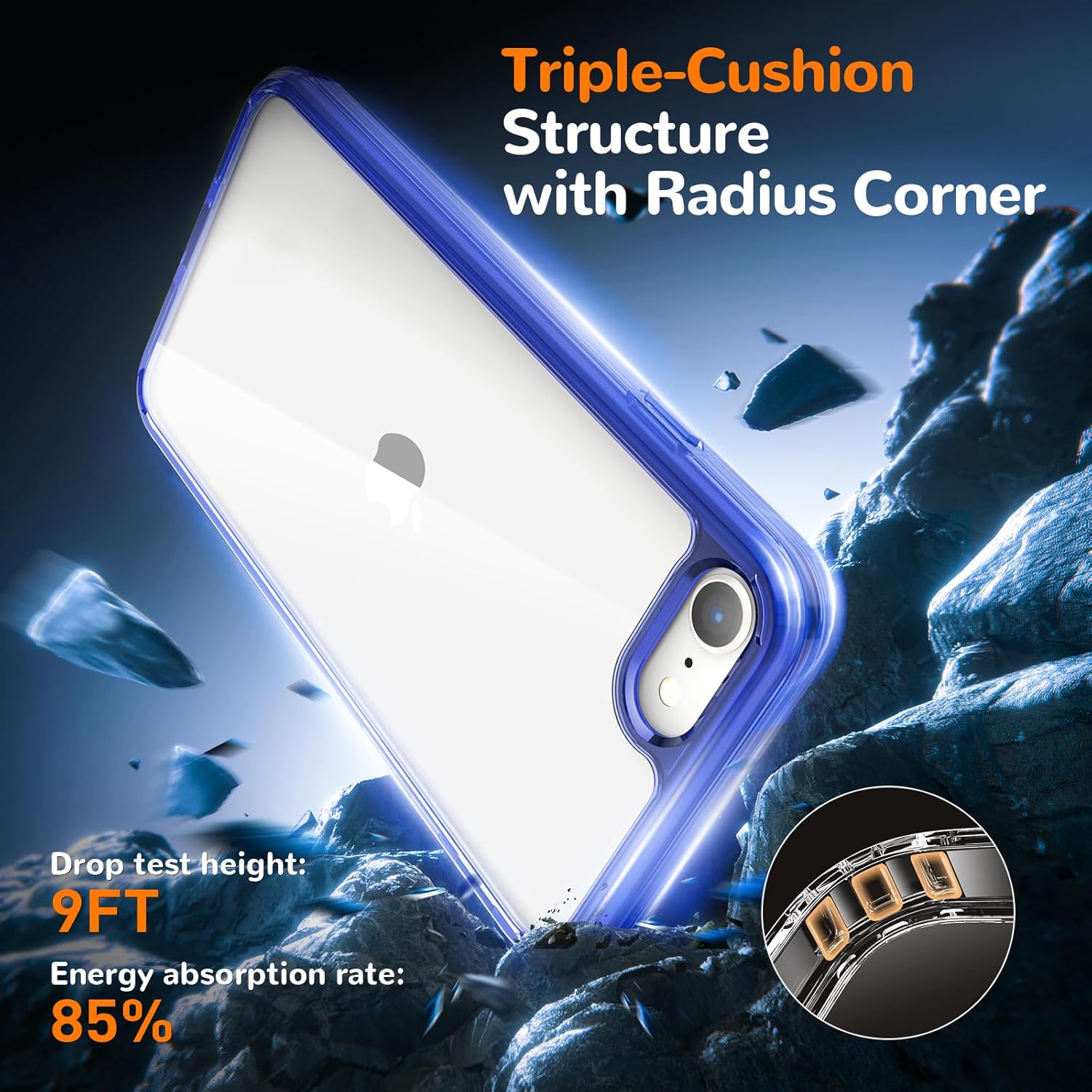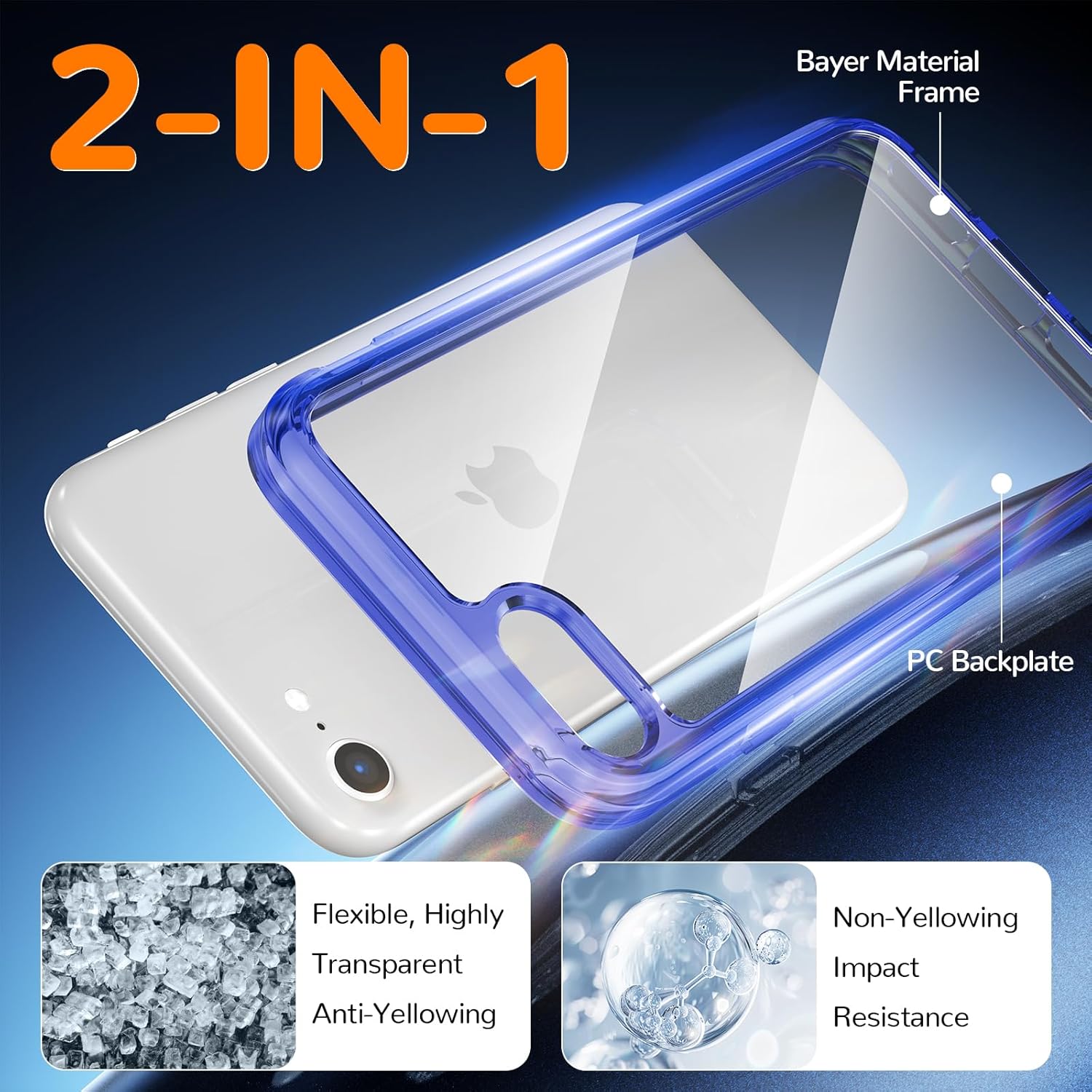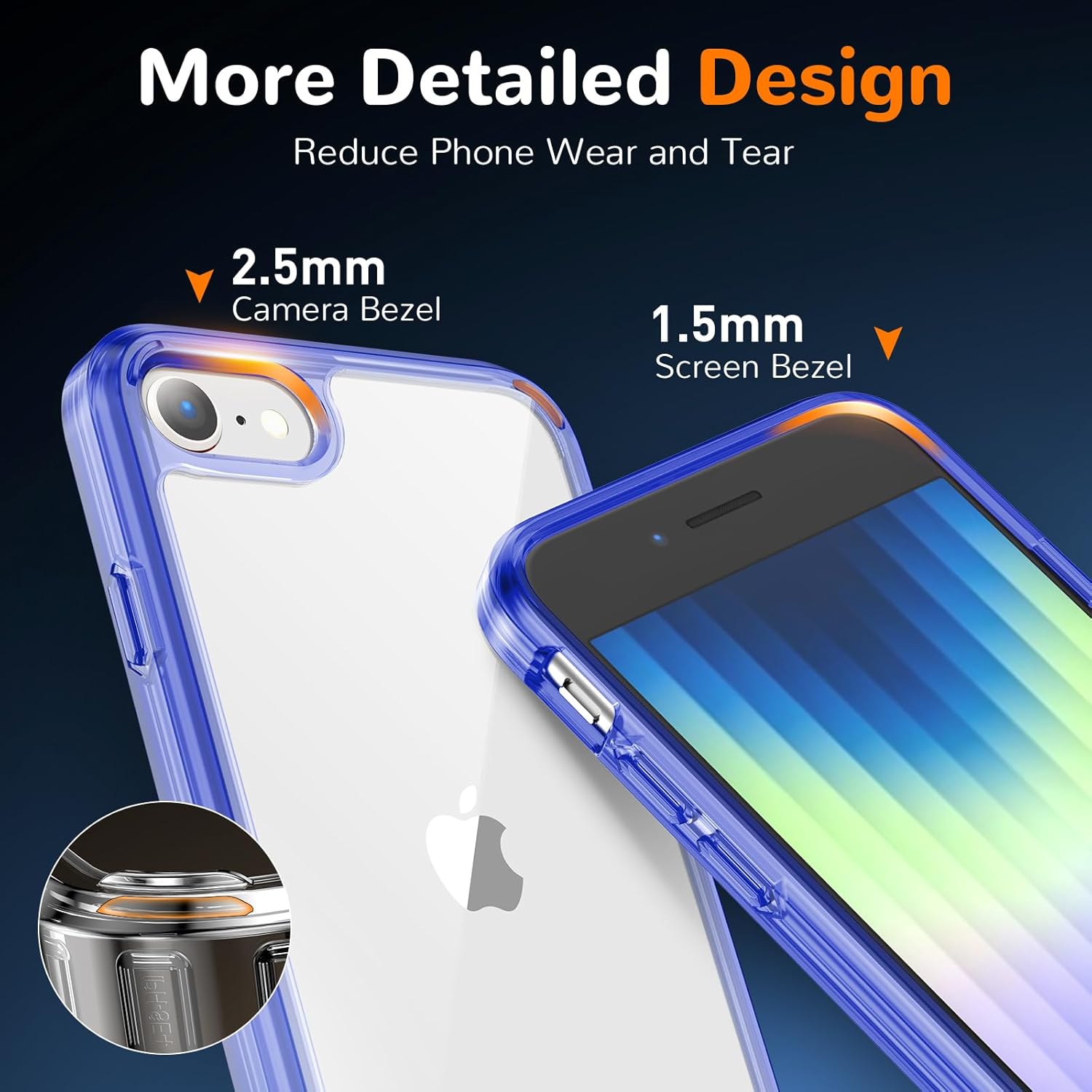 Кейс за iPhone SE 2020/2022, iPhone 7/8, Прозрачен калъф за мобилен телефон с анти-пожълтяване, Удароустойчив защитен калъф, Премиум устойчив на надраскване калъф за iPhone SE 2020/2022, iPhone 7/8 - Син
