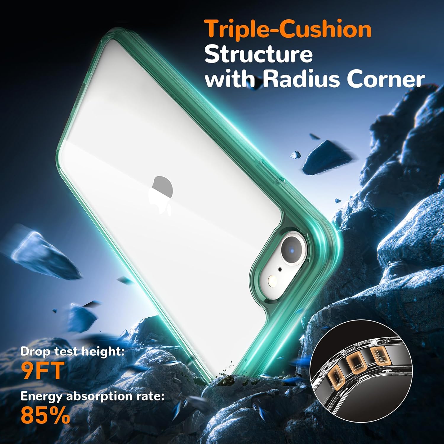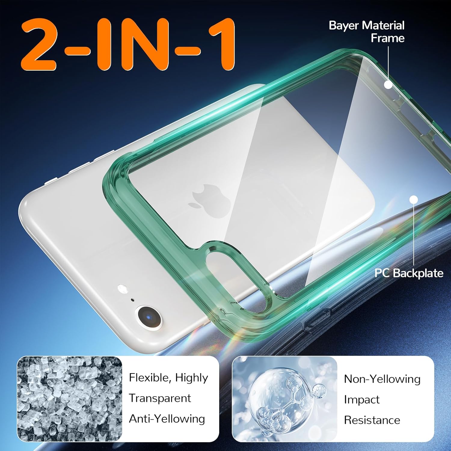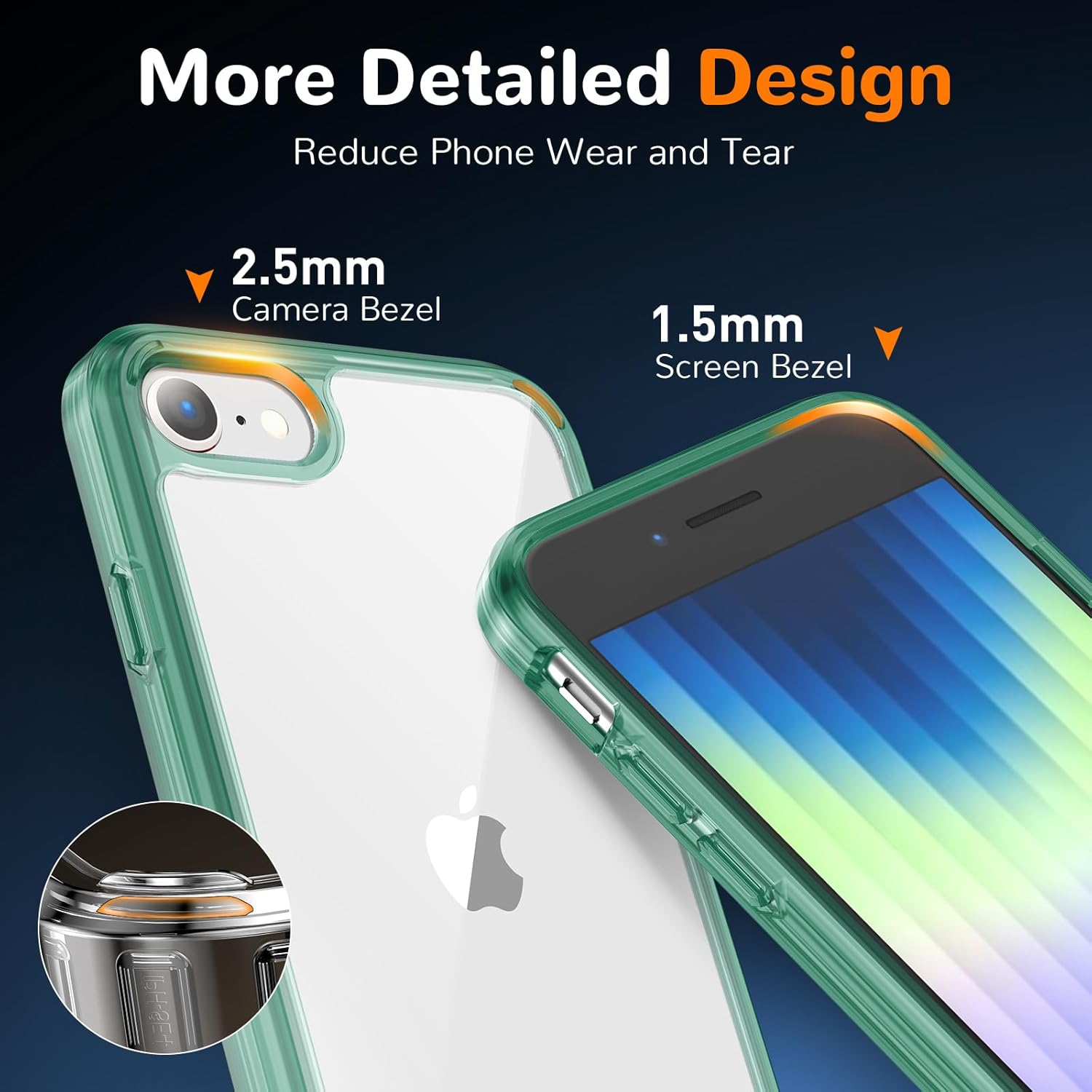 Кейс за iPhone SE 2020/2022, iPhone 7/8, Прозрачен калъф за мобилен телефон с анти-пожълтяване, Удароустойчив защитен калъф, Премиум устойчив на надраскване калъф за iPhone SE 2020/2022, iPhone 7/8 - Зелен