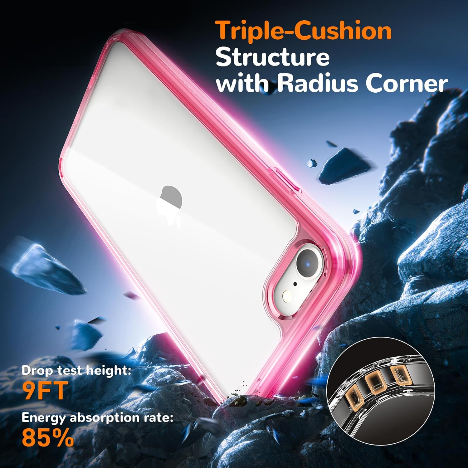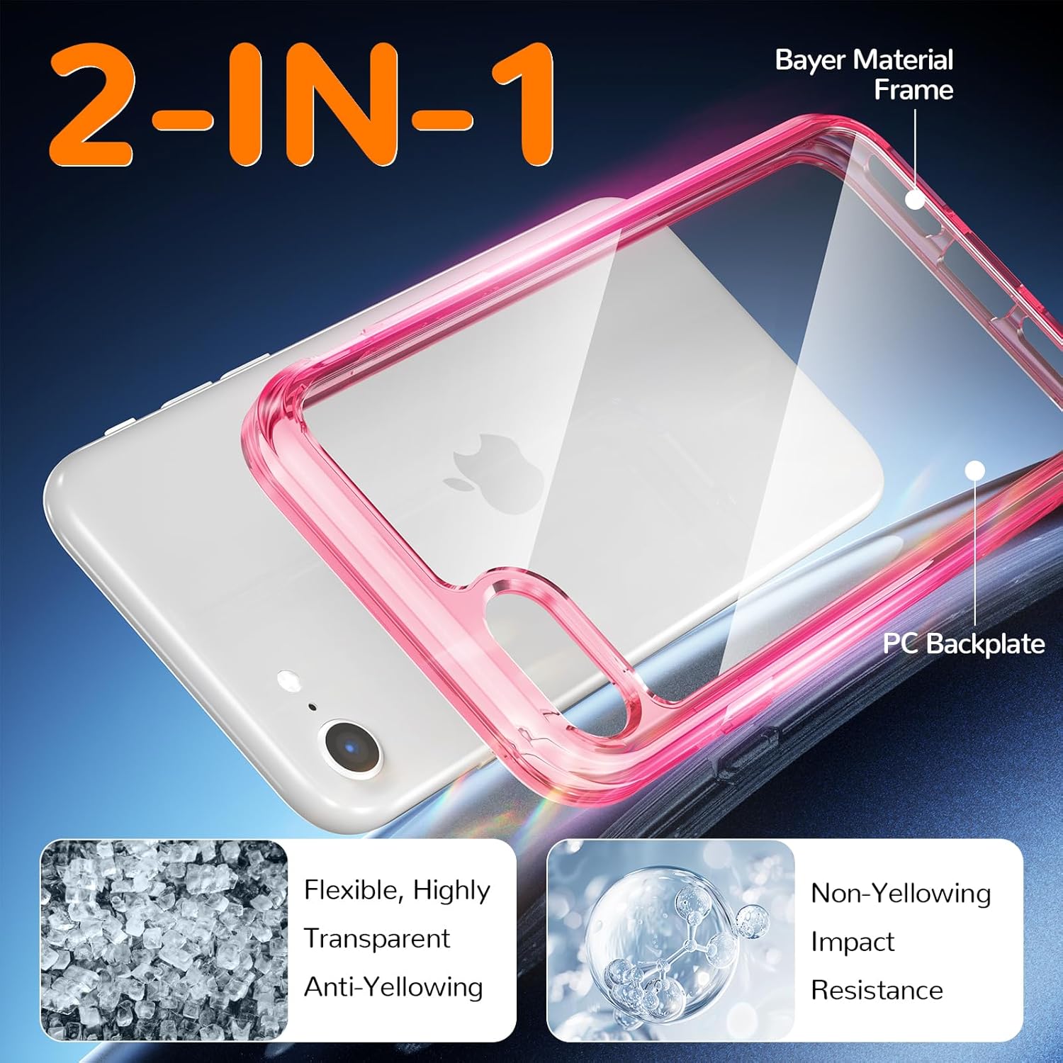 Кейс за iPhone SE 2020/2022, iPhone 7/8, Прозрачен калъф за мобилен телефон с защита от пожълтяване, Удароустойчив защитен калъф, Висококачествен калъф, устойчив на надраскване, за iPhone SE 2020/2022, iPhone 7/8