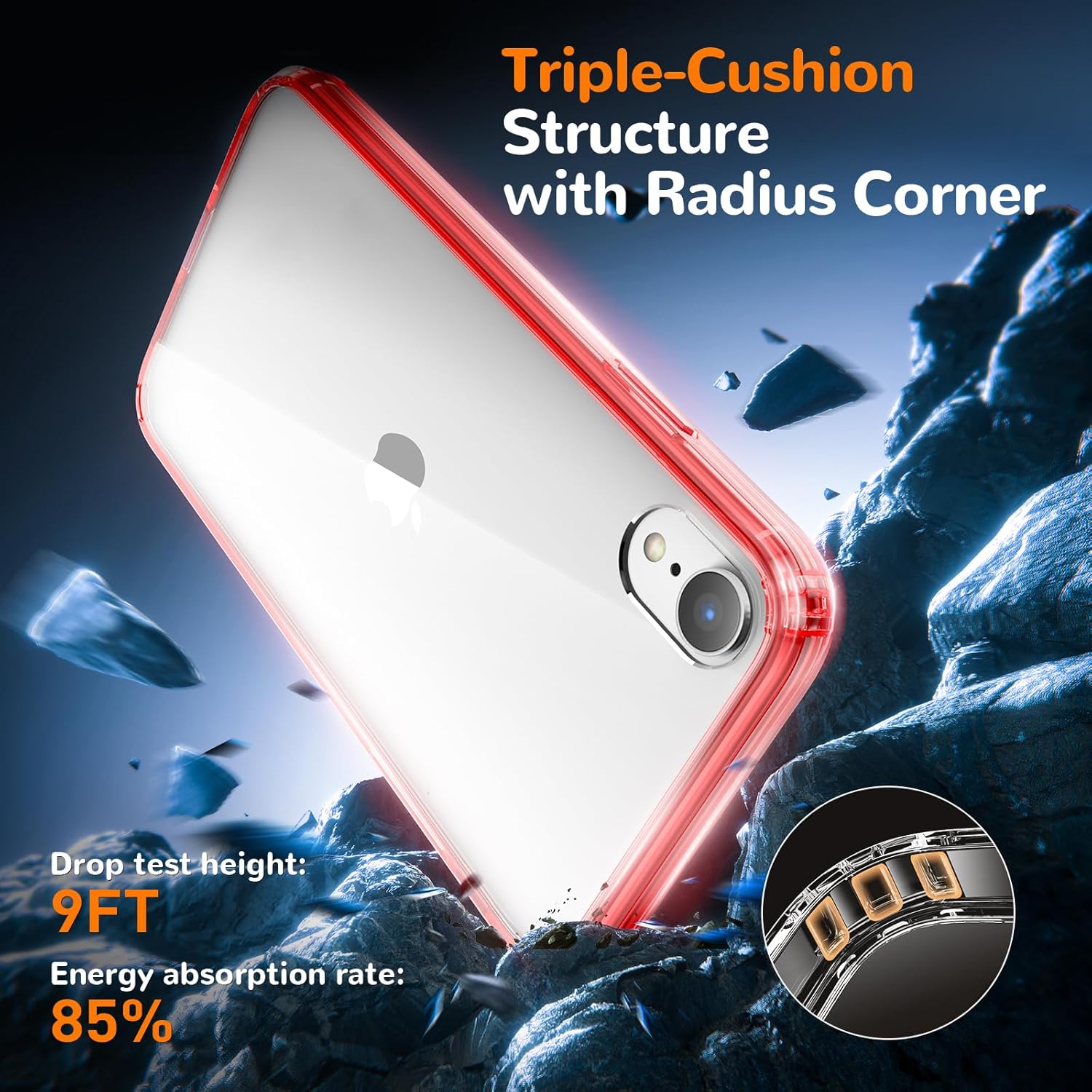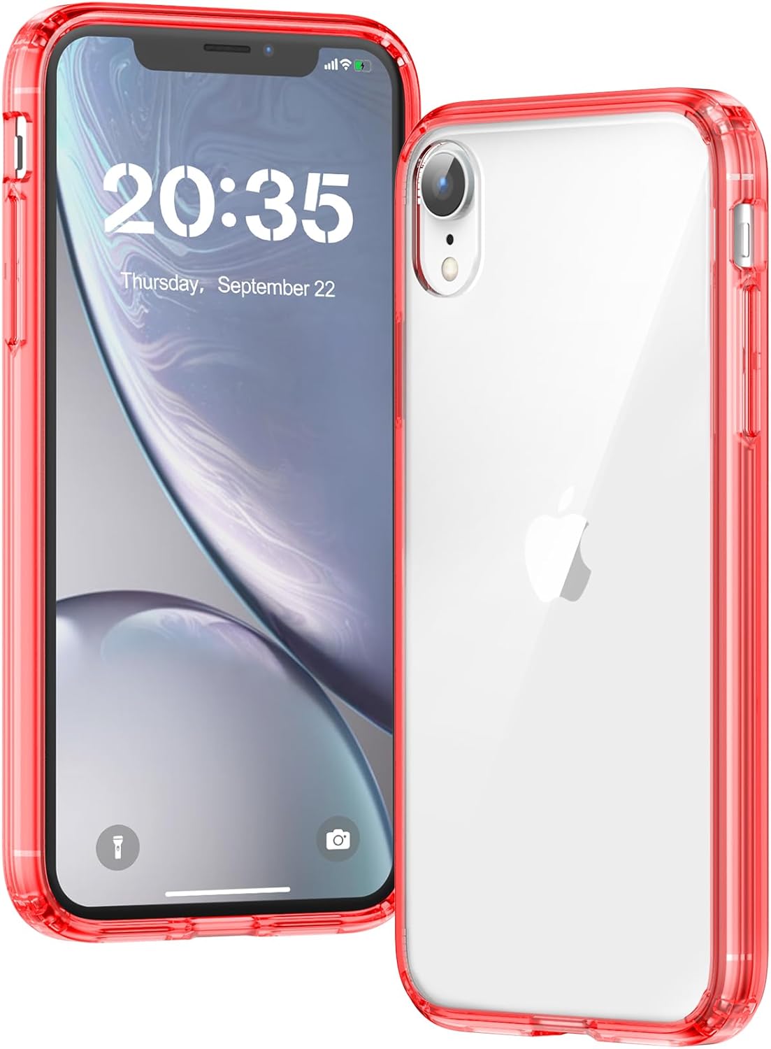 Кейс за iPhone XR, първокласен прозрачен калъф за мобилен телефон, мек TPU прозрачен, устойчив на надраскване, удароустойчив защитен калъф (червен)