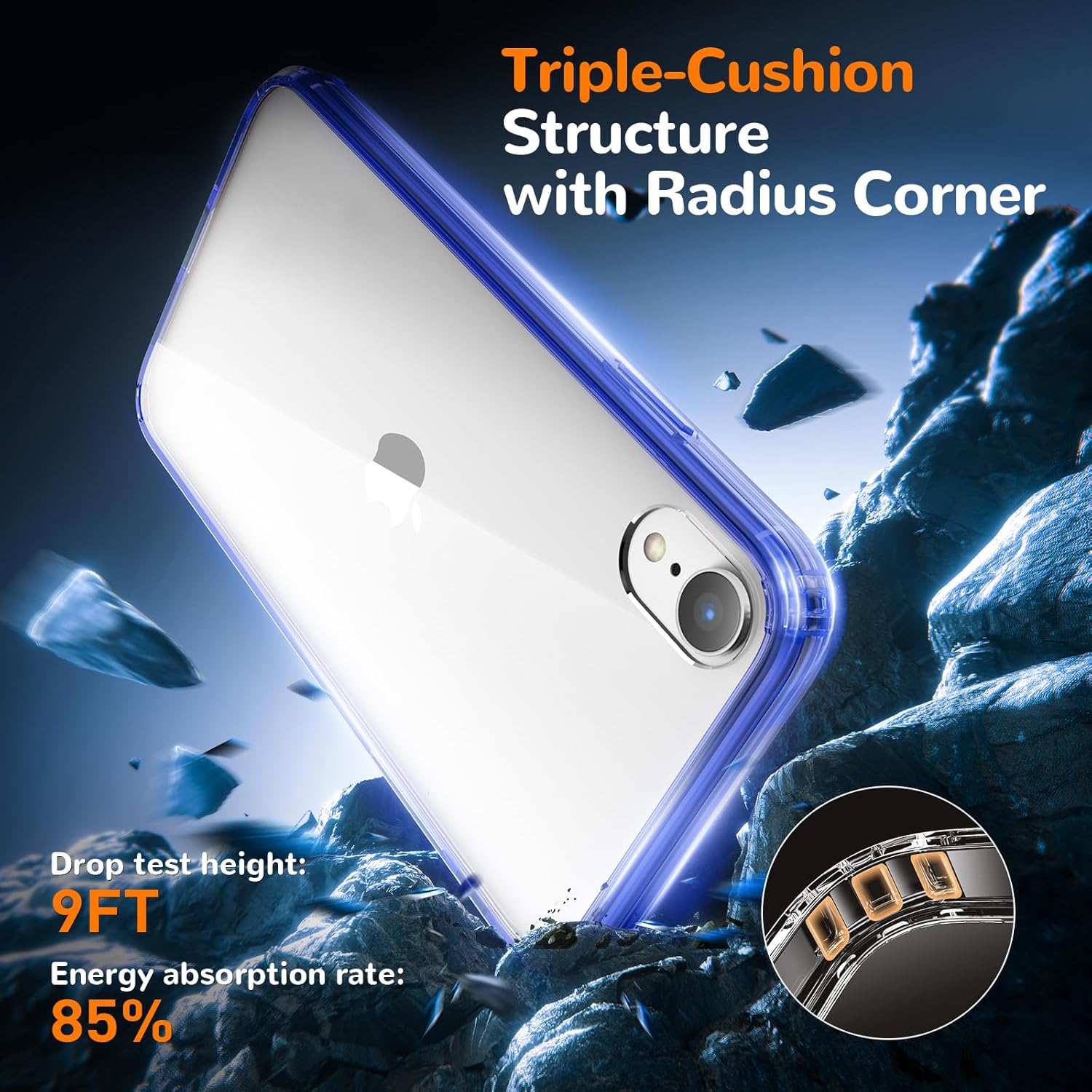 Кейс за iPhone XR, първокласен прозрачен калъф за мобилен телефон, мек TPU прозрачен, устойчив на надраскване, удароустойчив защитен калъф (син)