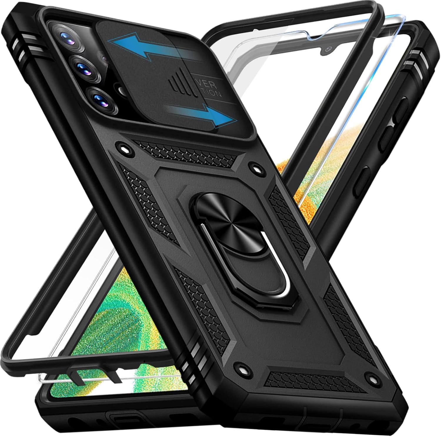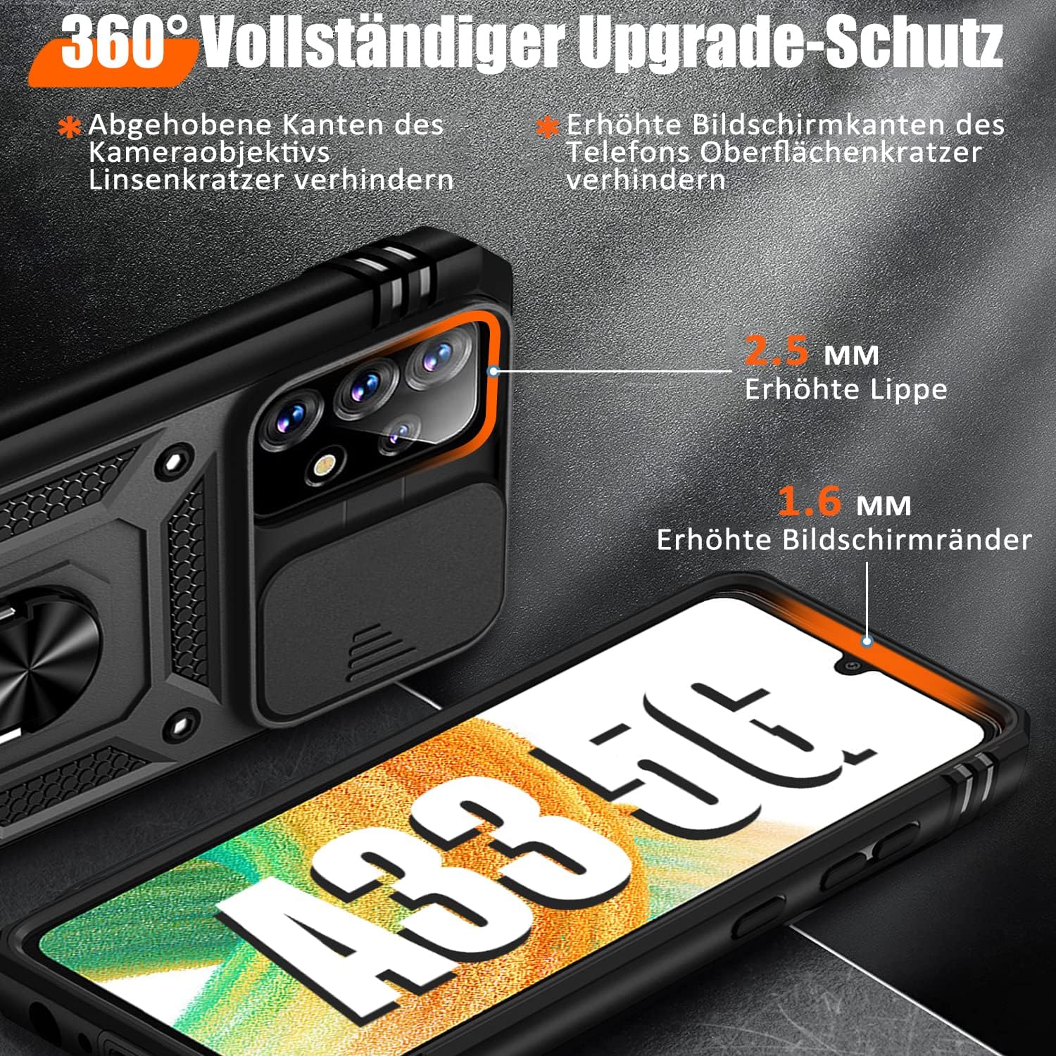 Кейс за мобилен телефон за Samsung Galaxy A33 5G с протектор за екрана, защитен калъф за Galaxy A33 5G със защита на камерата, въртящ се на 360° метален пръстен, стойка, удароустойчива броня, калъф за A33 5G 6.4 инча