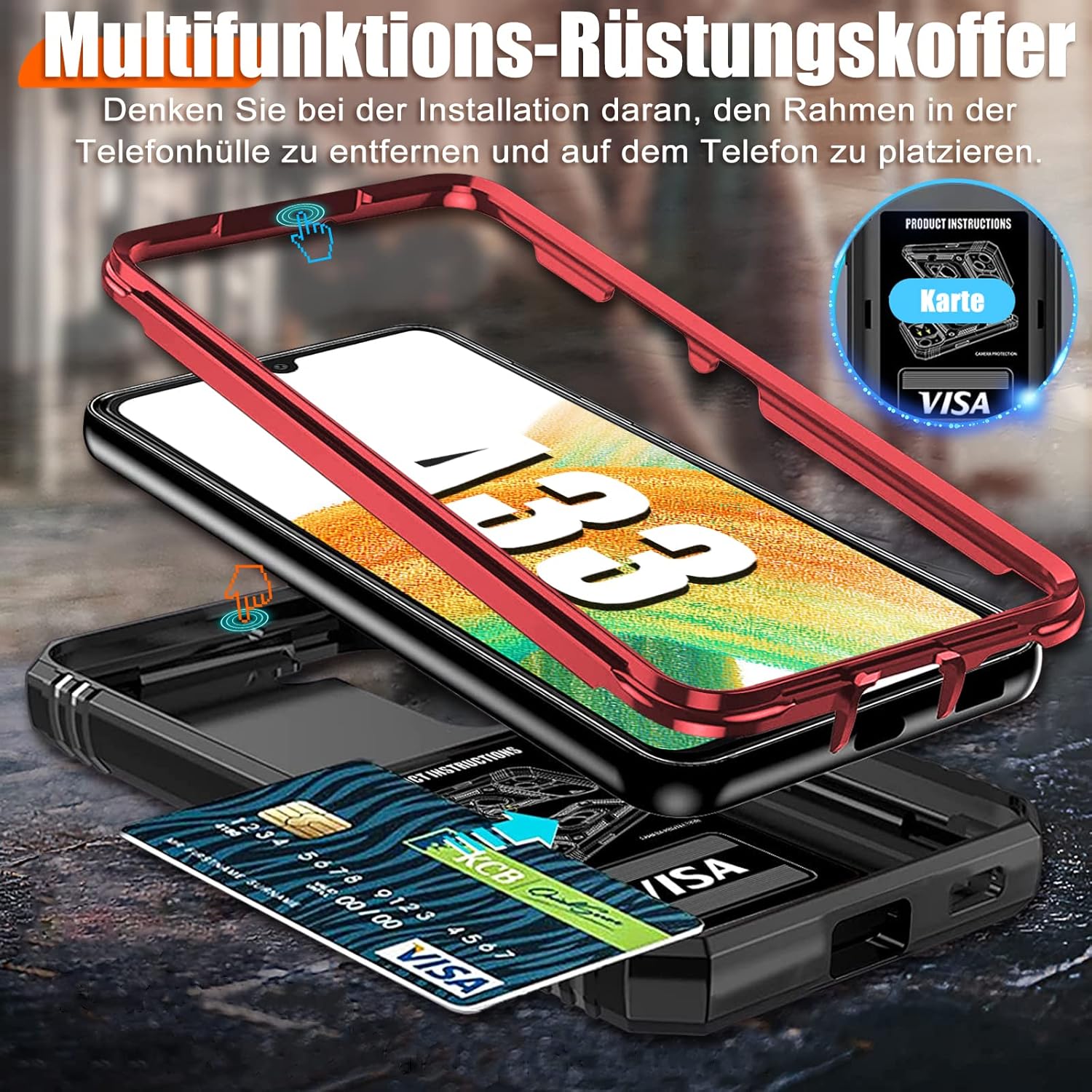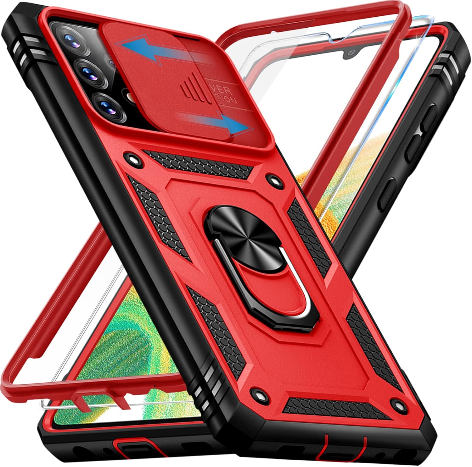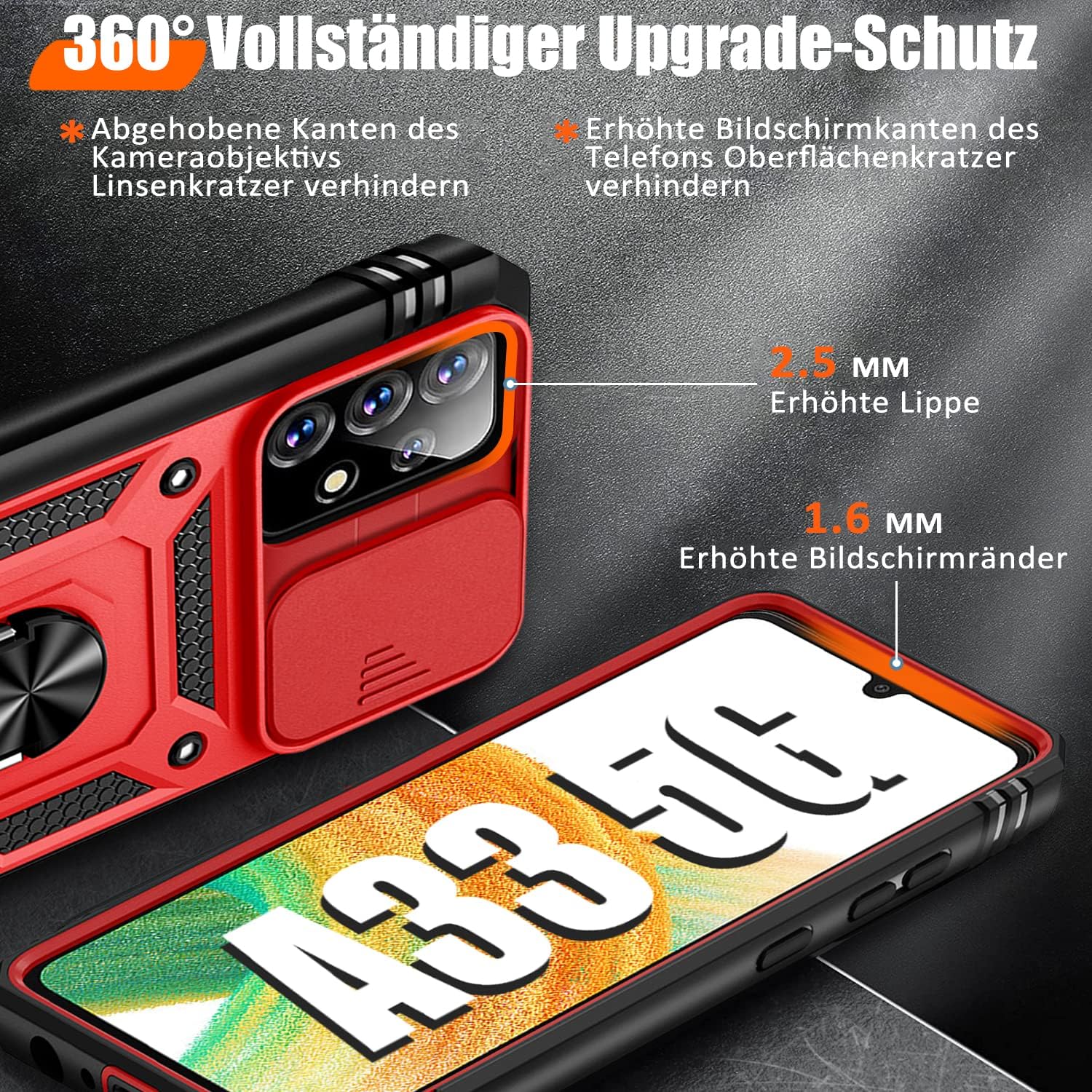 Кейс за мобилен телефон за Samsung Galaxy A33 5G с протектор за екрана, защитен калъф за Galaxy A33 5G със защита на камерата, въртящ се на 360° метален пръстен, стойка, удароустойчива броня, калъф за A33 5G 6.4 инча