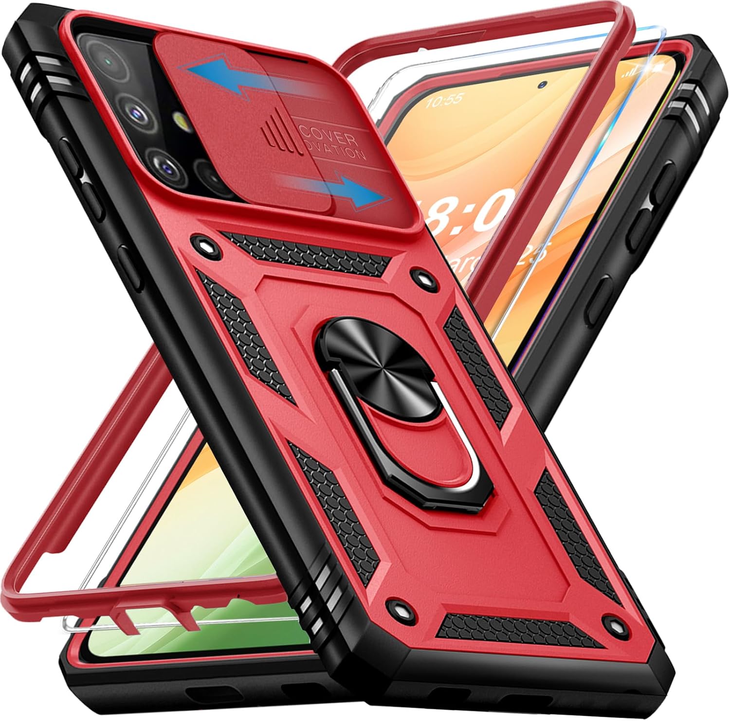 • Защита от военно ниво: калъфът за Galaxy A53 5G използва уникален TPU с ръбове в комбинация с вградени PC 2-в-1 затваряния, за да предпази телефона ви от падания, драскотини и удари. Защитата от военно ниво с технология с въздушна възглавница осигурява цялостна защита за вашето оборудване. Дизайн с плъзгач на обектива: Повдигната рамка за защита на камерата. Капачката покрива обектива и го предпазва от прах и драскотини.