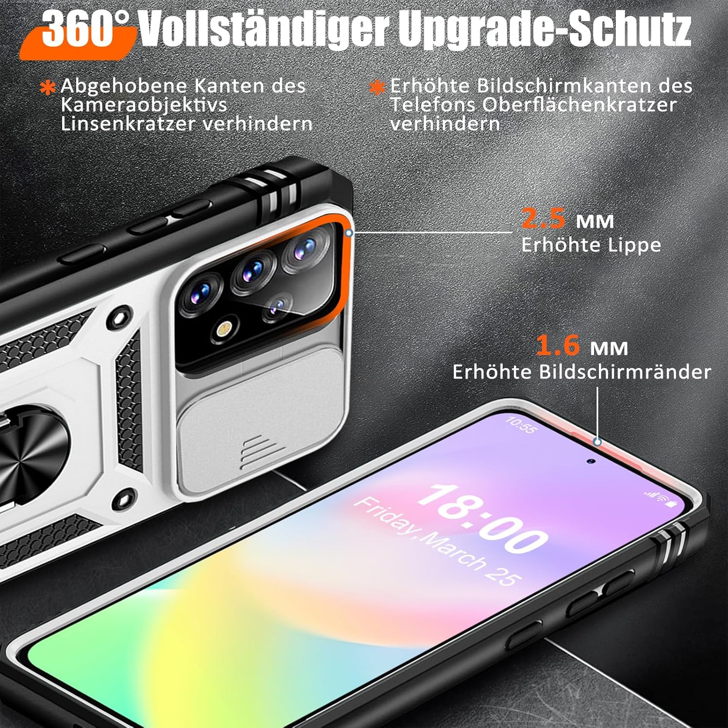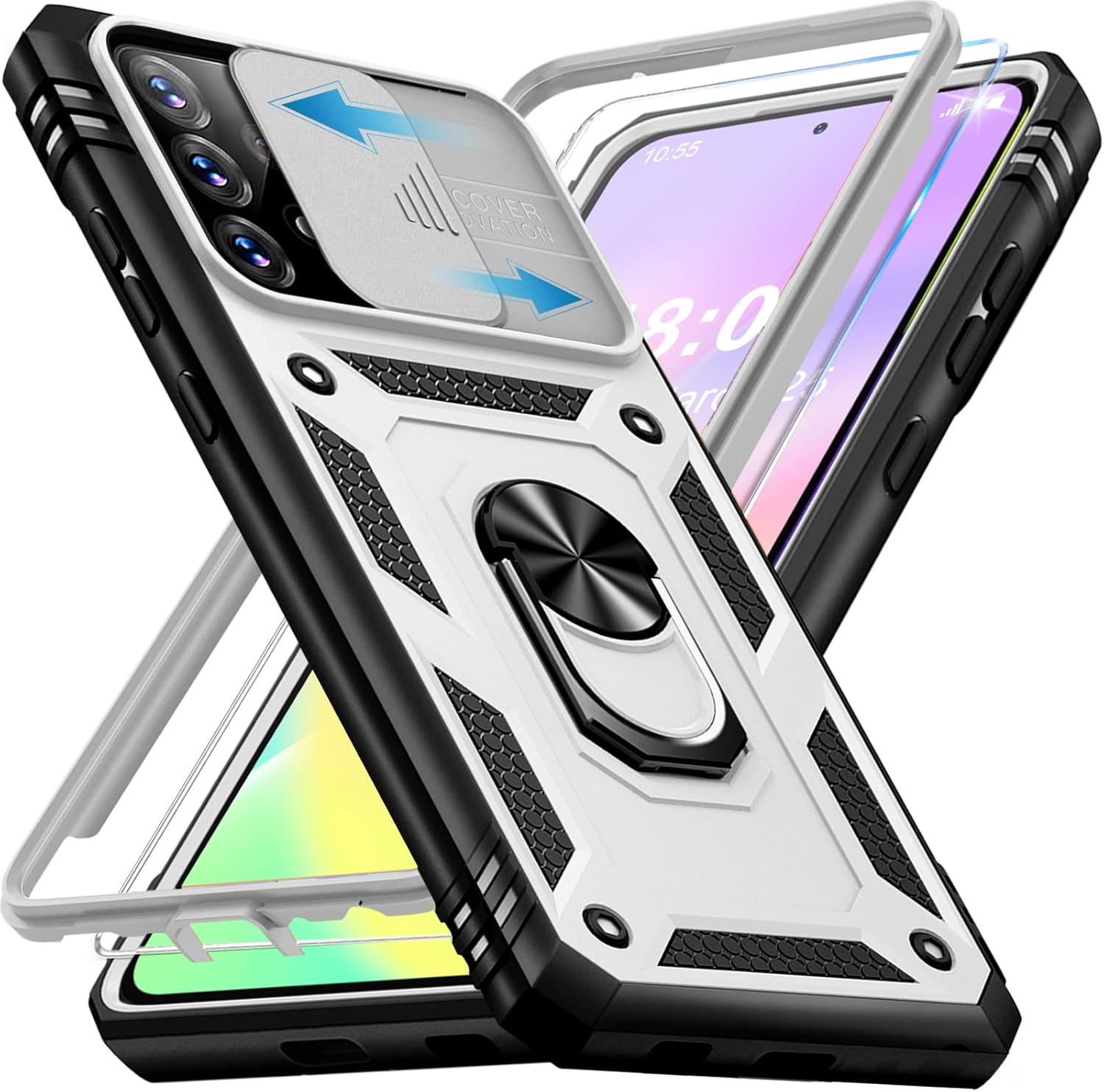Кейс за мобилен телефон за Samsung Galaxy A53 5G с протектор за екрана, защитен калъф за Galaxy A53 5G със защита на камерата, въртящ се на 360° метален пръстен, стойка, удароустойчива броня, калъф за A53 5G 6.5 инча