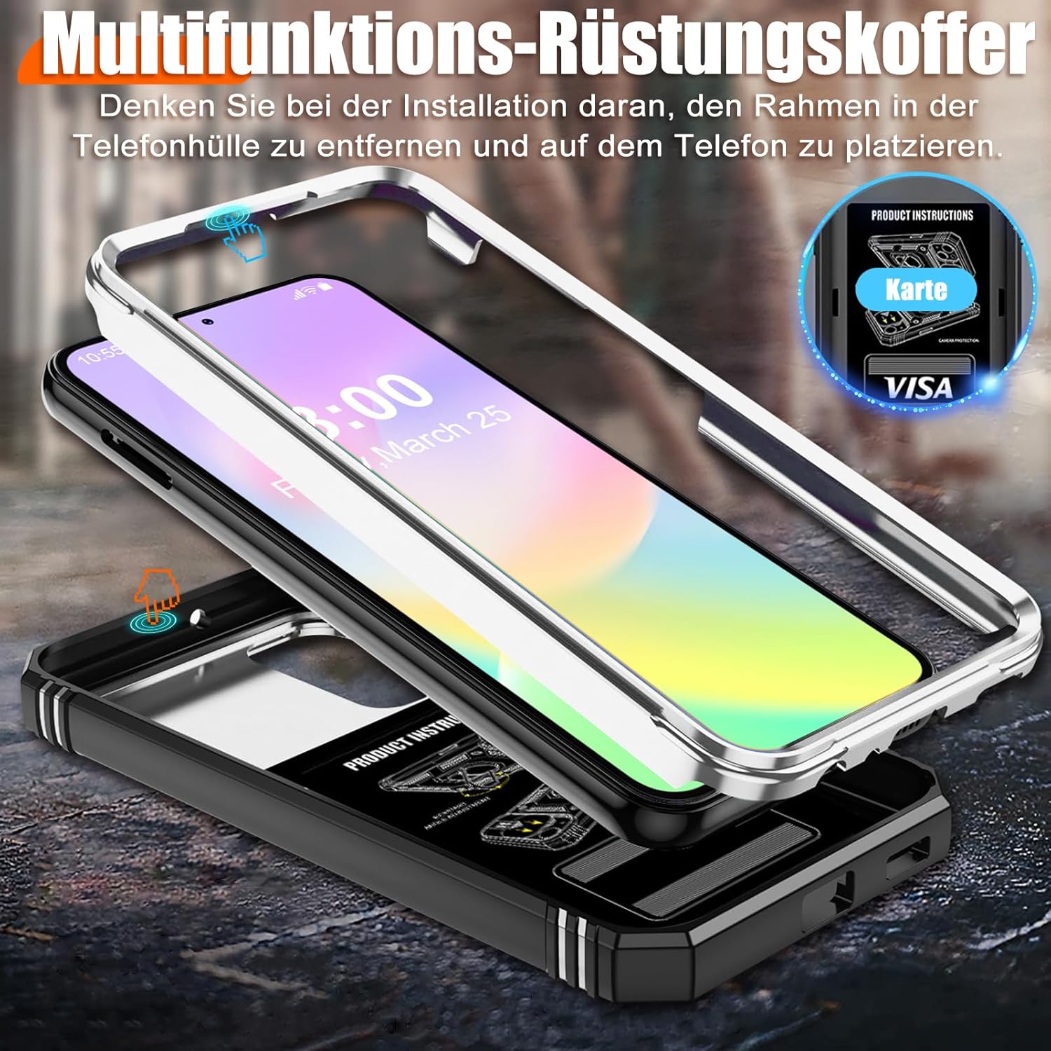 • Защита от военно ниво: калъфът за Galaxy A53 5G използва уникален TPU с ръбове в комбинация с вградени PC 2-в-1 затваряния, за да предпази телефона ви от падания, драскотини и удари. Защитата от военно ниво с технология с въздушна възглавница осигурява цялостна защита за вашето оборудване. Дизайн с плъзгач на обектива: Повдигната рамка за защита на камерата. Капачката покрива обектива и го предпазва от прах и драскотини.