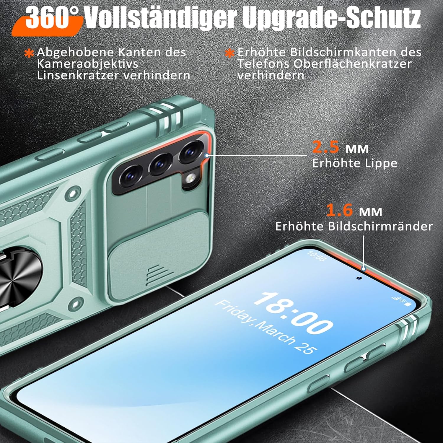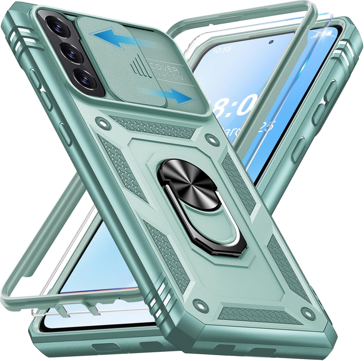 Кейс за мобилен телефон за Samsung Galaxy S21 FE 5G с протектор за екрана, Защитен калъф за Galaxy S21 FE със защита на камерата, въртящ се на 360° метален пръстен, удароустойчив, брониран калъф за S21 FE 6.4 инча