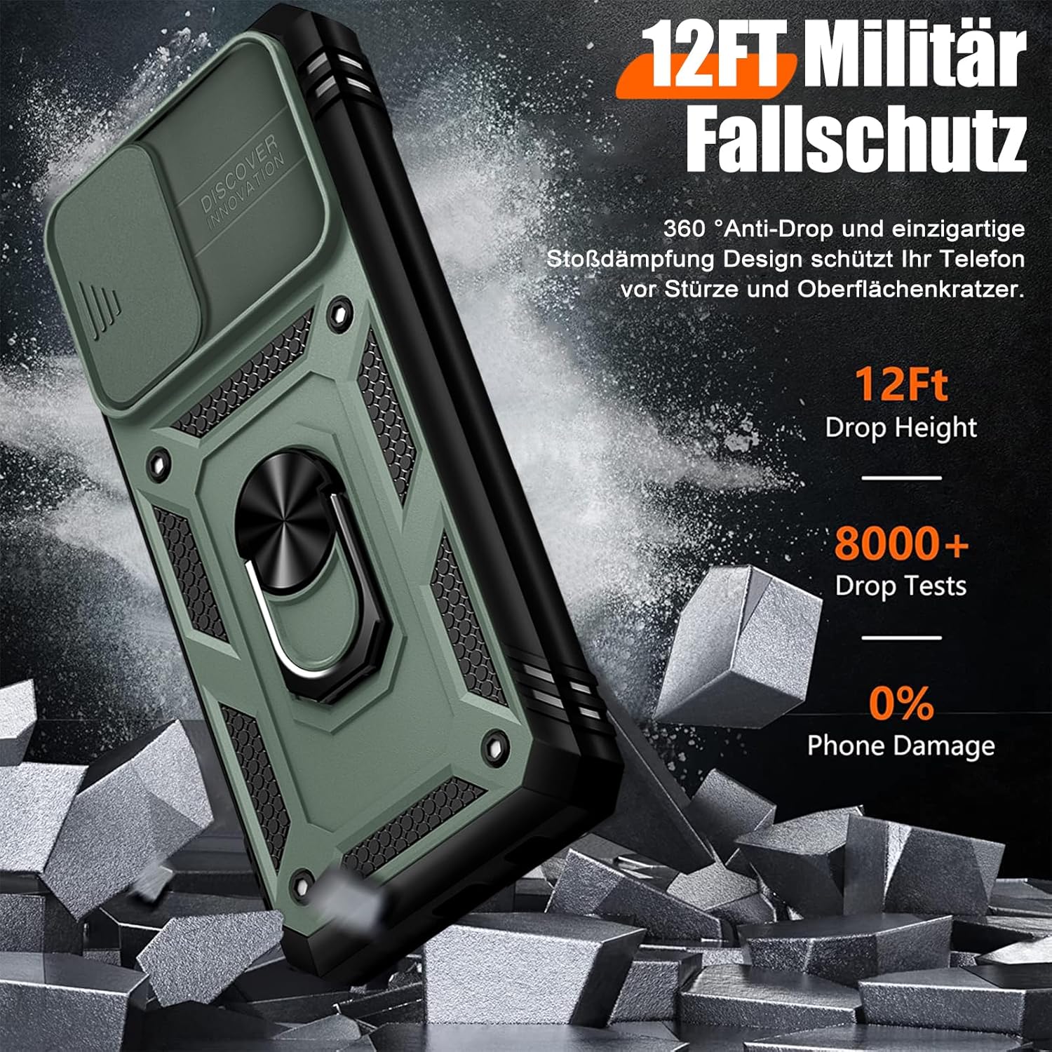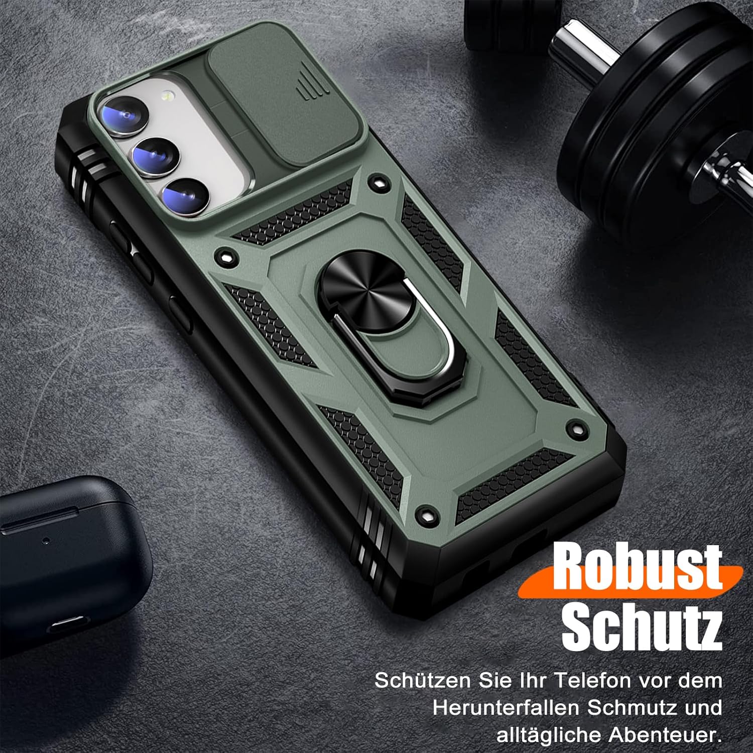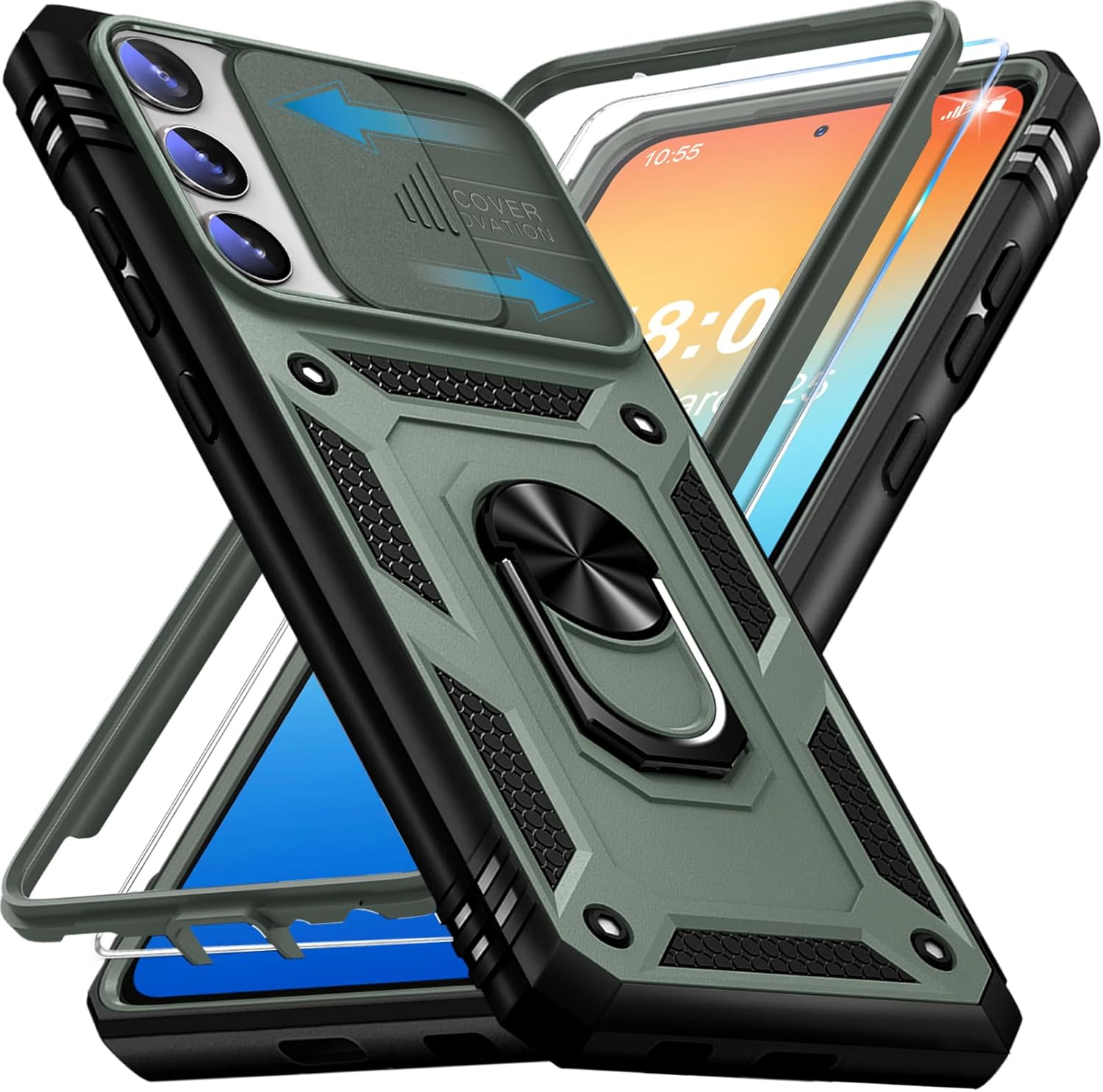 Кейс за мобилен телефон за Samsung Galaxy S23 5G със закалено стъклено протекторно покритие за екрана, защитен калъф за Galaxy S23 5G със защита на камерата, въртяща се на 360° метална пръстеновидна стойка, удароустойчив броня S23 5G