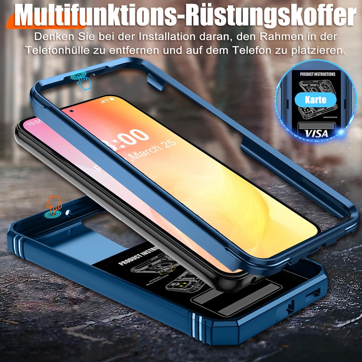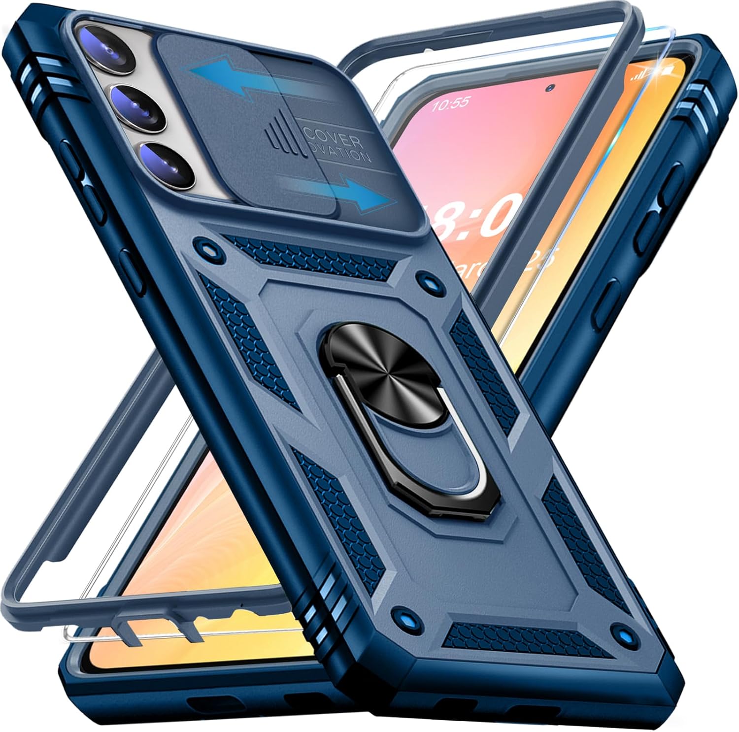 Кейс за мобилен телефон за Samsung Galaxy S23 Plus 5G с протектор за екрана, Защитен калъф за Galaxy S23 Plus 5G със защита на камерата, въртящ се на 360° метален пръстен, стойка, удароустойчива броня S23 Plus 6.6