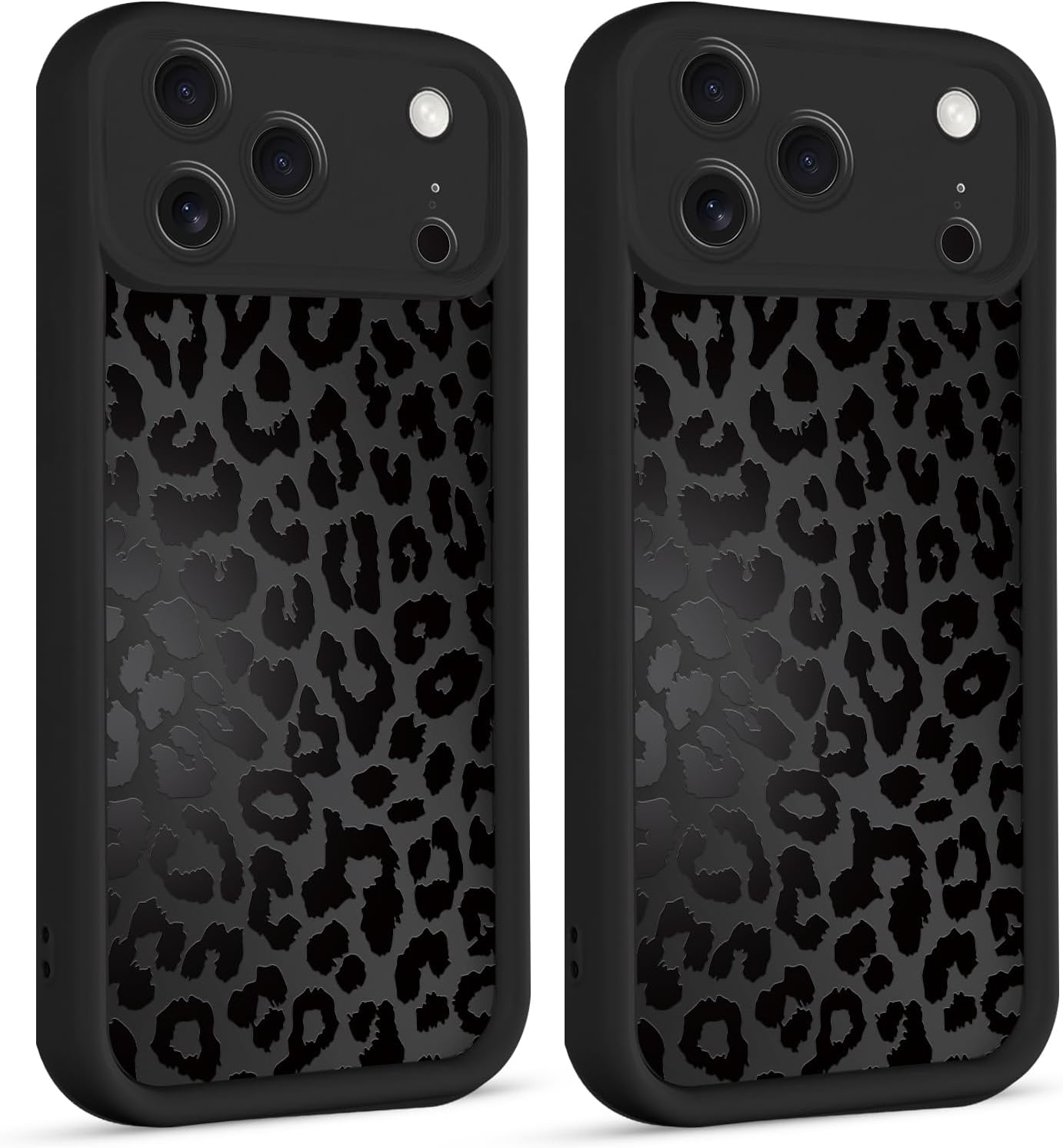 Кейс за мобилен телефон ZhuoFan за iPhone Pro Max 6.9 инча, естетичен леопардов дизайн, сладък модел, черен матов, за момичета и жени, защитен калъф, мек силиконов, тънък TPU калъф, удароустойчив, защита на камерата