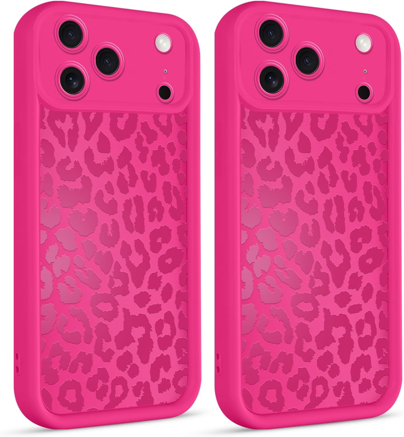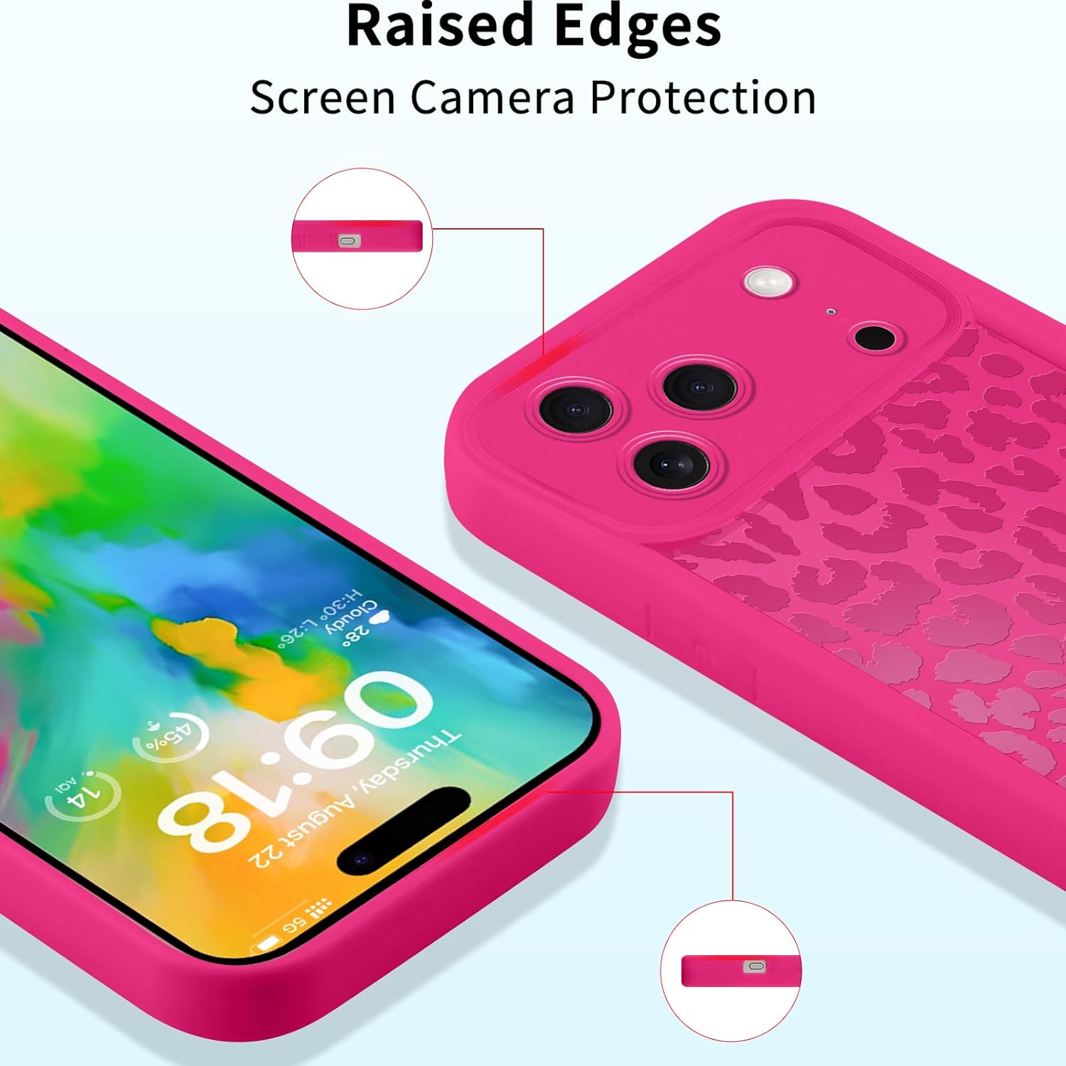 Кейс за мобилен телефон ZhuoFan за iPhone Pro Max 6.9 инча, естетичен леопардов дизайн, сладък модел, розовочервен, матов, за момичета и жени, защитен калъф, мек силиконов, тънък TPU калъф, удароустойчив, защита на камерата