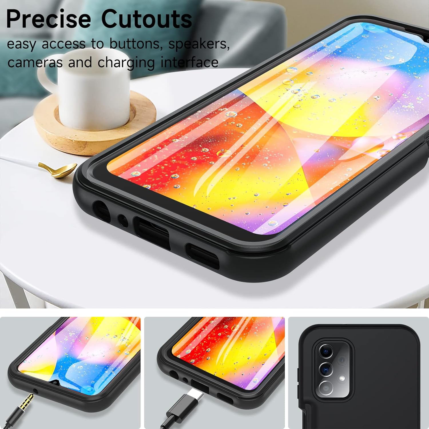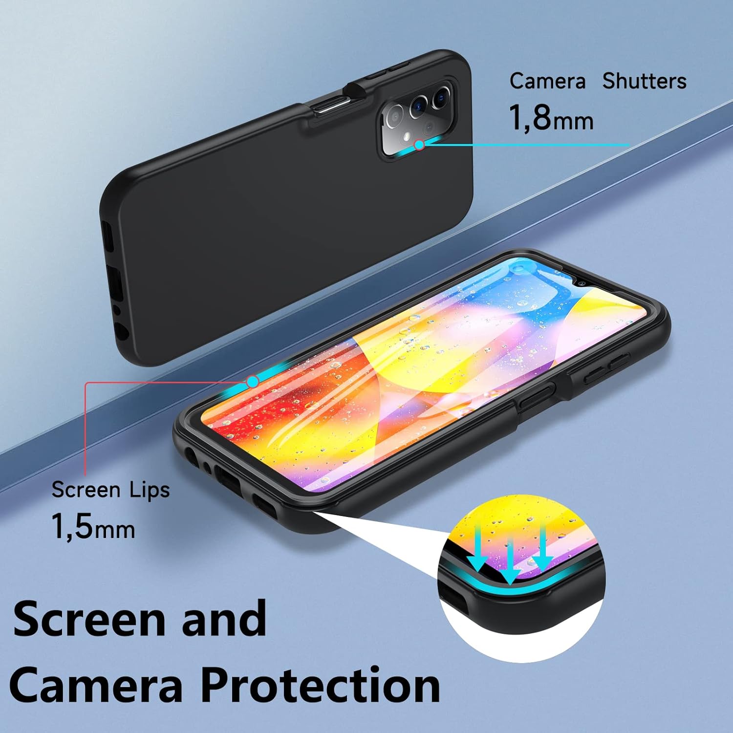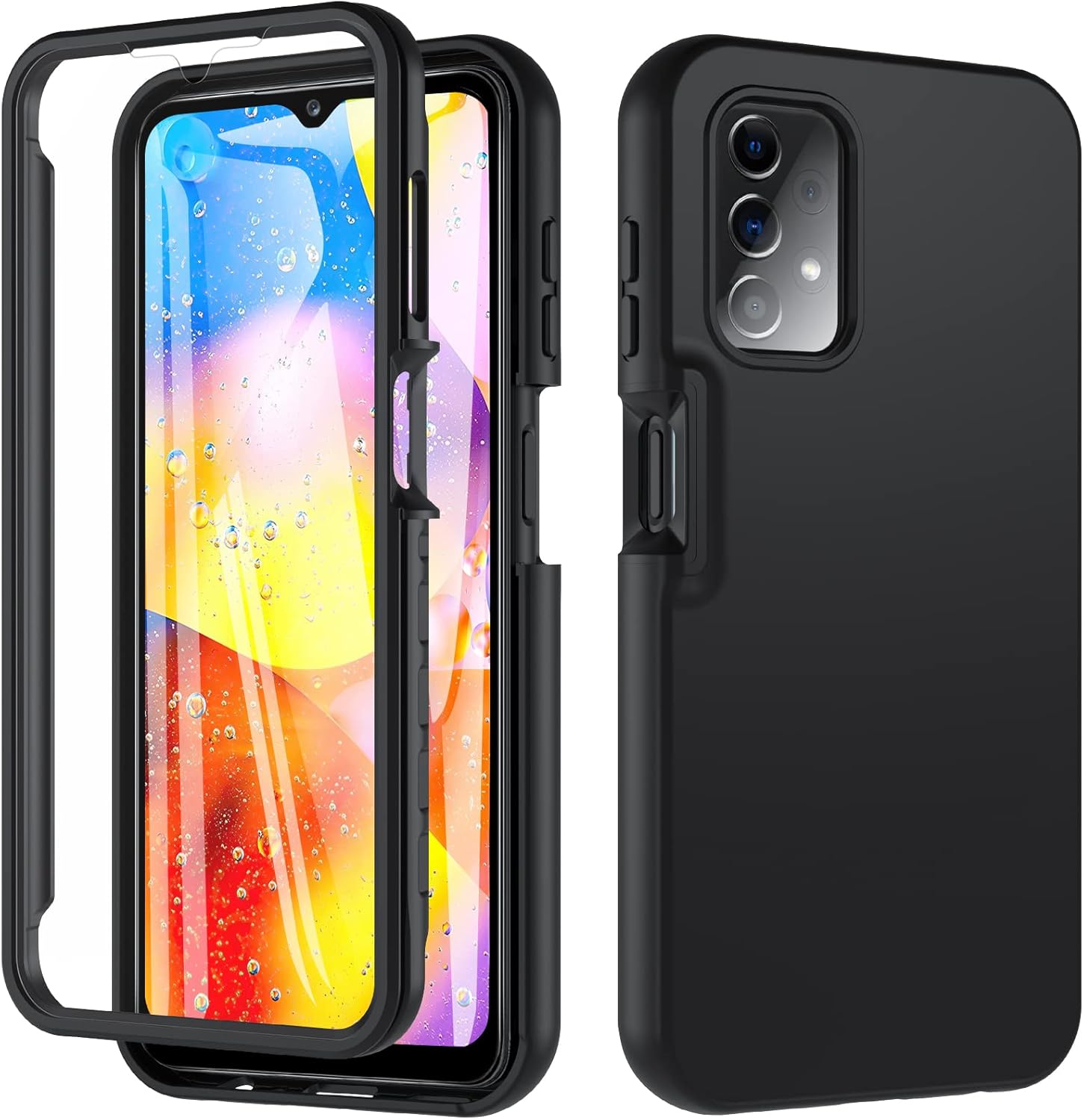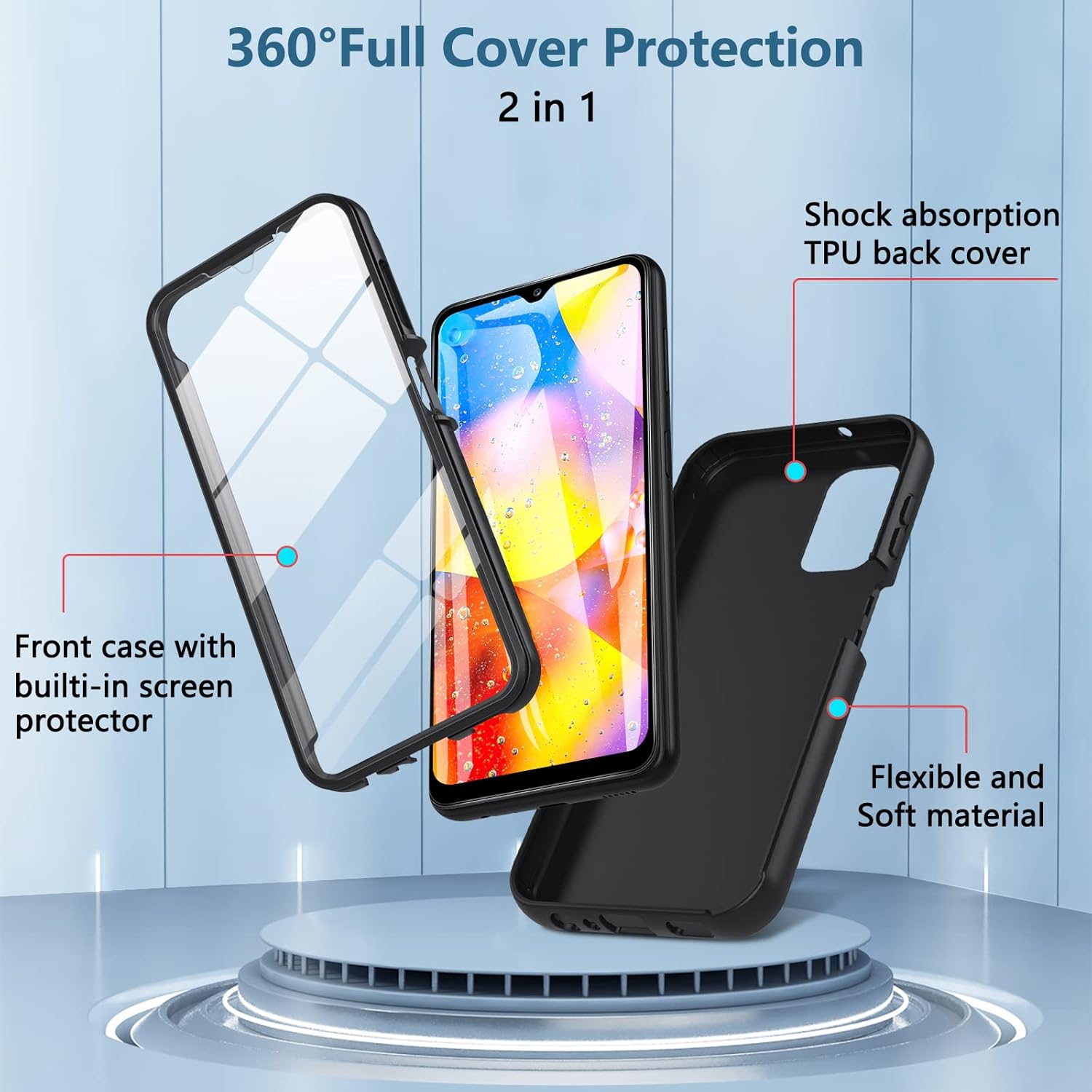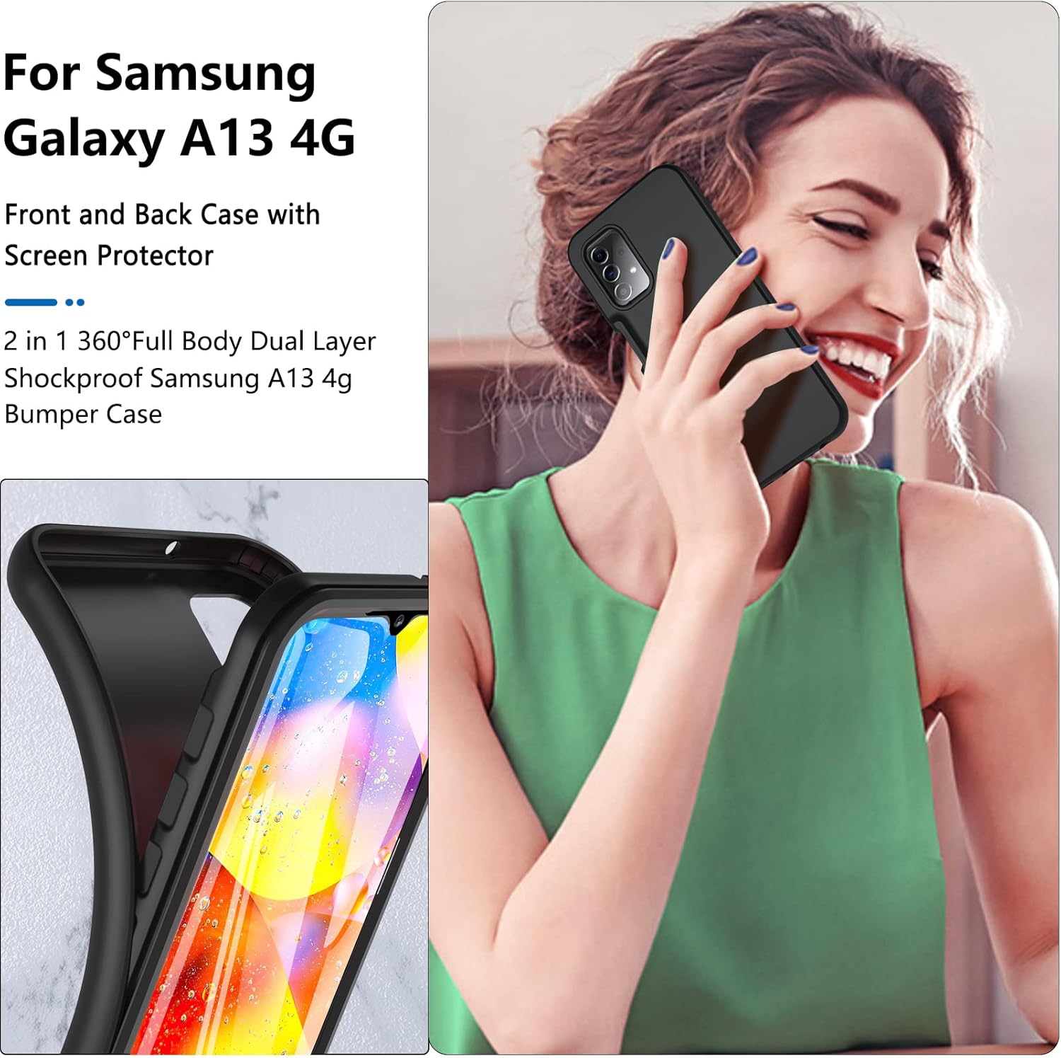 Кейс за Samsung Galaxy A13, 360-градусова всестранна защита, Здрав калъф с вграден протектор за екрана, Защитен калъф за Samsung A13 4G (Черен)