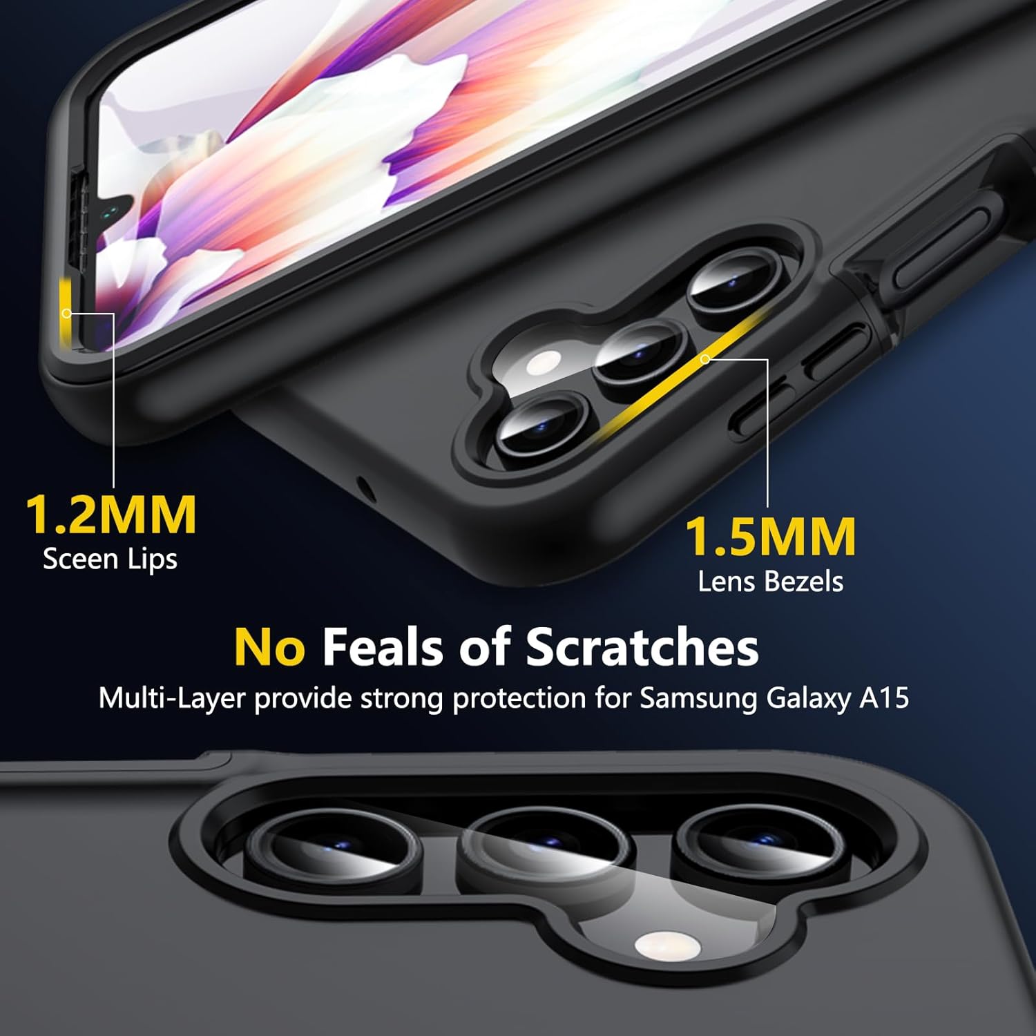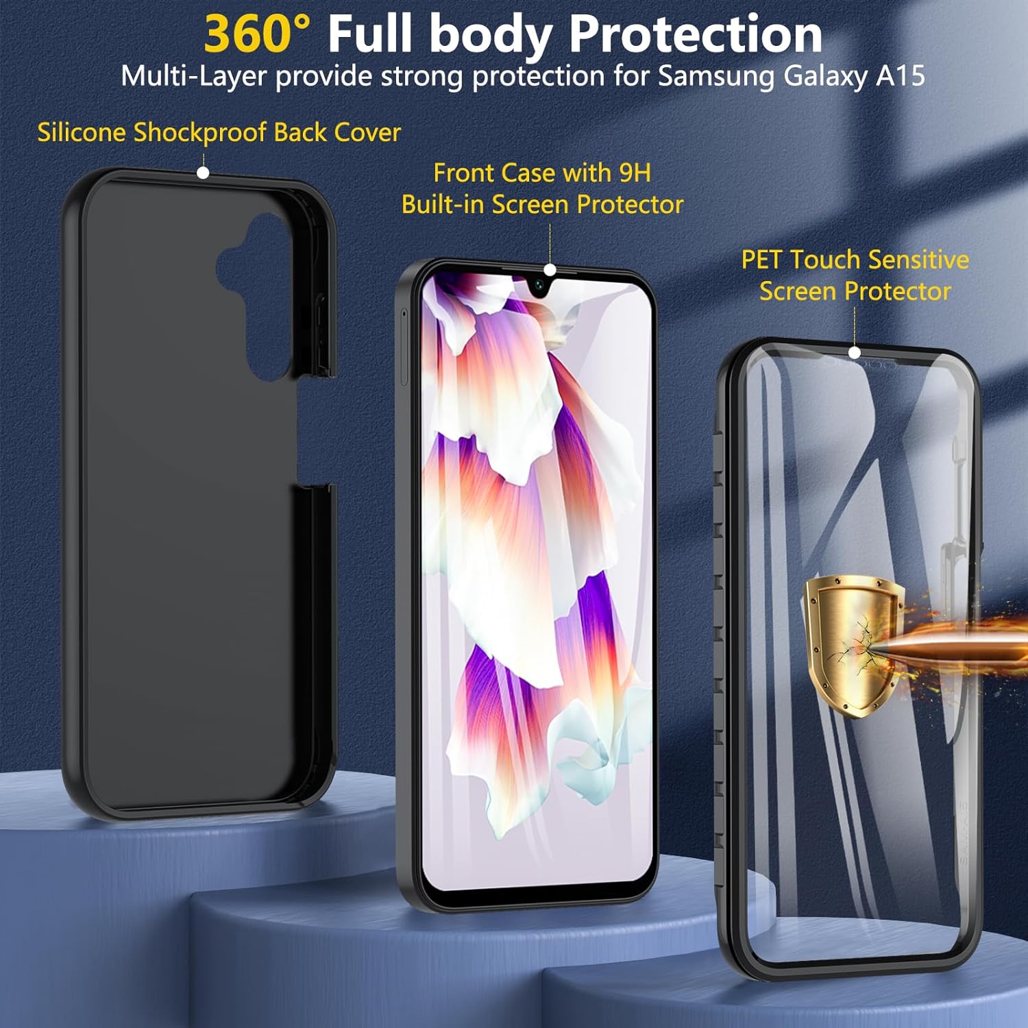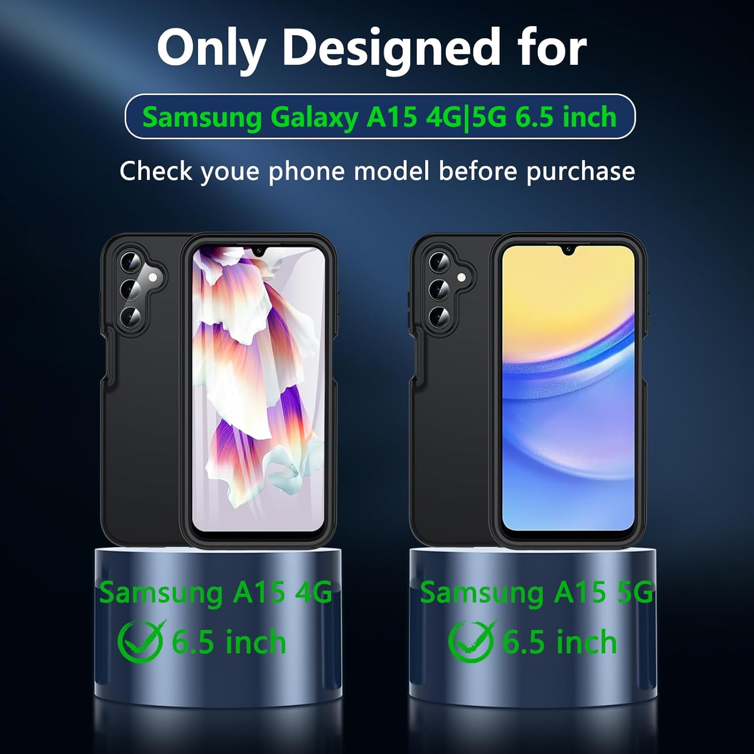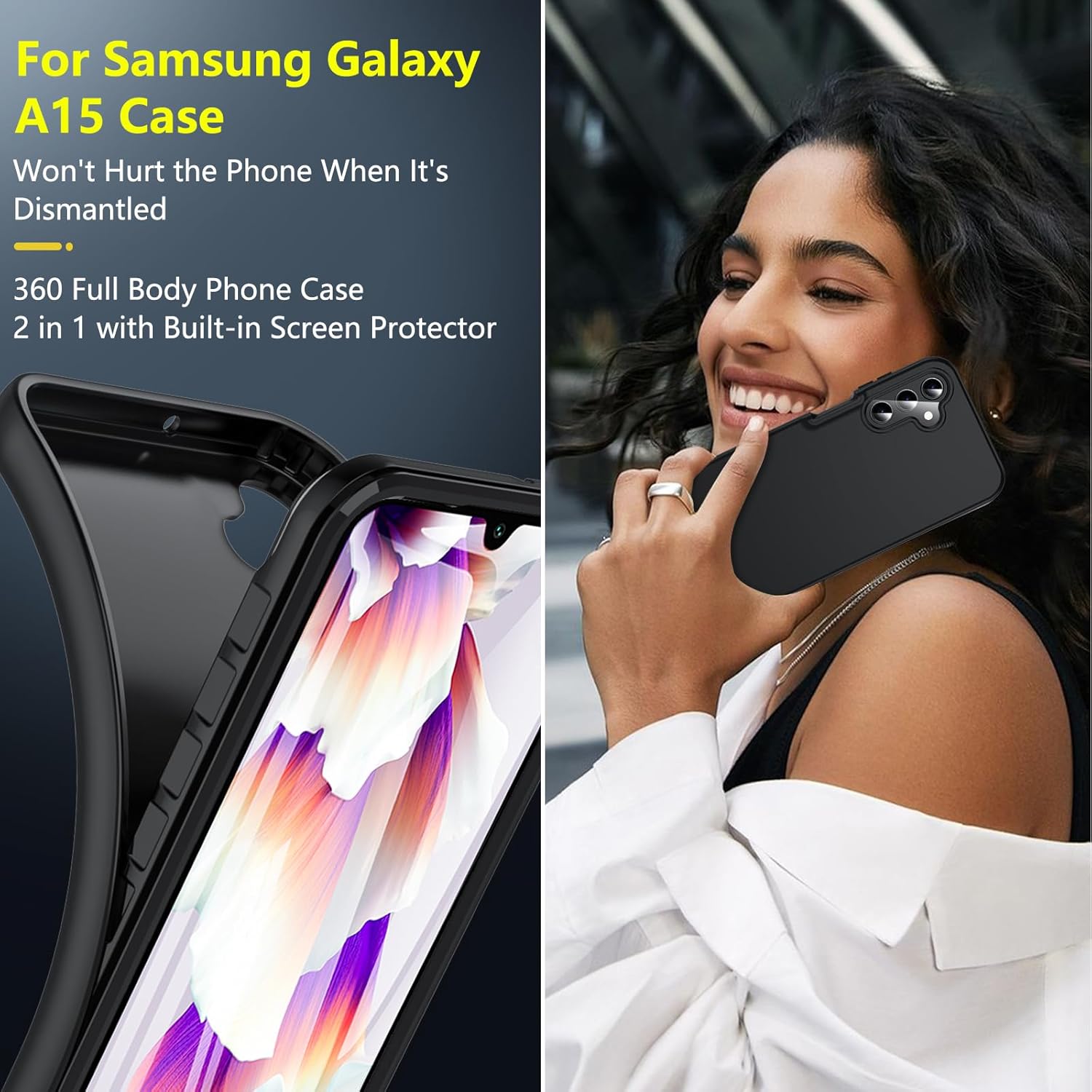 Кейс за Samsung Galaxy A15 5G | 4G, Калъф за мобилен телефон Samsung A15 5G, 360-градусова всестранна защита, Удароустойчив силиконов калъф Roubst bumper, Калъф за външна употреба с вграден протектор за екрана,