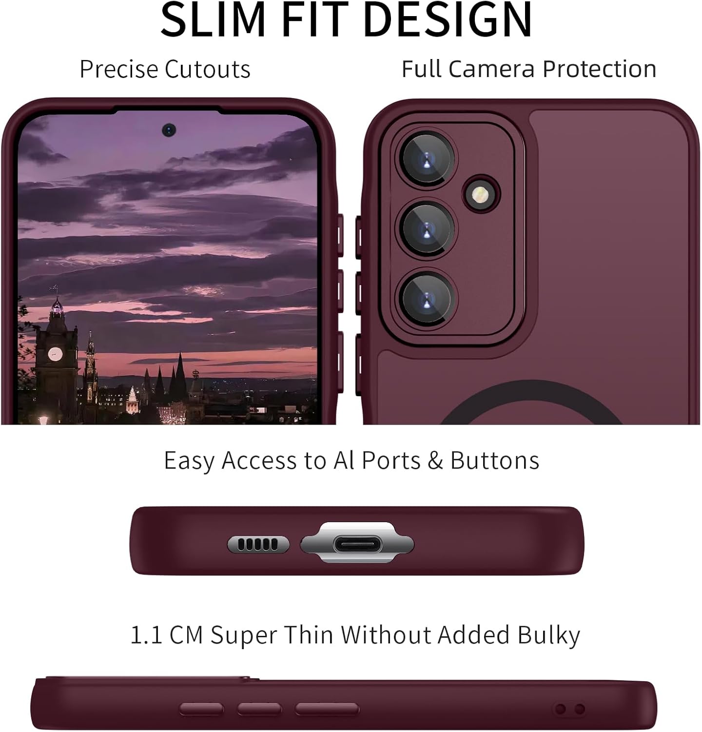 • YUANDMI Тънък магнитен калъф за телефон за Samsung Galaxy S24, не е съвместим с други версии. Поддържа безжично зареждане: