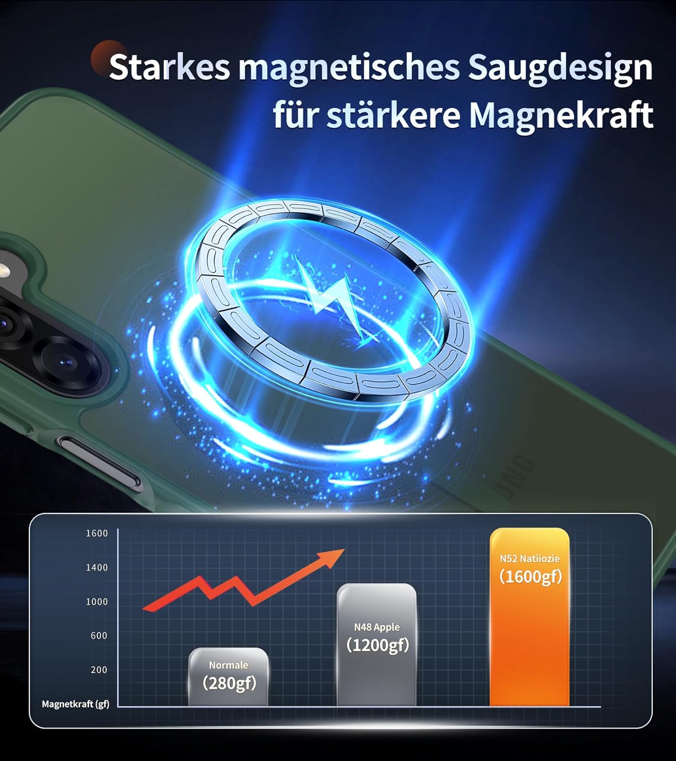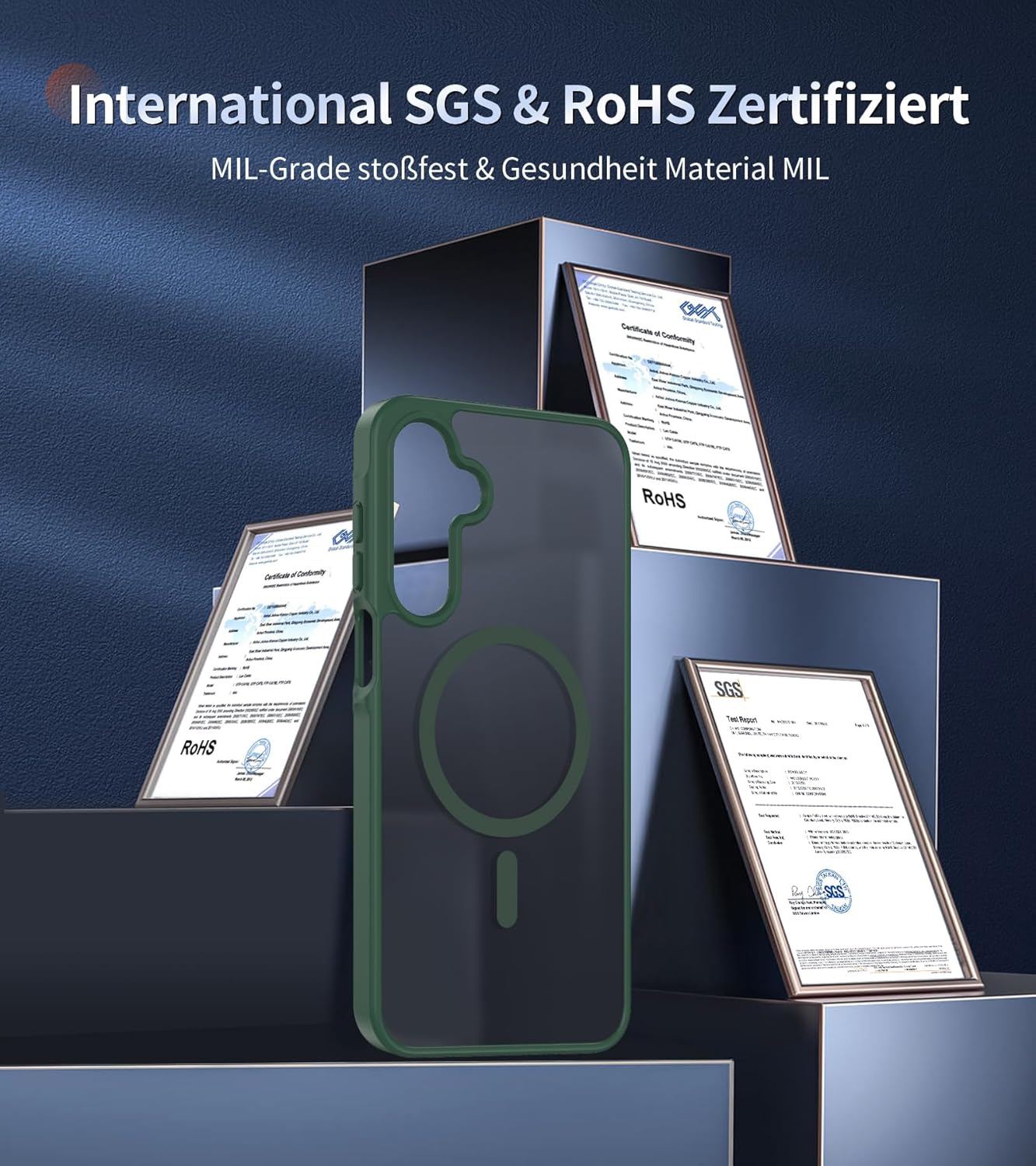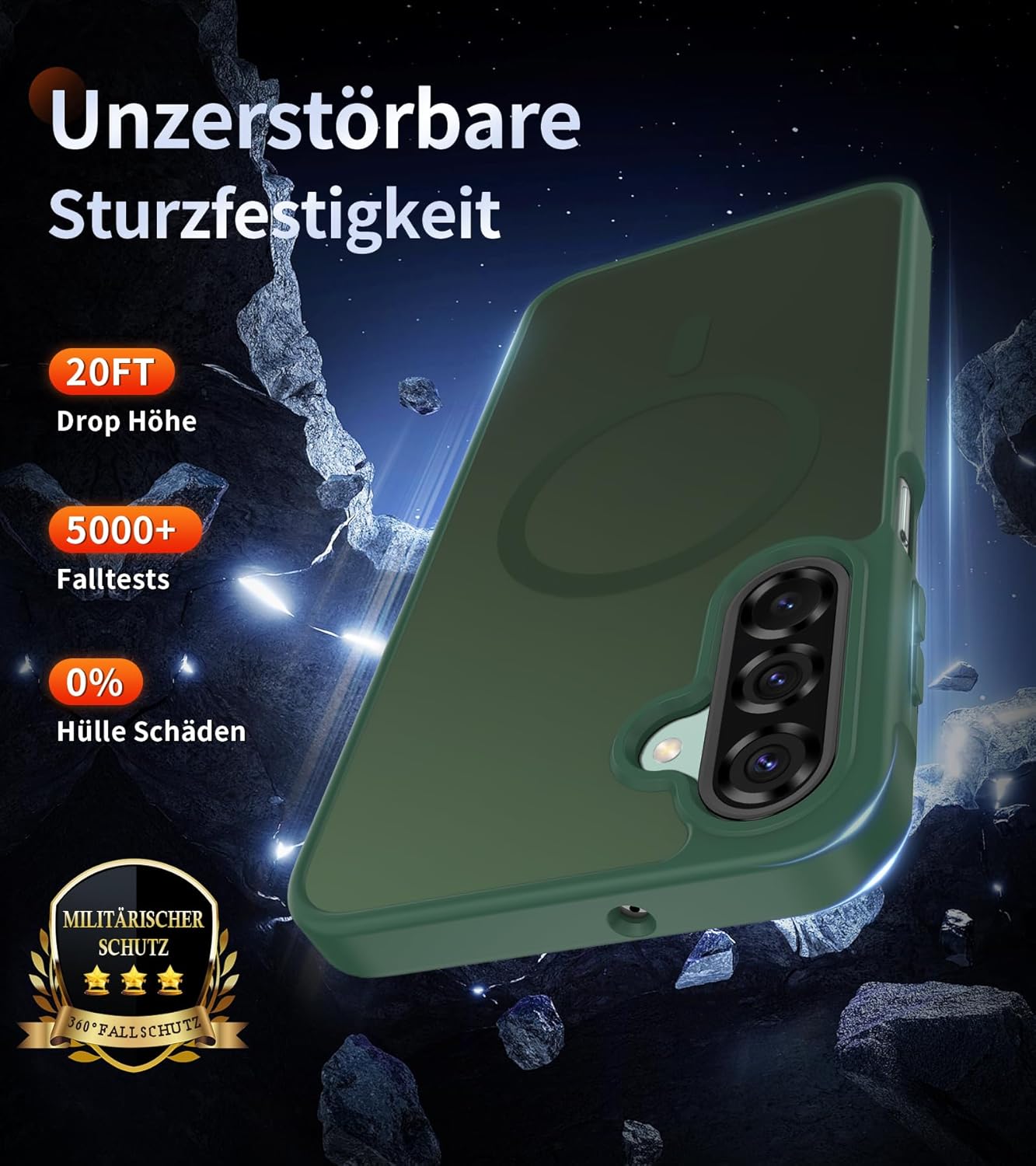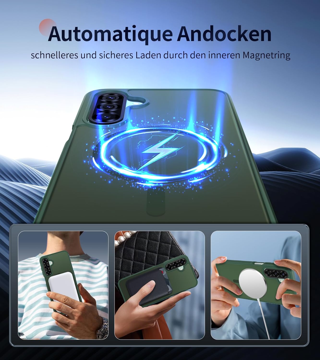 Кейс за Samsung Galaxy A26 5G, съвместим с MagSafe с 2 протектора за екран, военна стандартна защита, калъф за мобилен телефон, удароустойчив, прозрачен матов защитен калъф, тъмнозелен