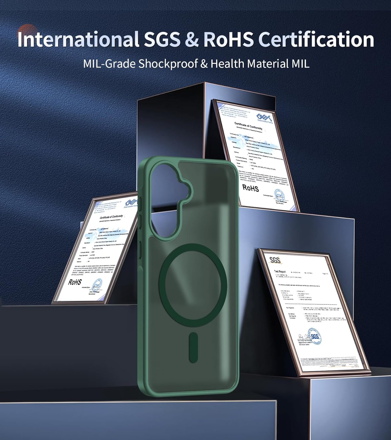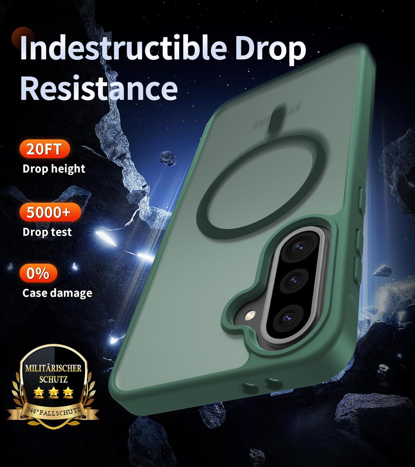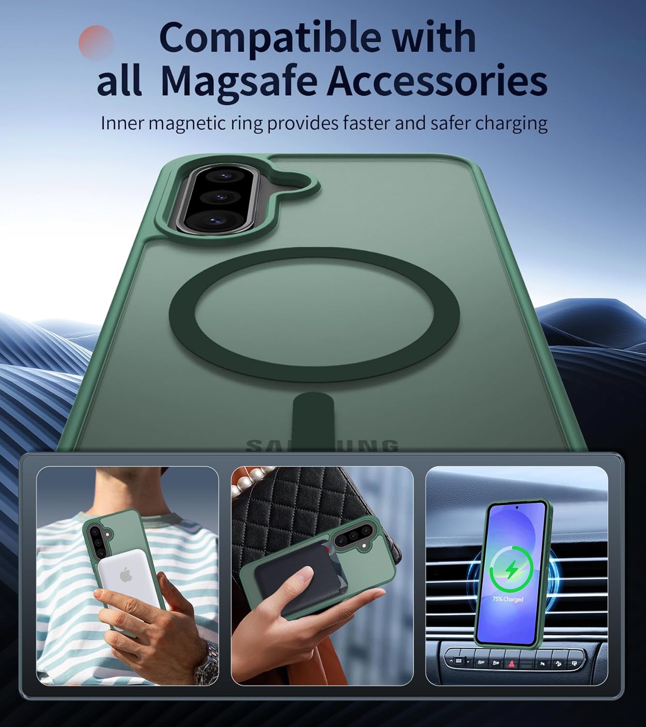 Кейс за Samsung Galaxy A36 5G, съвместим с MagSafe с 2 протектора за екран, военен стандарт за защита, калъф за мобилен телефон, удароустойчив, прозрачен матов защитен калъф, зелен