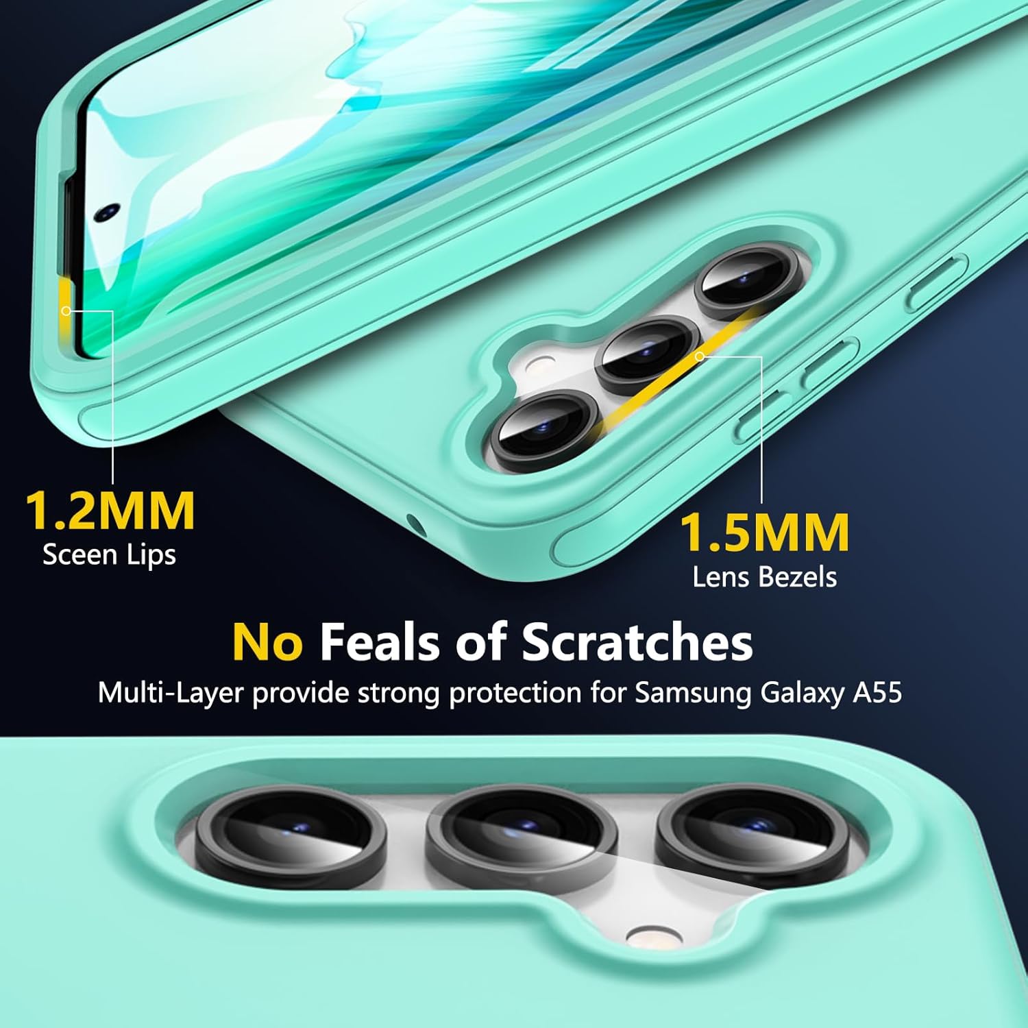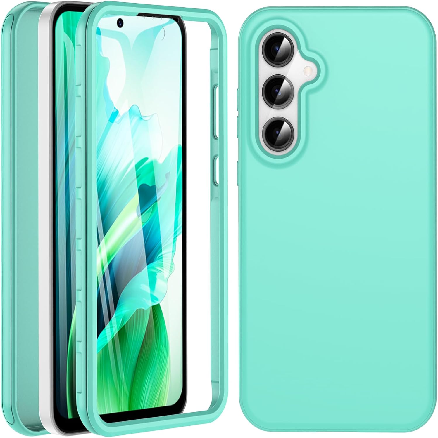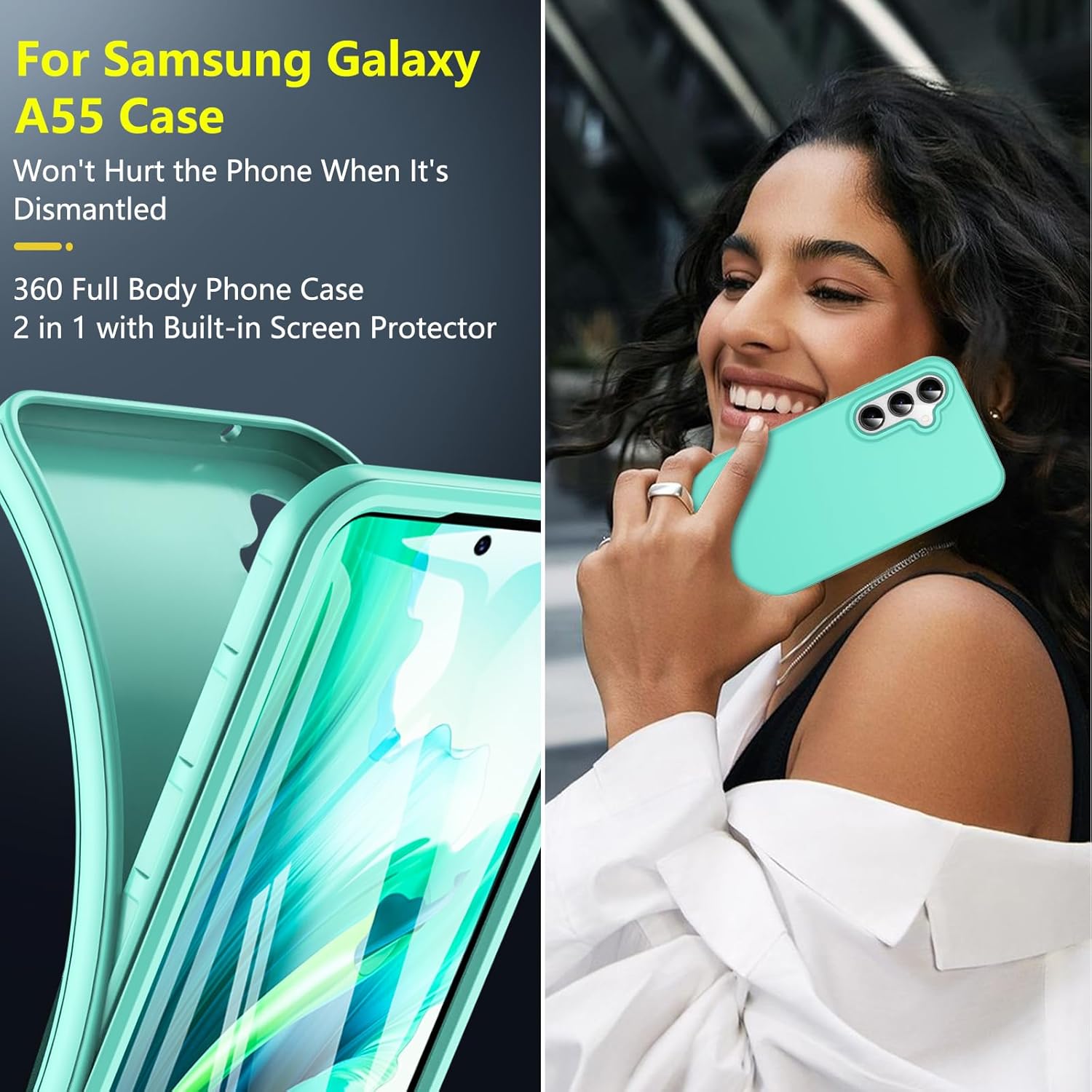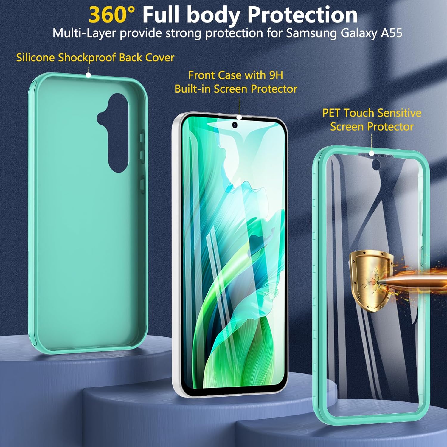 Кейс за Samsung Galaxy A55 5G, Калъф за мобилен телефон Samsung A55 5G, 360-градусова всестранна защита, Удароустойчив силиконов здрав калъф-бъмпер, Външен калъф с вграден протектор за екрана, Защитен